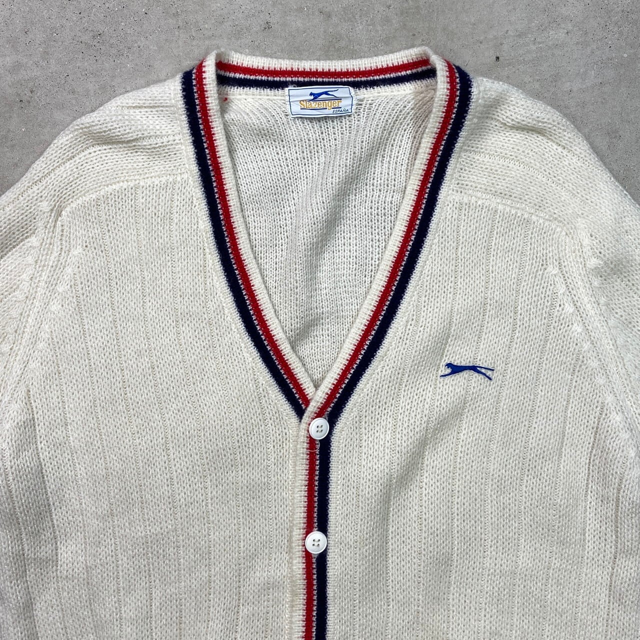 ■古着 Slazenger ユーロ ニットカーディガン メンズL相当 80年代 80s VINTAGE ヴィンテージ USED 白【ニットセーター】/ホワイト 【ブランド】Slazenger 【サイズ】表記 不明(着用感メンズL相当) ※計測値をご確認ください。 着丈…73 身幅…61 裄丈…85 袖丈(脇下計測)…44 【生産国】不明 【素材】不明 【状態】 多少の使用感はございますが、 目立った汚れやダメージ等は無くまだまだ長くご愛用していただけます。 画像にてご確認ください。 【c251208002】 ※古着は洗濯、検品などのケアを行っております。(新品・デッドストックは洗濯していません。) ※モニターの発色により実物と異なる場合がございます。予めご了承ください。 ※ 海外直輸入USED品になります。