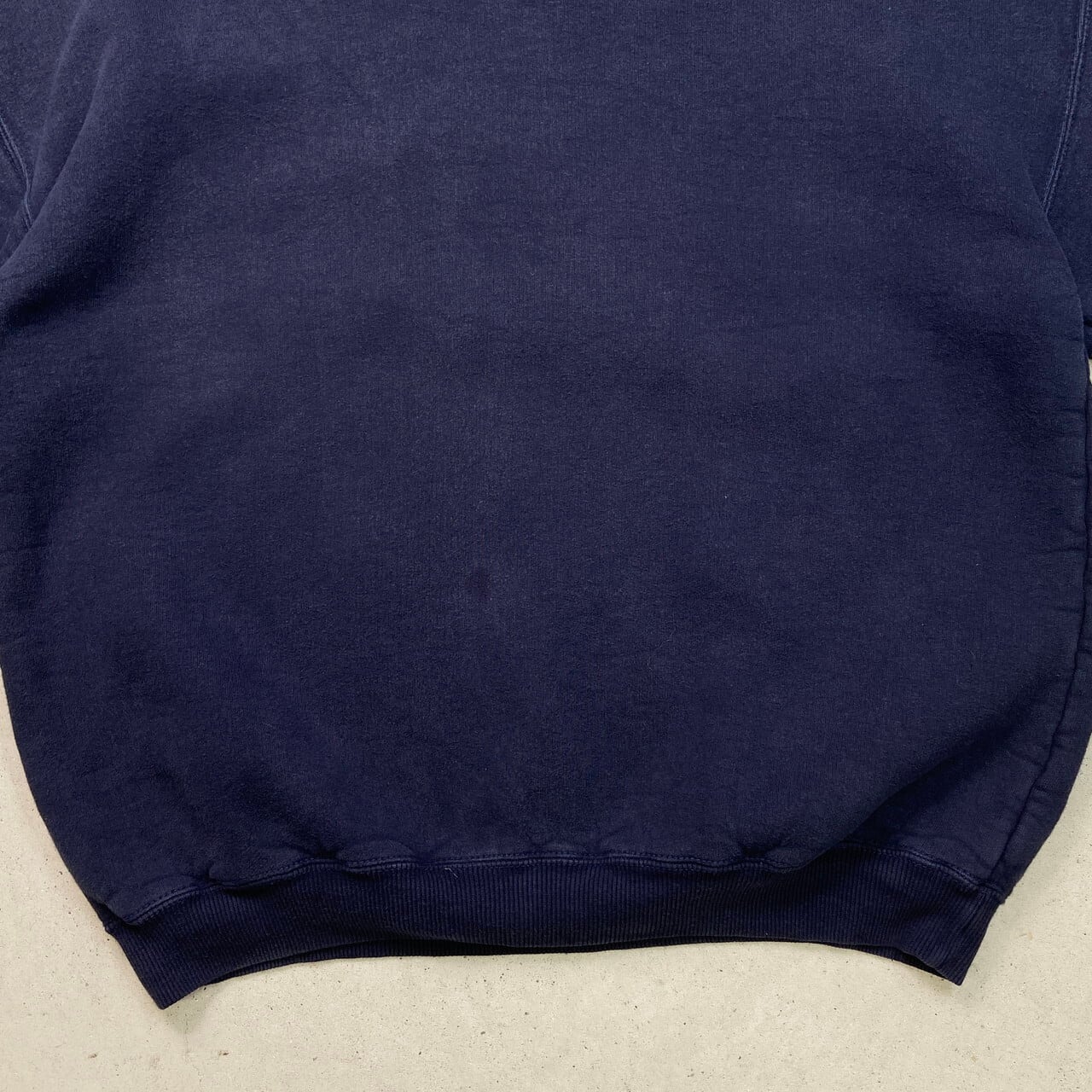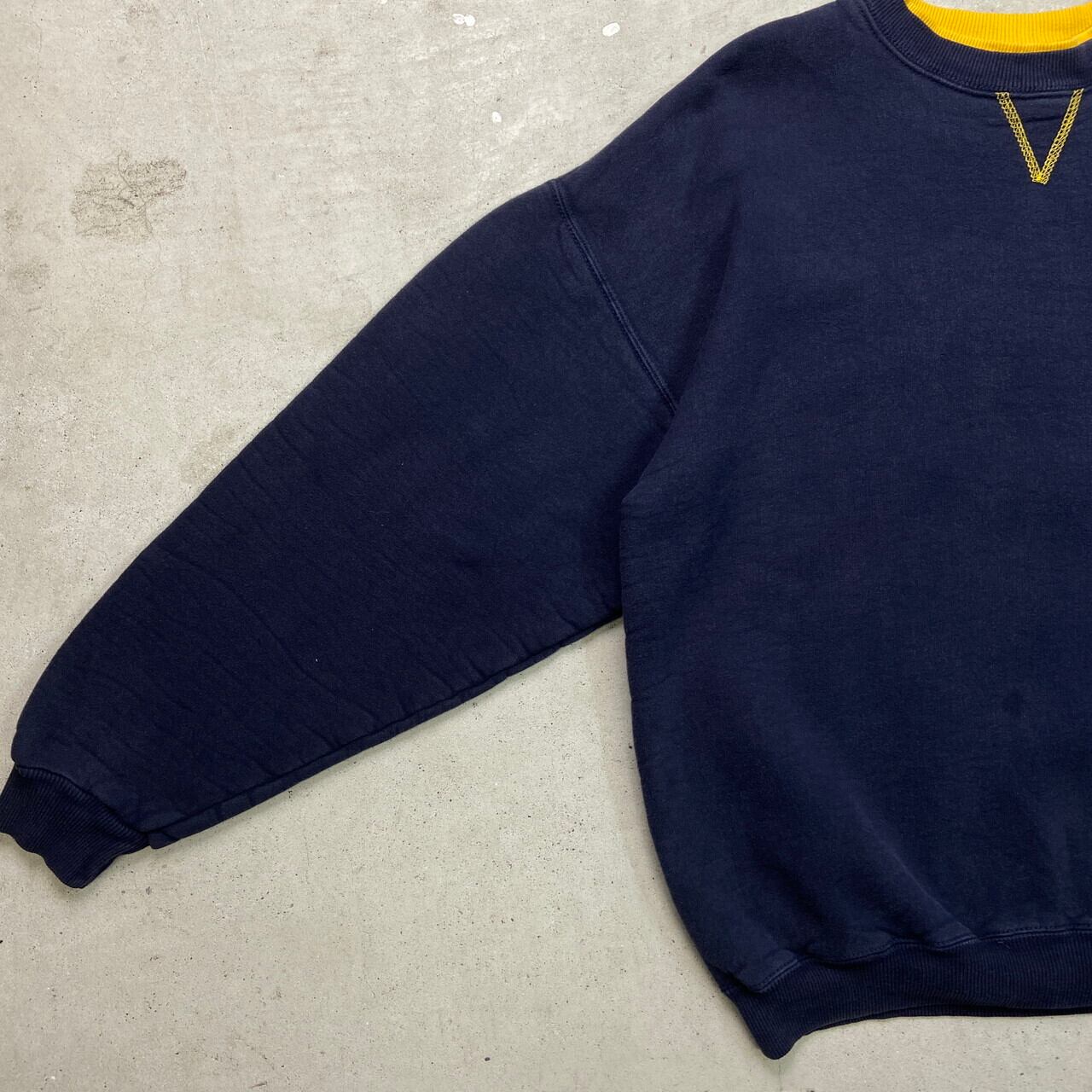 ■古着 ブランクスウェットシャツ 無地 メンズXL相当 USED ヴィンテージ VINTAGE トレーナー 前Vガゼット ダークネイビー イエロー 紺色 黄色【スウェット】/ネイビー 【サイズ】表記 不明(着用感メンズXL相当) ※計測値をご確認ください。 着丈...66 身幅…64 肩幅…66 袖丈…56 【生産国】不明 【素材】不明 おそらくコットンかと思われます。 【状態】 フロントに薄汚れ、両袖にシボのようなアタリが出ており、 雰囲気の良いコンディションです。 画像にてご確認ください。 【c251208001】 ※古着は洗濯、検品などのケアを行っております。(新品・デッドストックは洗濯していません。) ※モニターの発色により実物と異なる場合がございます。予めご了承ください。 ※ 海外直輸入USED品になります。
