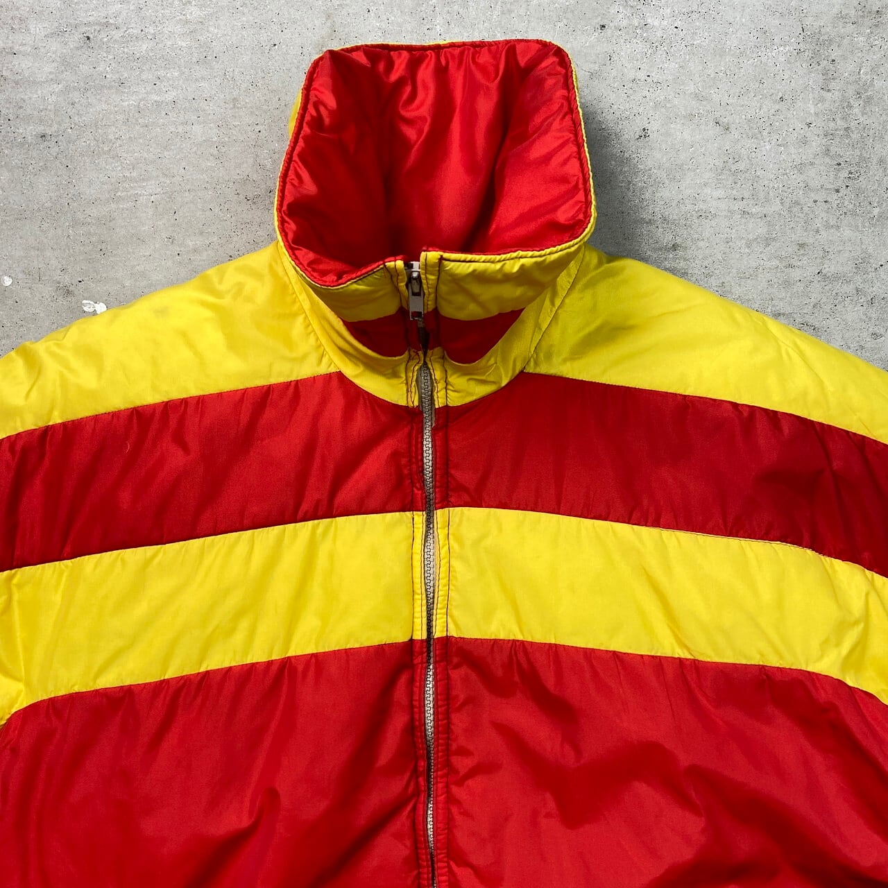 ■古着 GERRY ジェリー ダウンジャケット メンズM 80年代 80s USA製 VINTAGE ヴィンテージ USED オールドアウトドア ツートーンカラー レッド イエロー 赤 黄色【ブルゾン・ジャケット】/マルチカラー 【ブランド】 GERRY ジェリー 【サイズ】 表記 MEDIUM モデル身長172cm ※計測値をご確認ください。 着丈…66 身幅…57 裄丈…85 袖丈(脇下計測)…55 【生産国】USA製 【素材】ナイロン100% 中綿 ダウン 【状態】 右後ろ袖に薄汚れなど多少の使用感はございますが、 その他目立った汚れやダメージ等は無くまだまだ長くご愛用していただけます。 画像にてご確認ください。 【c251207013】 ※古着は洗濯、検品などのケアを行っております。(新品・デッドストックは洗濯していません。) ※モニターの発色により実物と異なる場合がございます。予めご了承ください。 ※ 海外直輸入USED品になります。