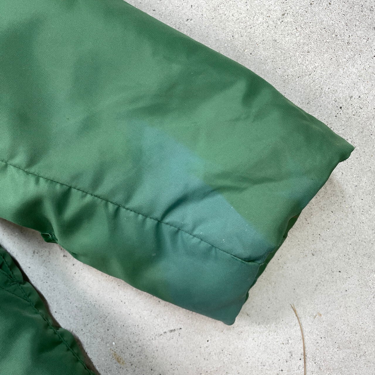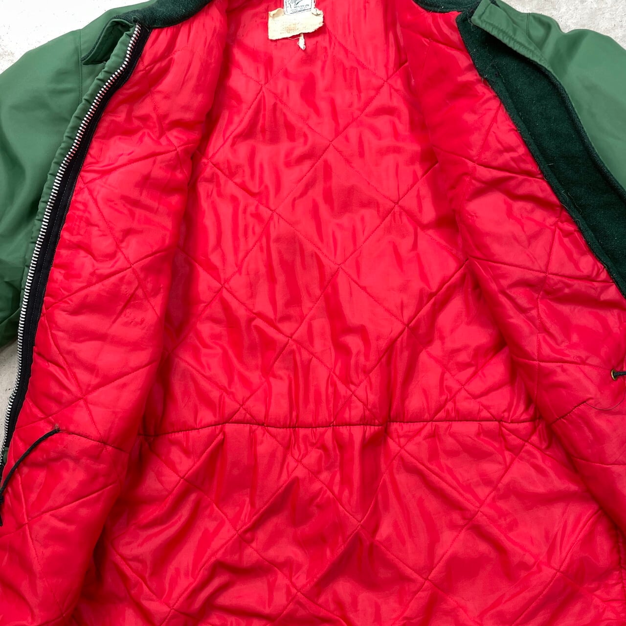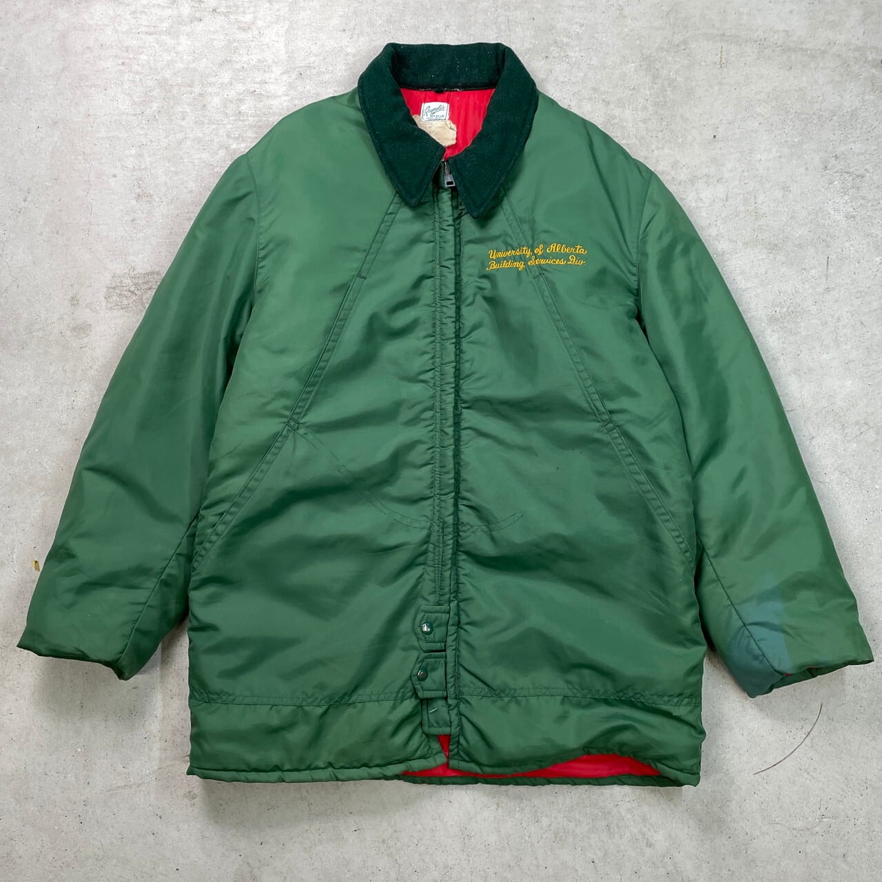 ■古着 Reynola’s カレッジ刺繍 ナイロンジャケット メンズXL相当 70年代 70s VINTAGE ヴィンテージ 古着 カデッドコート University of Alberta アルバータ大学 ウール襟 中綿入り キルティングライナー ACMEジッパー 緑【ナイロンジャケット】/グリーン 【ブランド】Reynola’s 【サイズ】不明(着用感メンズXL相当) ※計測値をご確認ください。 着丈…89 身幅…65 肩幅…52 袖丈…66 【生産国】不明 【素材】不明 おそらくコットンとポリエステルの混紡かと思われます。 【状態】フード欠品、左袖口に変色、バックにひっかき傷などがございます。 画像にてご確認ください。 【c251207009】 ※古着は洗濯、検品などのケアを行っております。(新品・デッドストックは洗濯していません。) ※モニターの発色により実物と異なる場合がございます。予めご了承ください。 ※ 海外直輸入USED品になります。