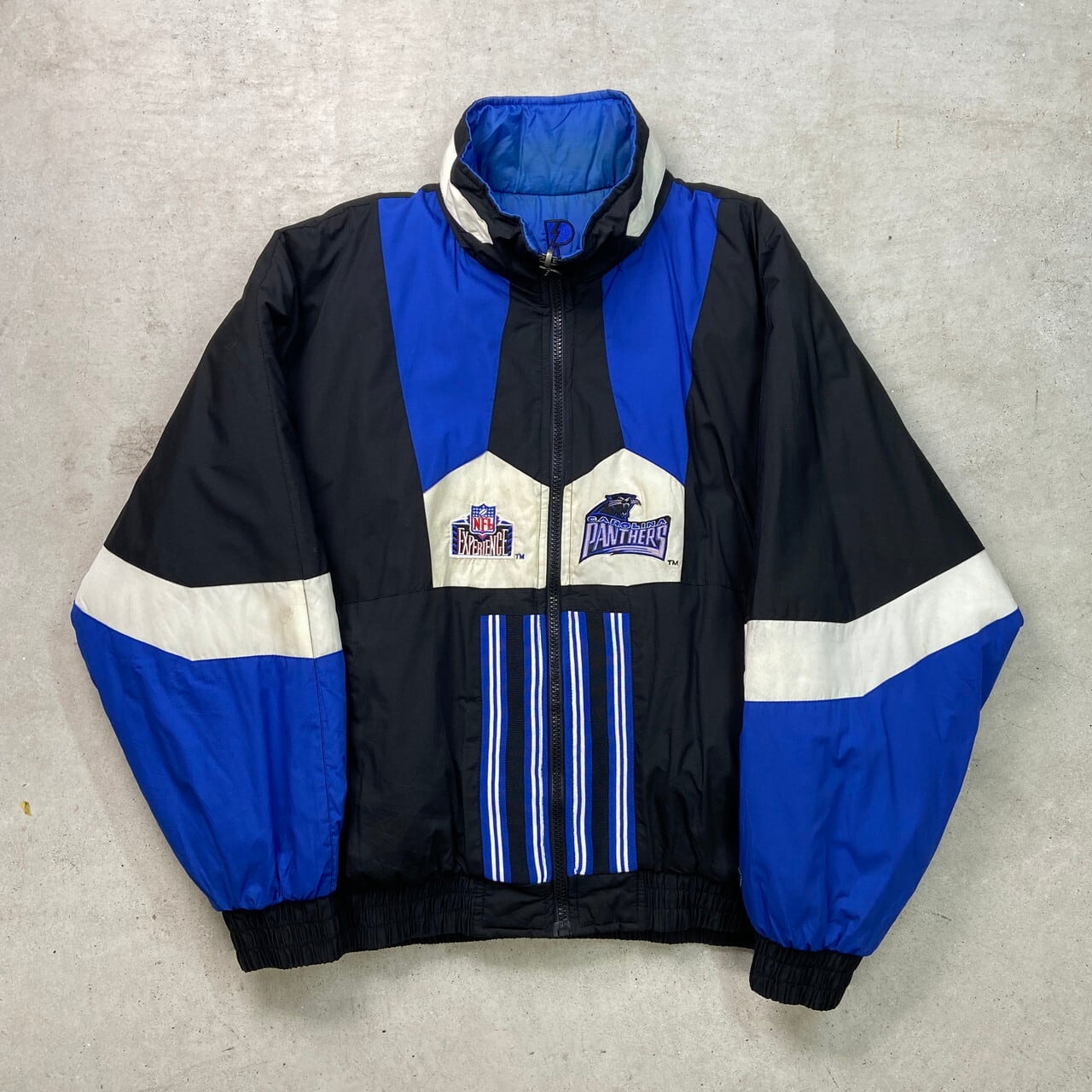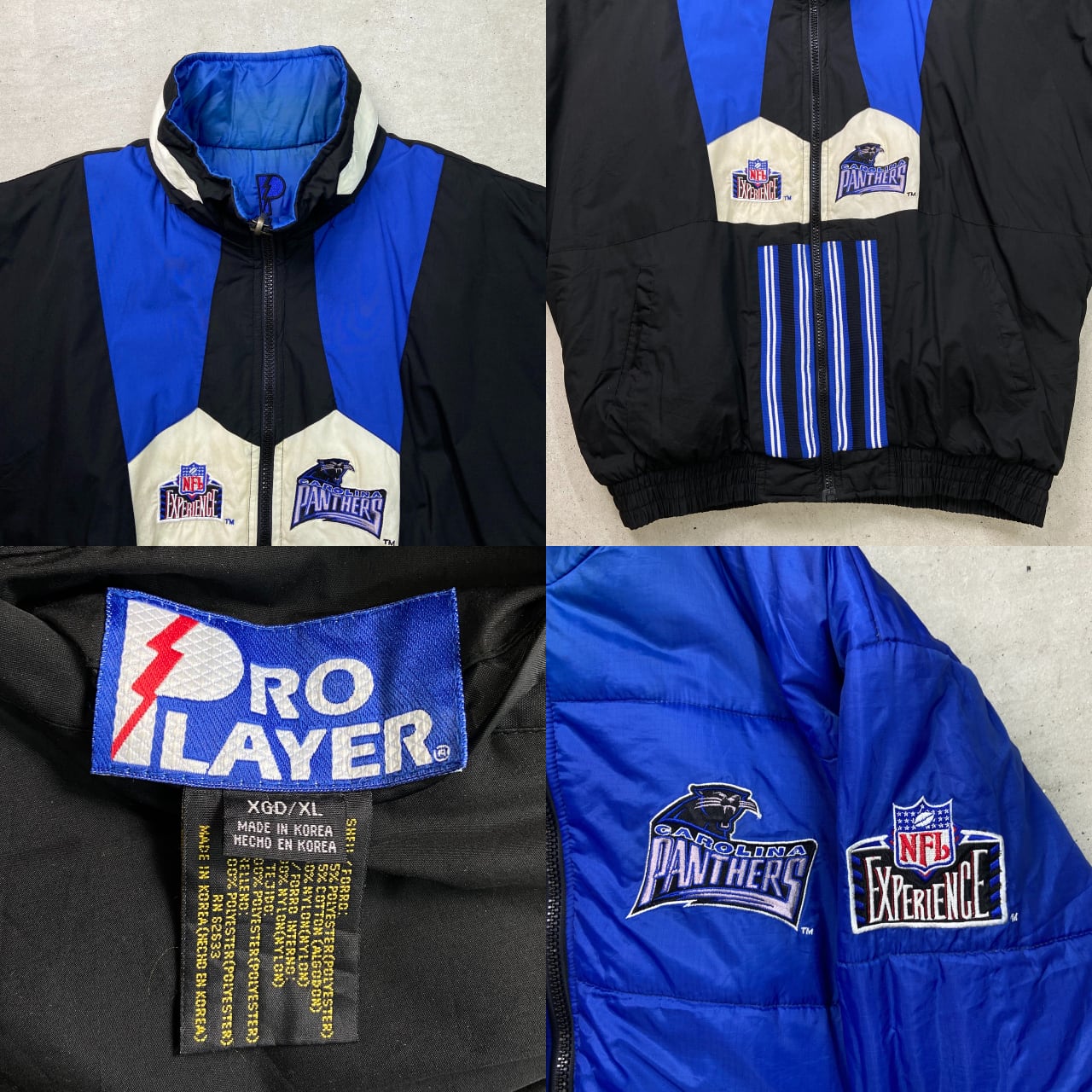 ■古着 PRO PLAYER NFL CAROLINA PANTHERS リバーシブル ナイロンジャケット メンズXL 90年代 90s VINTAGE ヴィンテージ USED カロライナ パンサーズ 中綿入り【ナイロンジャケット】/マルチカラー 【ブランド】PRO PLAYER 【サイズ】表記 XL モデル身長172cm ※計測値をご確認ください。 着丈…74 身幅…75 裄丈…95 袖丈(脇下計測)…52 【生産国】韓国製 【素材】ポリエステル65% コットン35% 裏地 ナイロン100% 中綿 ポリエステル100% 【状態】フード欠損、袖や襟などに汚れがございます。 画像にてご確認ください。 【c251206006】 ※古着は洗濯、検品などのケアを行っております。(新品・デッドストックは洗濯していません。) ※モニターの発色により実物と異なる場合がございます。予めご了承ください。 ※ 海外直輸入USED品になります。