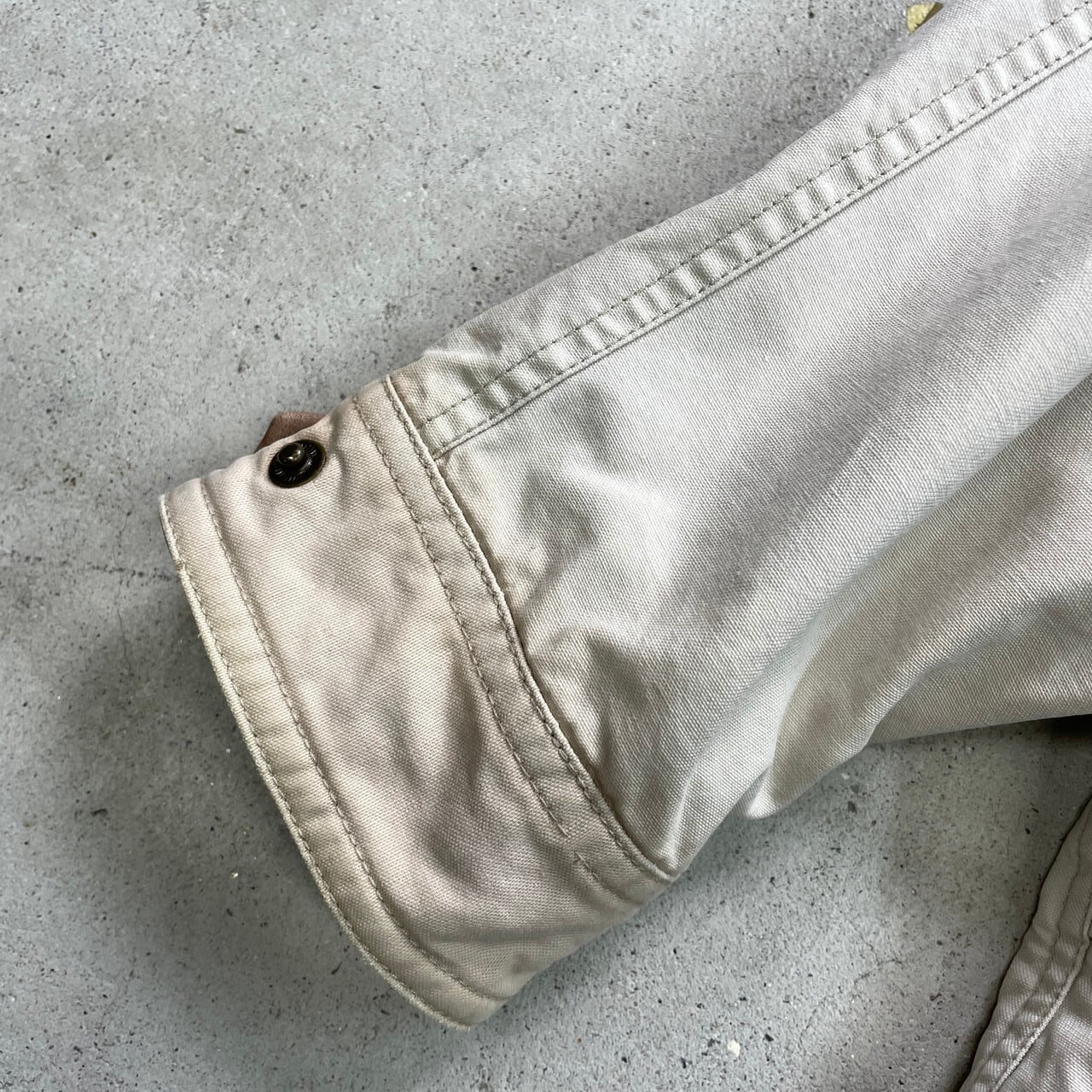 ■90年代 BANANA REPUBLIC バナナリパブリック TRAVEL サファリジャケット メンズM相当 古着 90s VINTAGE ヴィンテージ バナリパ マウンテンジャケット マンパ 白【アウトドアジャケット】/ホワイト 【ブランド】BANANA REPUBLIC バナナ リパブリック 【サイズ】表記 S(着用感メンズM相当) モデル身長172cm ※計測値をご確認ください。 着丈...78 身幅...61 裄丈…81 袖丈(脇下計測)...48 【生産国】香港製 【素材】コットン100% 裏地 コットン100% 【状態】前立て裏側・バック・右袖に汚れ、フロント裾に生地擦れ、第1スナップ7の欠損などがございます。 画像にてご確認ください。 【c251204017】 ※古着は洗濯、検品などのケアを行っております。(新品・デッドストックは洗濯していません。) ※モニターの発色により実物と異なる場合がございます。予めご了承ください。 ※ 海外直輸入USED品になります。