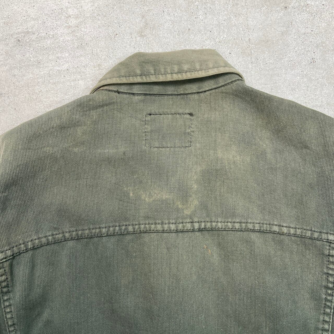 ■90年代 Lee RIDERS リー ライダース PATD-153436 コットンピケジャケット メンズXL 古着 雰囲気系 90s ヴィンテージ VINTAGE トラッカージャケット フェードグリーン オリーブグリーン 緑【コットンジャケット】/カーキグリーン 【ブランド】Lee RIDERS リー ライダース 【サイズ】表記 XL モデル身長172cm 計測値をご確認ください。 着丈…68 身幅…63 肩幅…52 袖丈…65 【生産国】不明 【素材】不明 おそらくコットンかと思われます。 【状態】 全体的にフェードや汚れなど雰囲気の良いコンディションです。 画像にてご確認ください。 【c251204012】 ※古着は洗濯、検品などのケアを行っております。(新品・デッドストックは洗濯していません。) ※モニターの発色により実物と異なる場合がございます。予めご了承ください。 ※ 海外直輸入USED品になります。