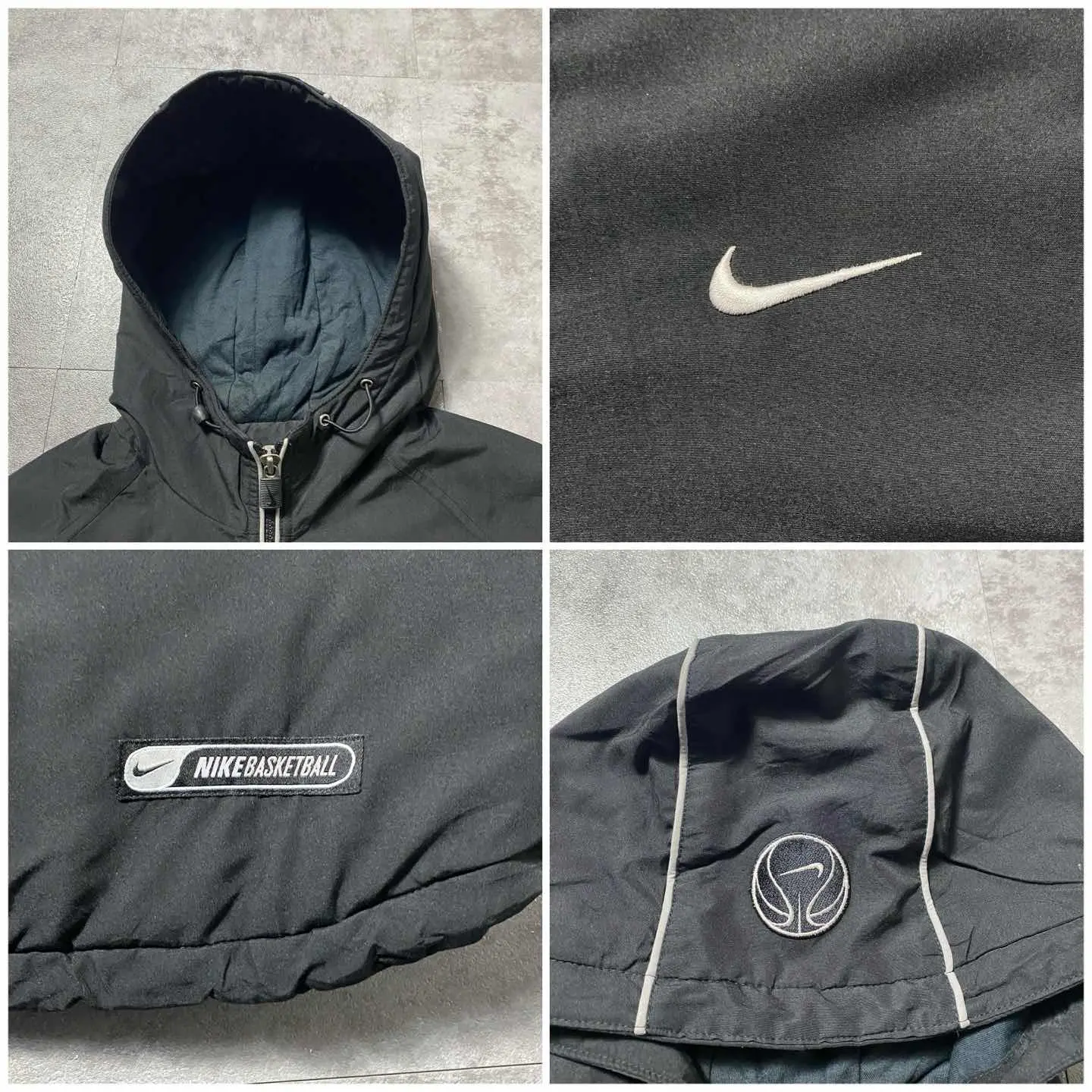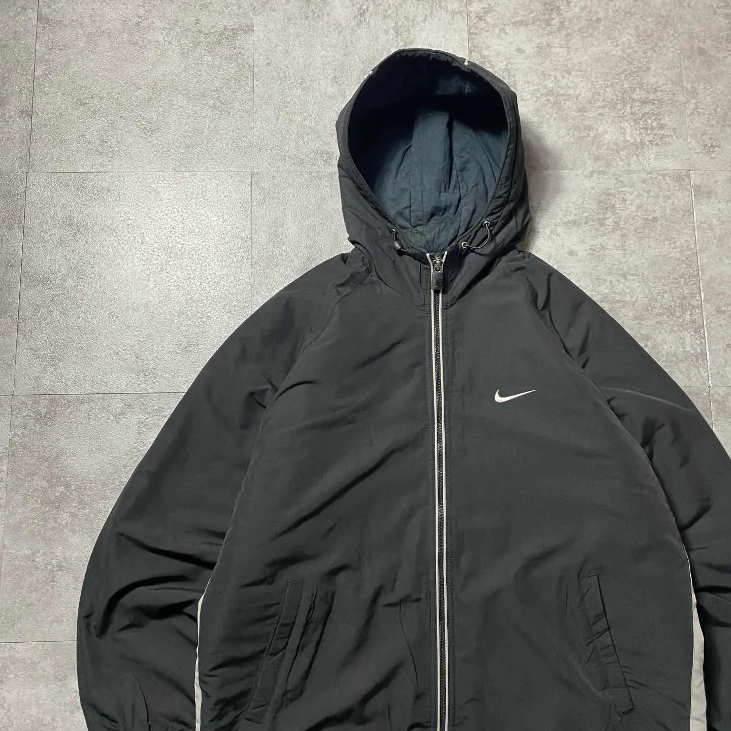 00's NIKE スウォッシュ 刺繍ロゴ フード刺繍 中綿 ナイロンジャケット