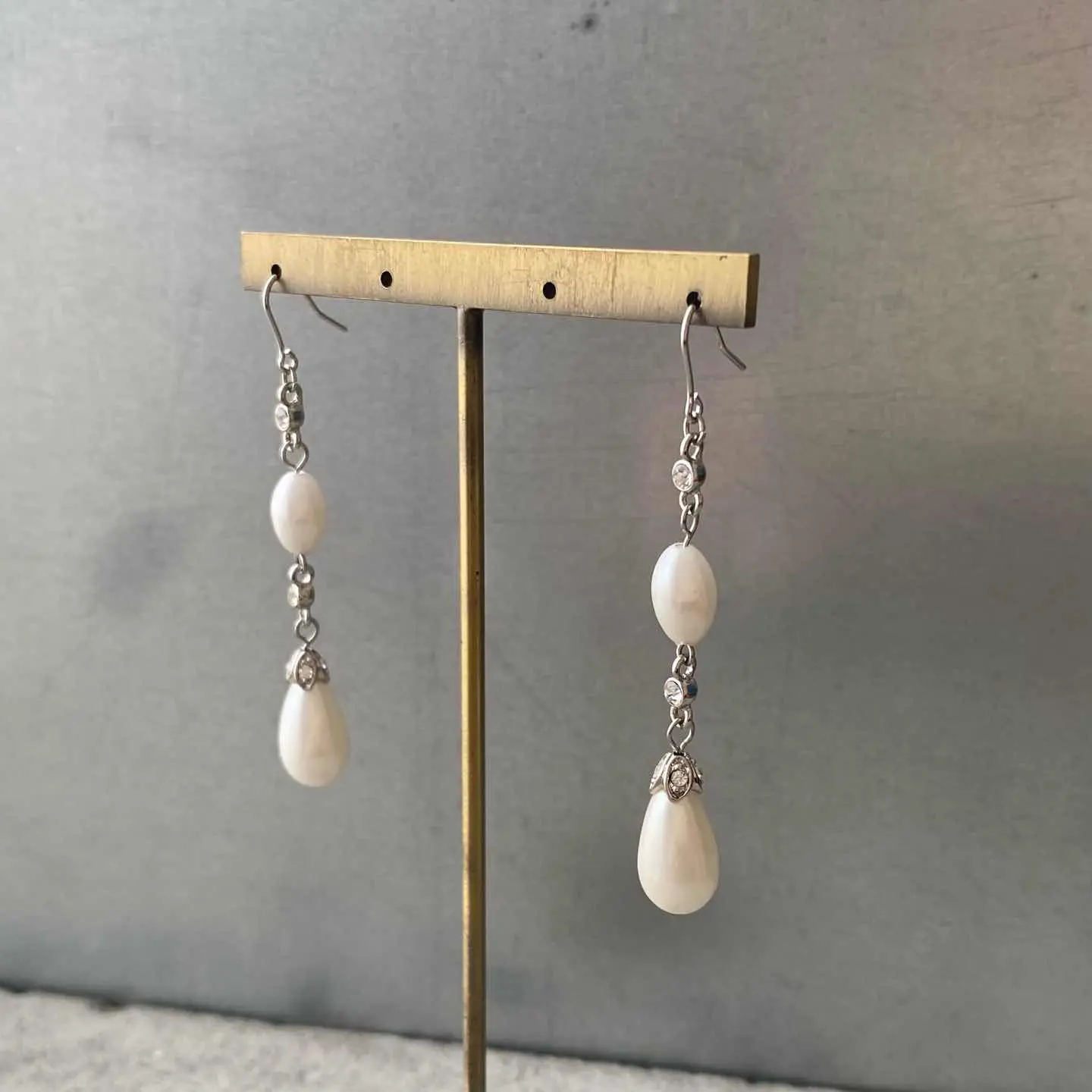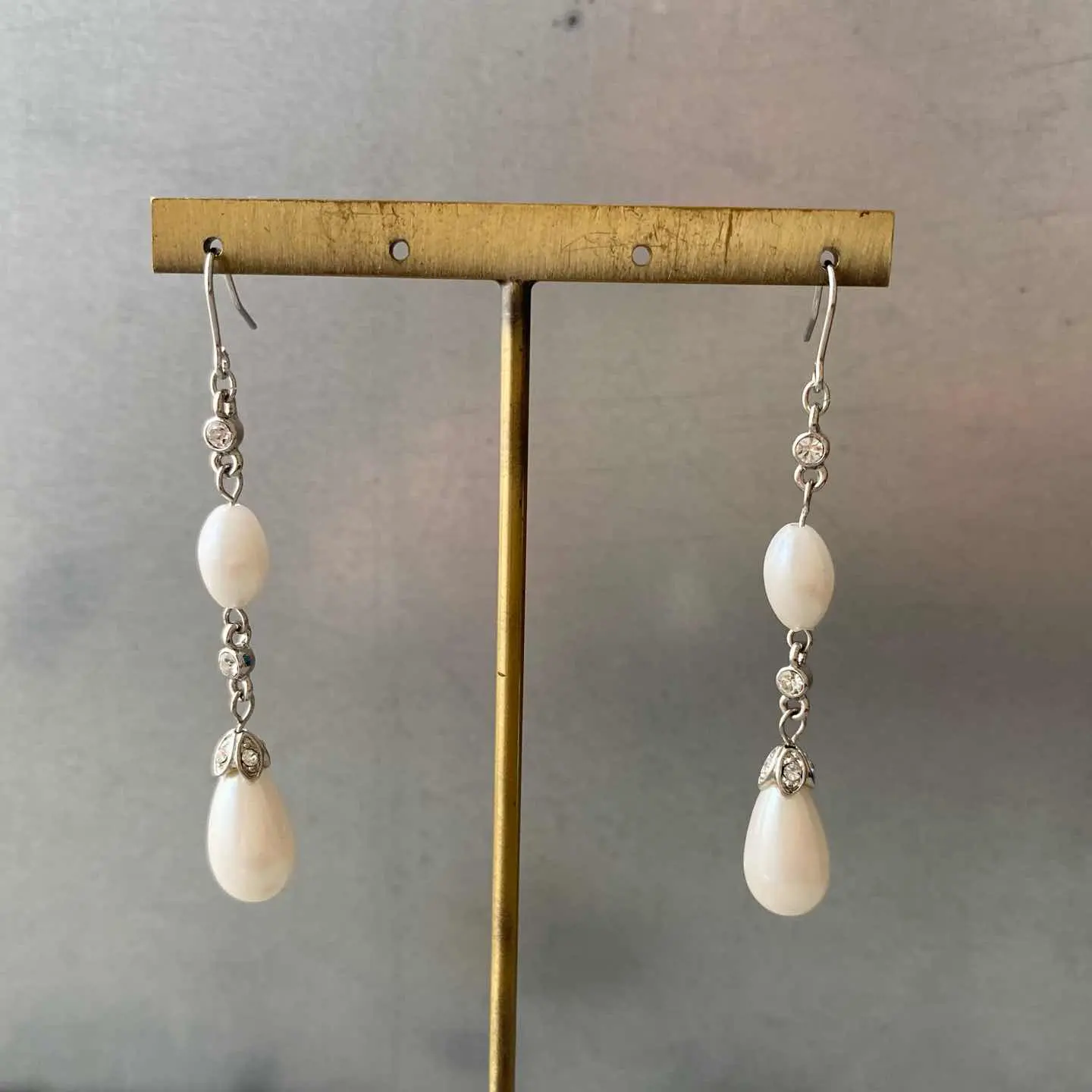 クラシカルなドロップパールのUSAユーズドピアス。繊細なビジューが揺れるたびにキラキラと輝く上品なデザインです。 □Materials メタル(シルバーメッキ)、ガラスストーン、イミテーションパール (※ピアスフックは新品のものに交換済です) □Size 約H5.8㎝×W7㎜ 3g □Condition【A】 使用感の少ない良好な状態です。中古品であることをご理解のうえお買い求めください。ご購入前に必ずショッピングガイドのご確認をお願いいたします。 【S】未使用 【A】未使用に近い 【B】やや使用感あり 【C】使用感あり Item No.3567