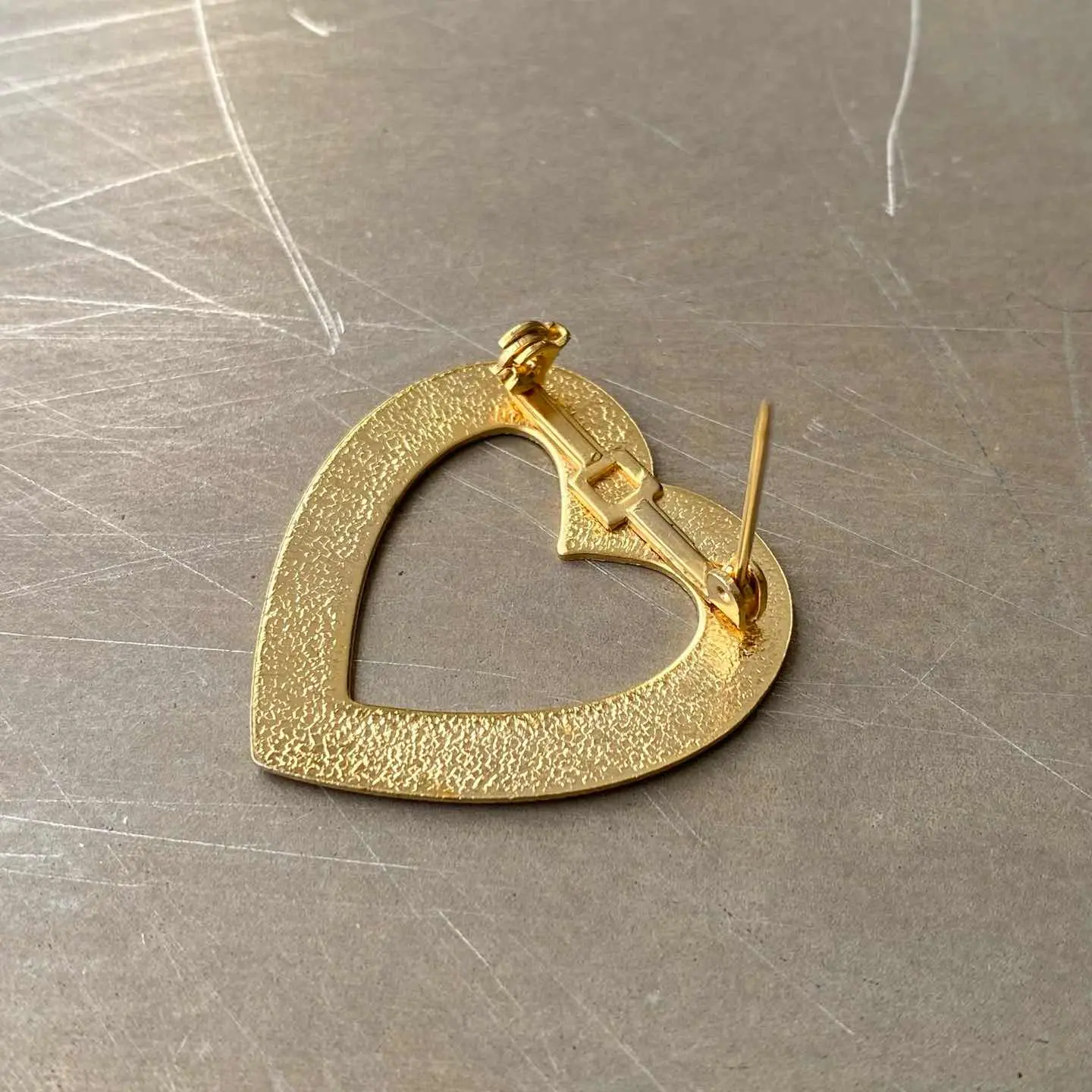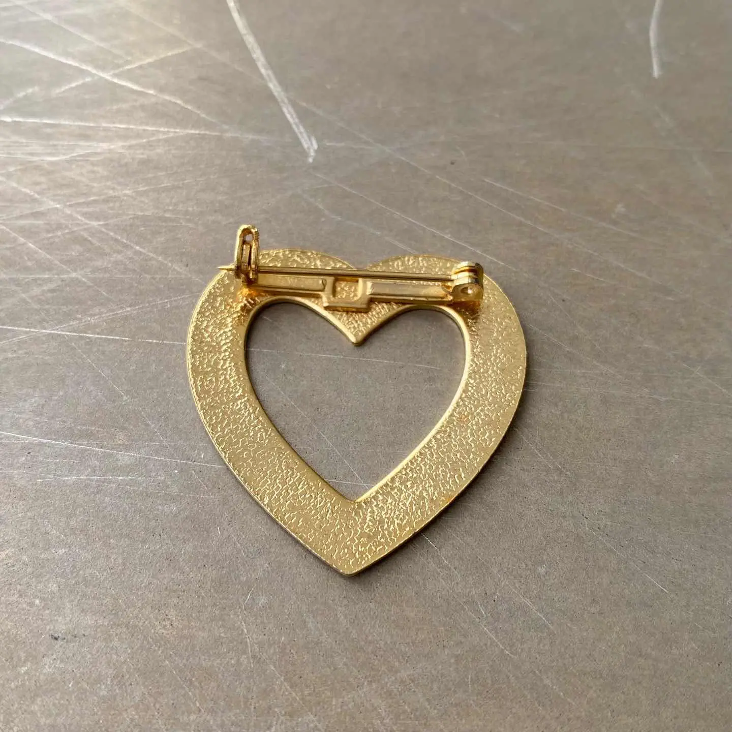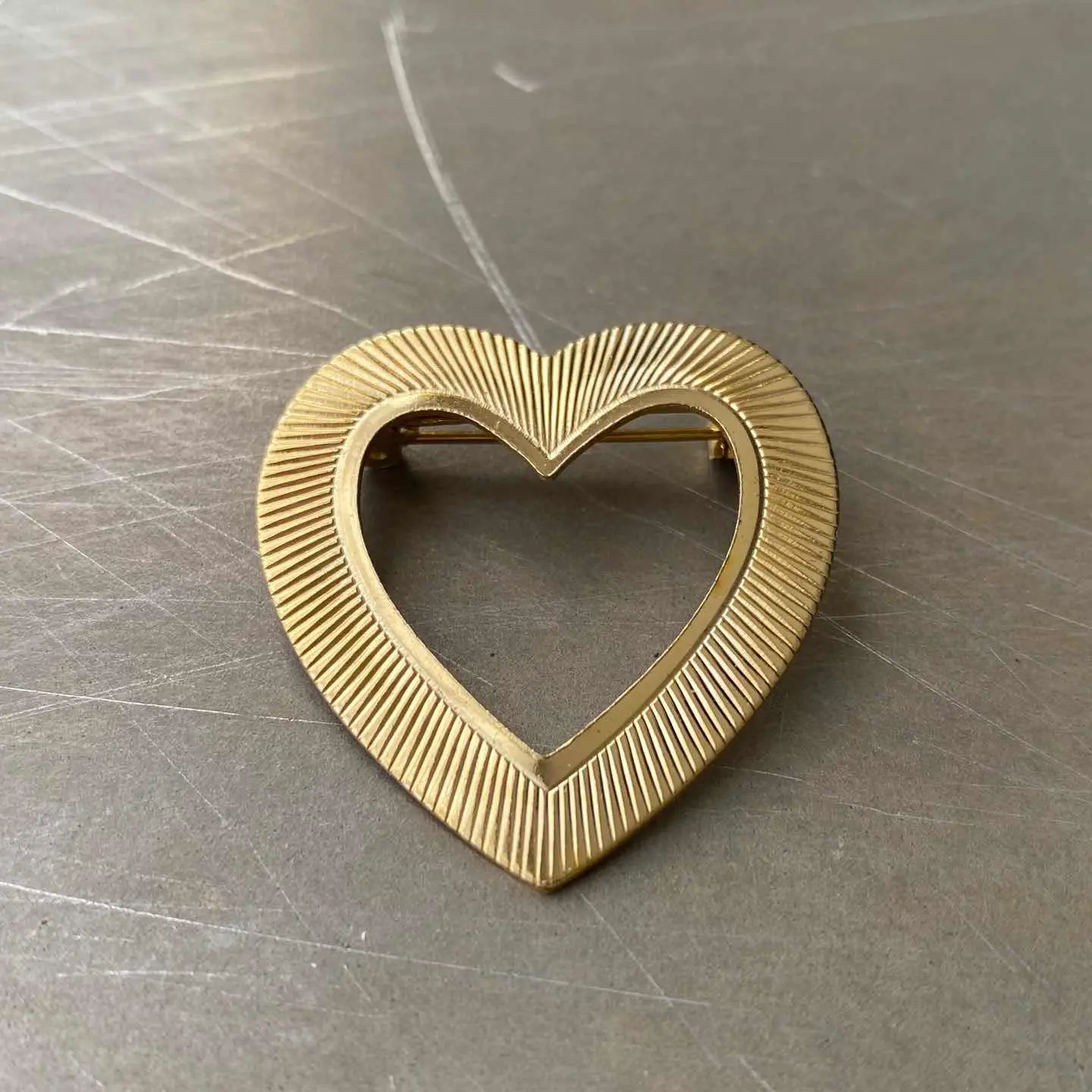 Vintage 50s-60s USA retro open heart gold tone brooch
