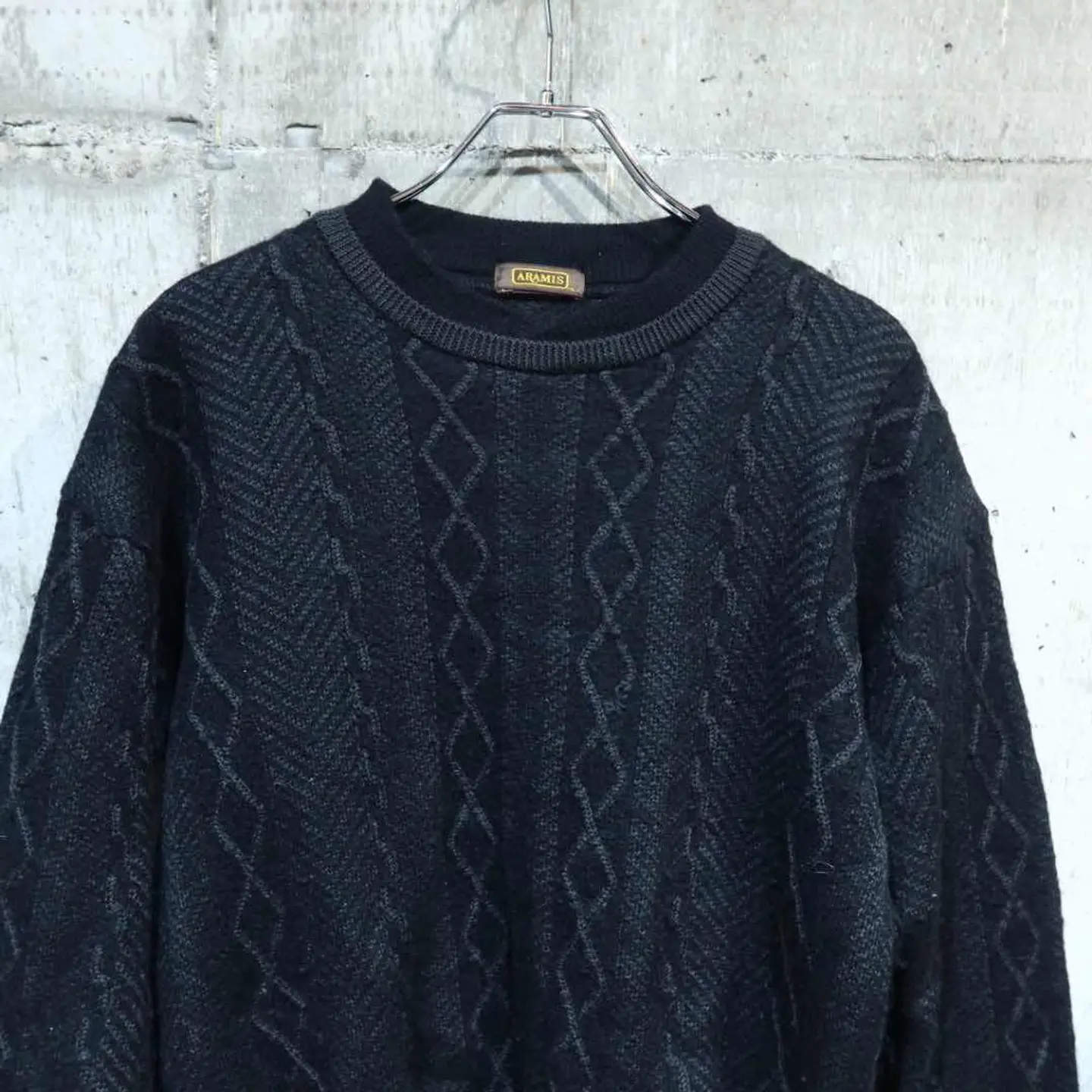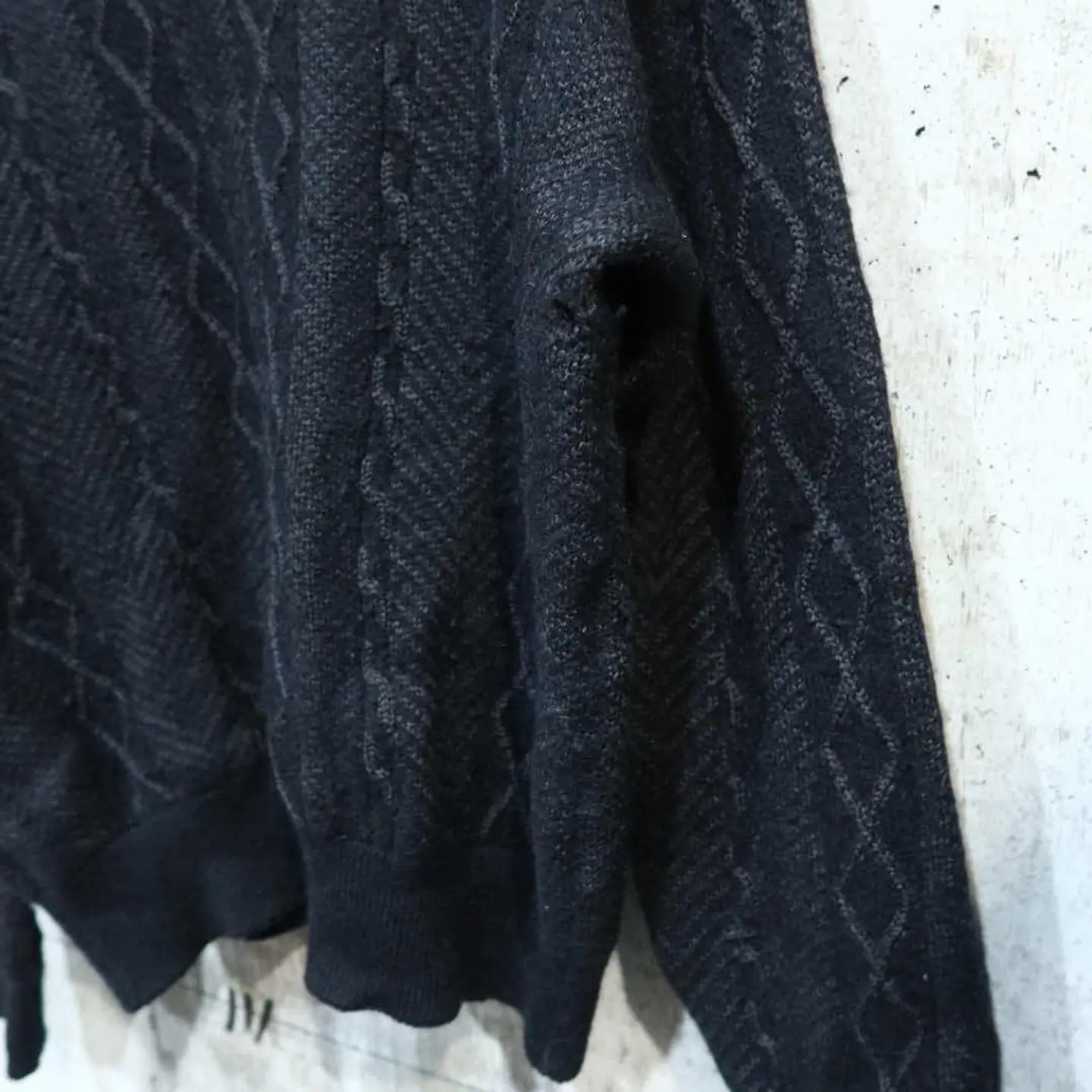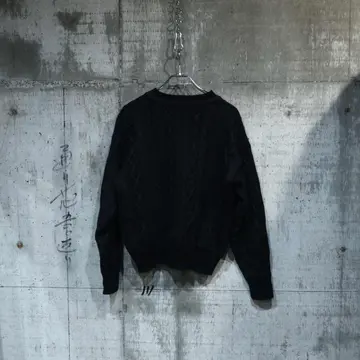 【サイズ】 肩幅 : 61 着丈 : 59 袖丈 : 57 身幅 : 56 【素材】 ウール80 モヘア20 【コンディション】 左袖下に小穴あり。 4,5枚目の写真をご覧ください。 #古着 #ウール #モヘア #黒 #ニット