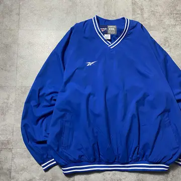 00s 90s リーボック 刺繍ワンポイント ラインリブ ナイロンプルオーバー