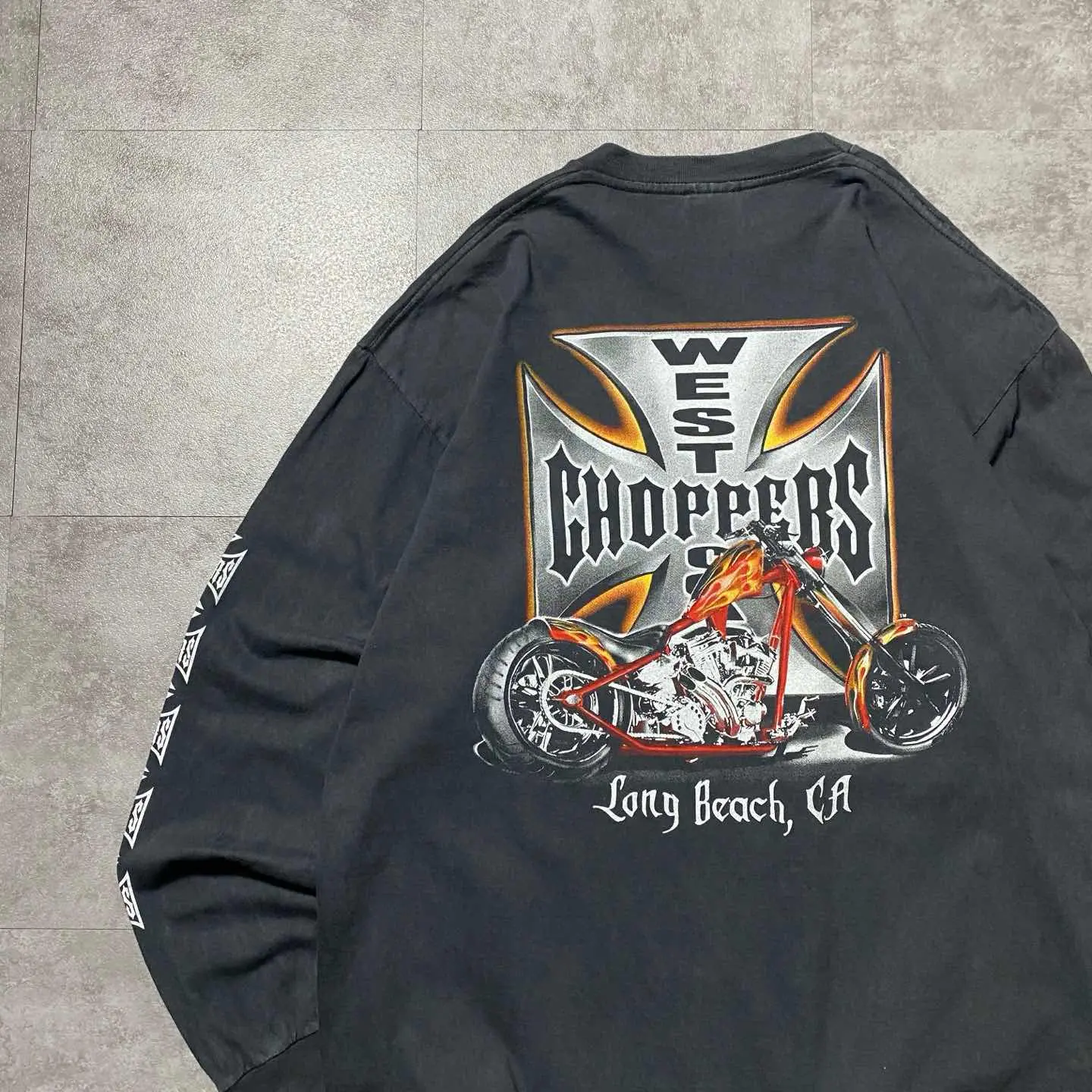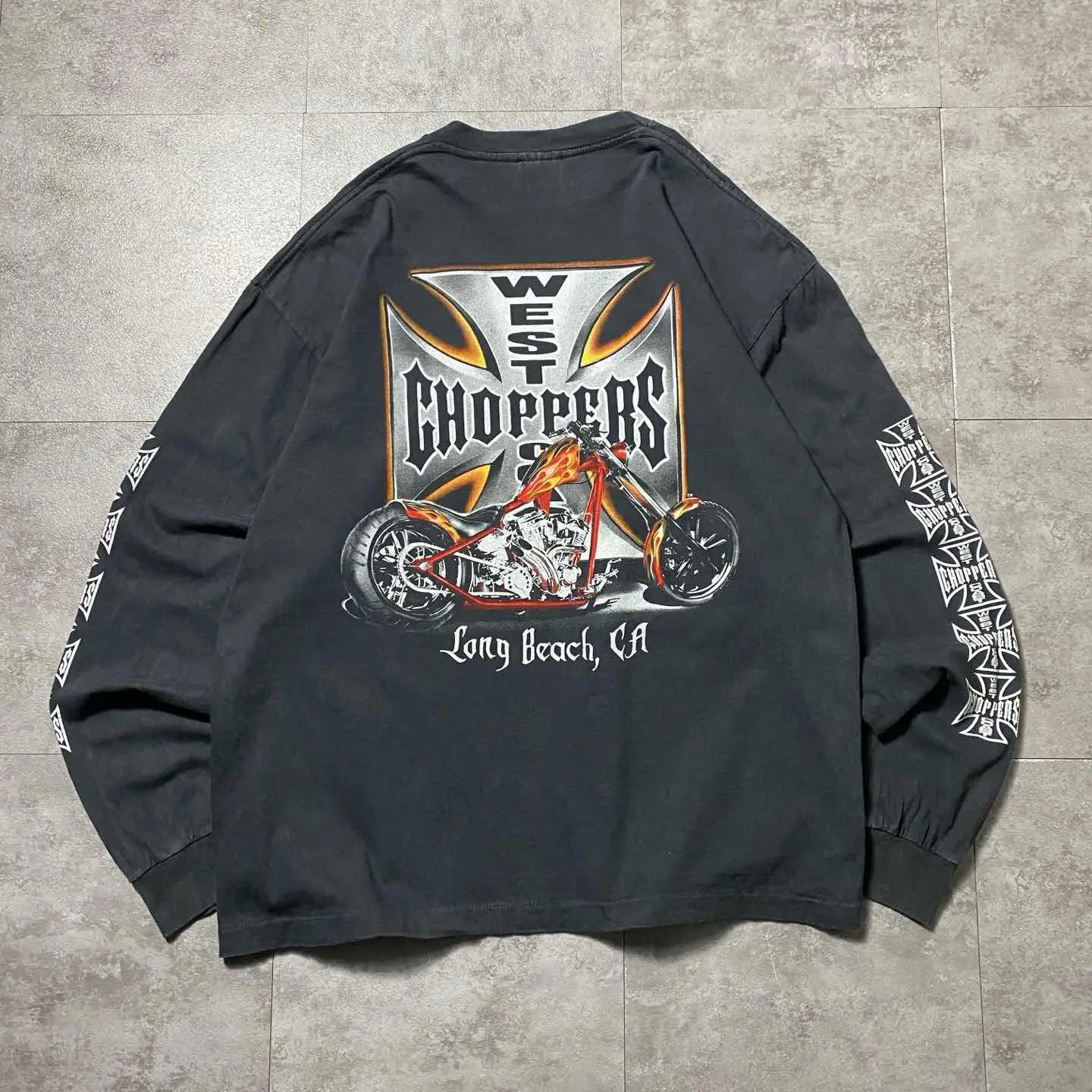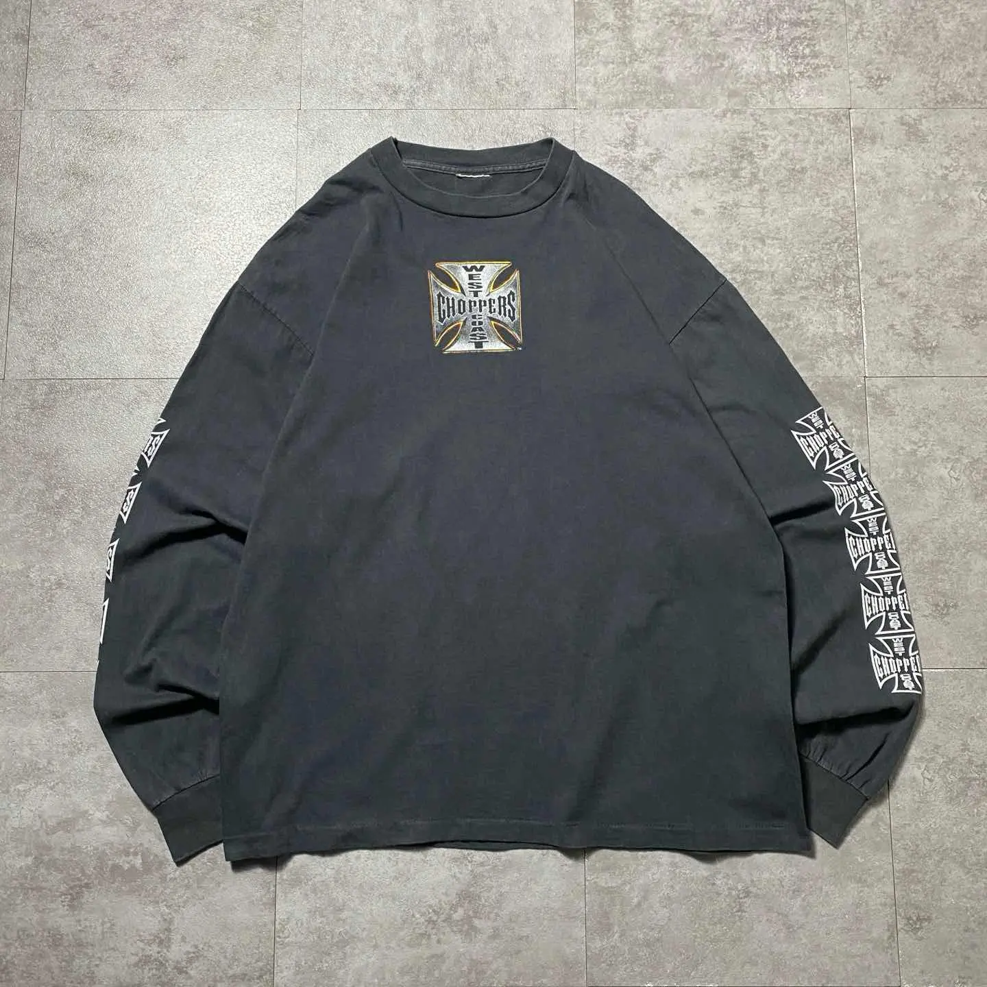 ウエストコーストチョッパーズ ブート アイアンクロス バックプリント アームプリント ロンT