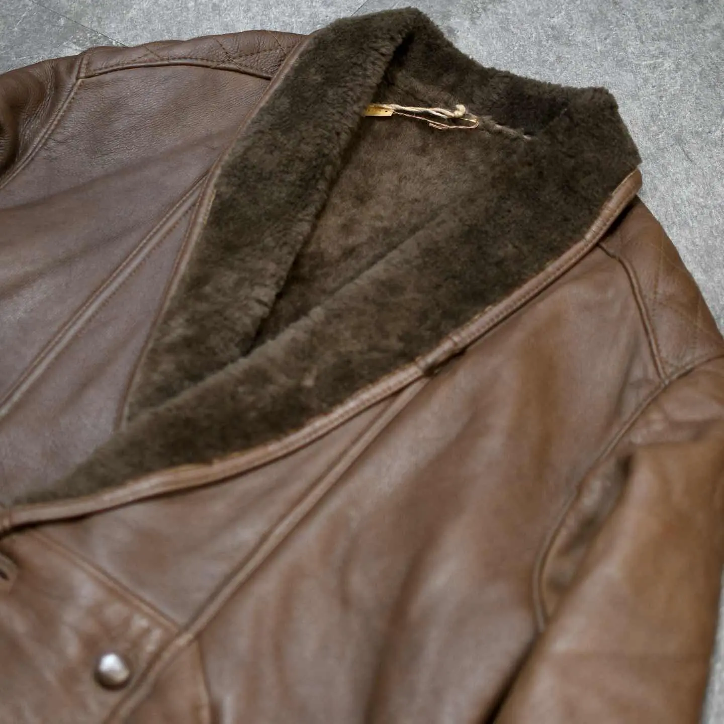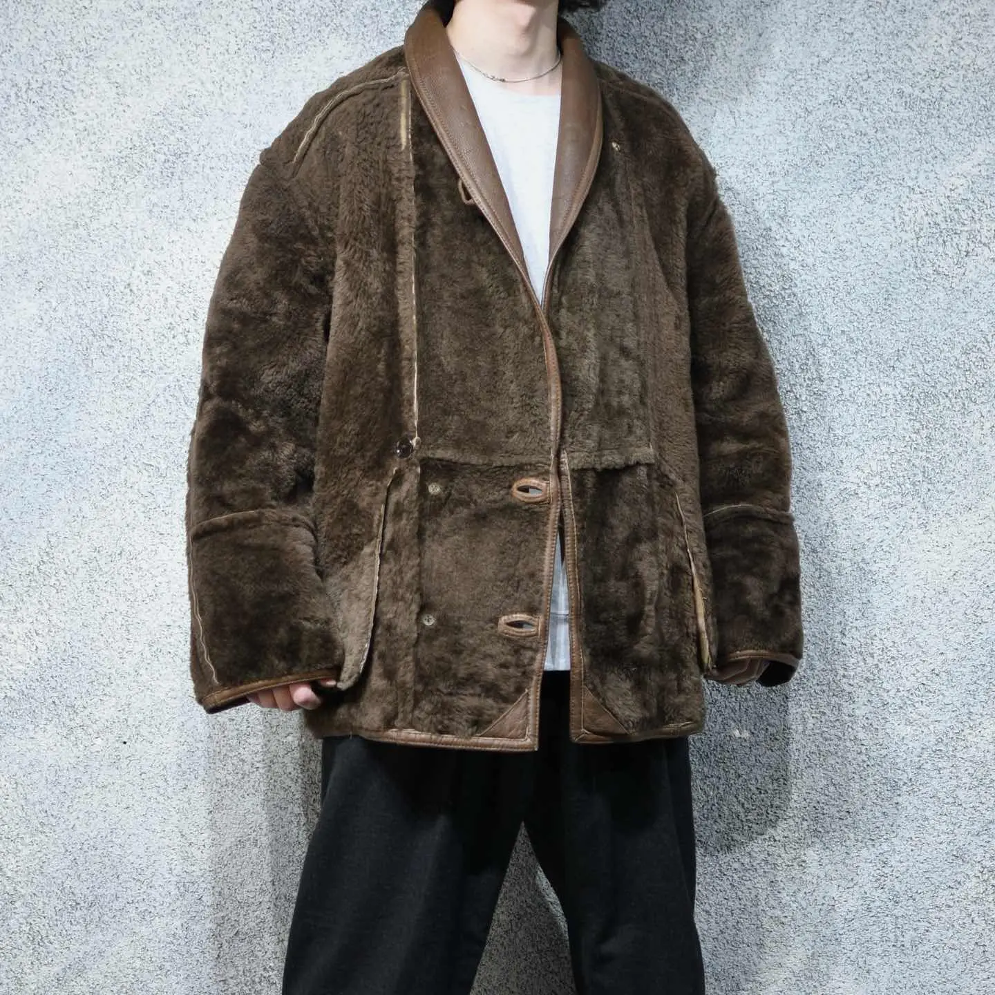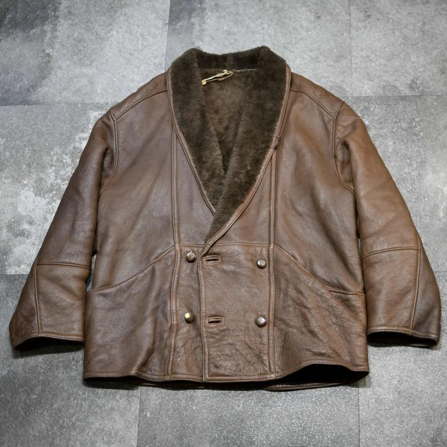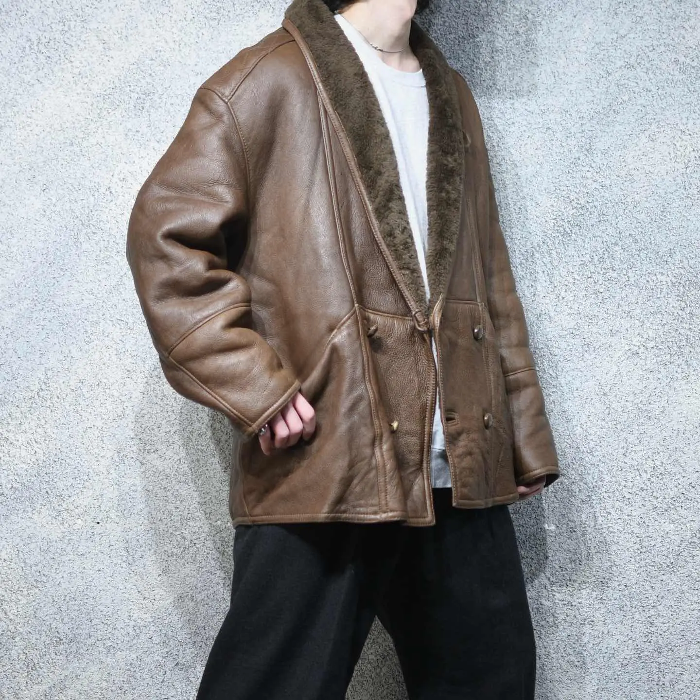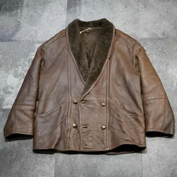 古着 ショールカラー ムートンジャケット ダブル レザージャケット