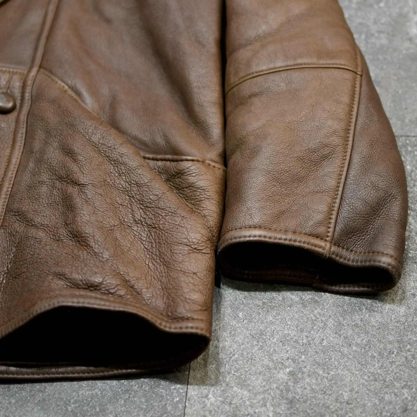 着丈80cm 肩幅59cm 身幅66cm 袖丈61cm fabric/leather 着用画像 177cm/64kg 自分が手元に置きたいレザーなら、こんな1着です。 差別化出来るブラウンレザーで、ショールカラー、 ダブルフロント。 そしてミドル丈の落ち着いた雰囲気は、 どこか熟れた印象を持ち合わせ、上品にニットや シャツなんかと合わせたいレザージャケット。 ムートンのふわっとした質感で、ちょっと遊び心を 足したい時は、裏返して着るのもなんだか 面白そうです。 ファッションに固定概念なんて要らないなと。 ※くるみボタン1箇所に傷みあり。 ※撮影状況により、実物と多少色が異なる場合が ございます。 ※古着を取り扱っているため、気づかない汚れや ほつれ等がある場合がございます。 予めご了承ください。 古着 オーバーサイズ old vintage ヴィンテージ used 80's 90's アメリカ古着 ユーロ古着 POLO RALPH LAUREN Eddie Bauer OLD GAP LANDS' END ランズエンド LLBean エルエルビーン オールドギャップ エディーバウアー ラルフローレン ブルックスブラザーズ Brooks Brothers シープスキン レザージャケット ジャケット 茶色 ブラウン などがお好きな方 #vintage #オーバーサイズ #old #used #90s #80s #古着 #ヴィンテージ #アメリカ古着 #ユーロ古着 #LLBean #エルエルビーン #EddieBauer #エディーバウアー #oldgap #オールドギャップ #LANDSEND #ランズエンド #NAUTICA #ノーティカ #ラルフローレン #POLORALPHLAUREN #ブルックスブラザーズ #BrooksBrothers #レザージャケット #ムートンジャケット #ショールカラー #ジャケット