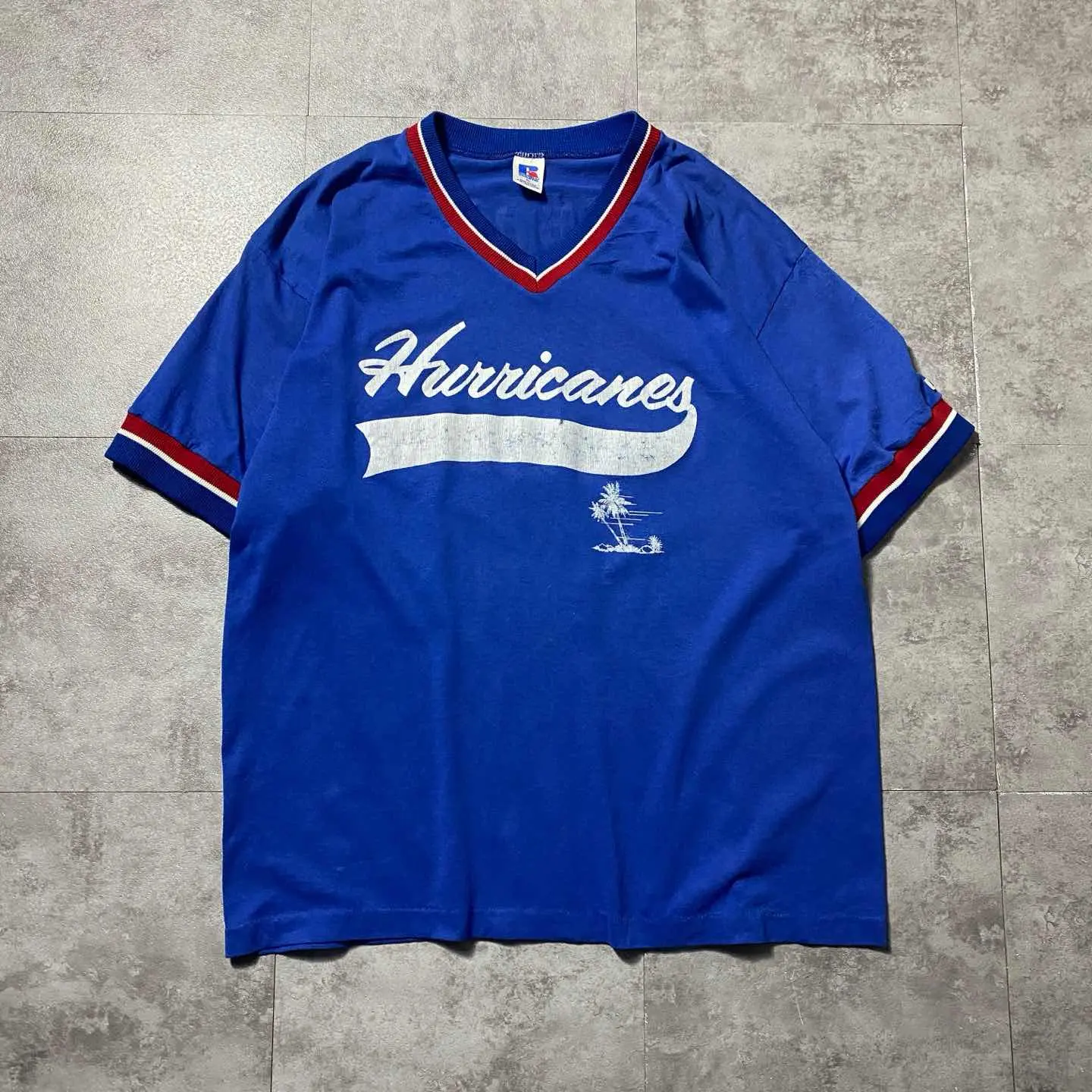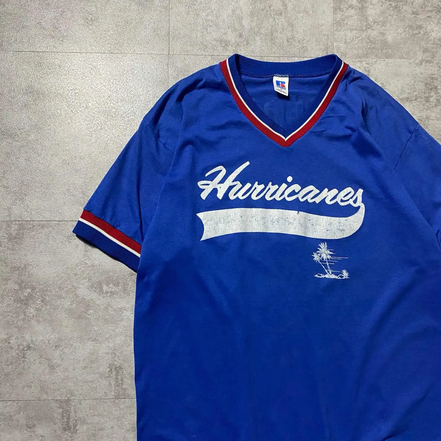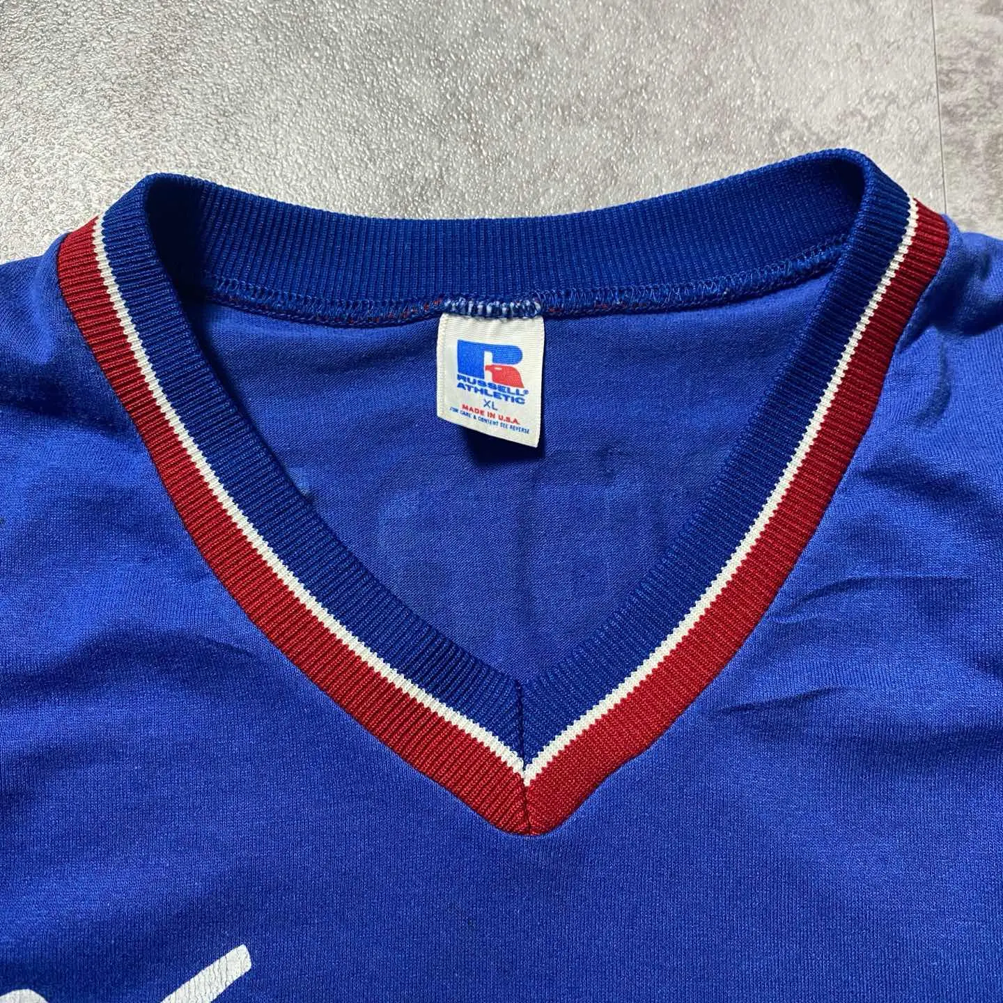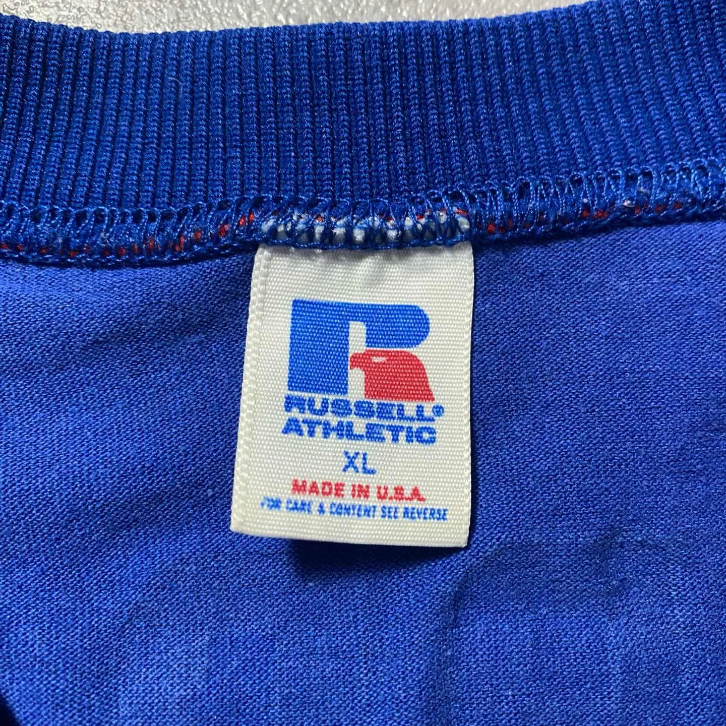 【USA製】80s-90s ラッセルアスレチック プリント ラインリブ Tシャツ