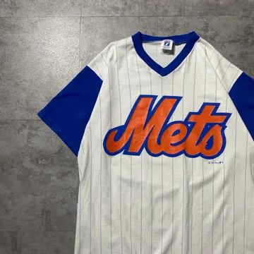 【USA製】90s LOGO7 メッツ ©︎1991 ストライプ ゲームシャツ