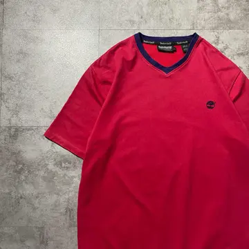 【ポルトガル製】90s ティンバーランド 刺繍ロゴ リンガーネック Tシャツ