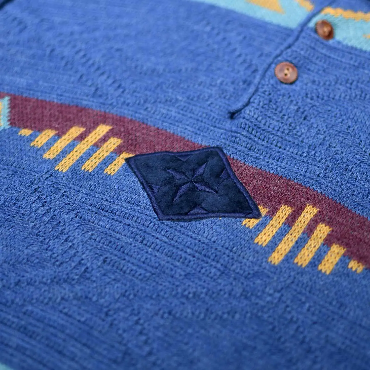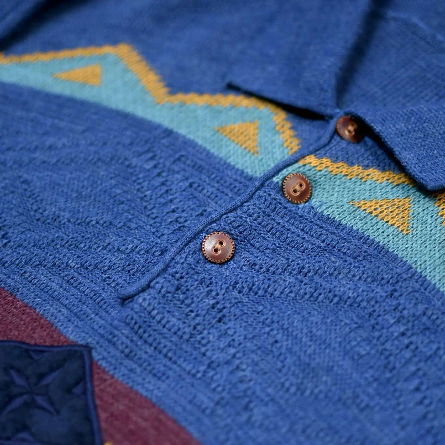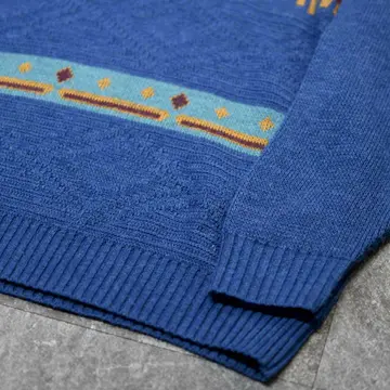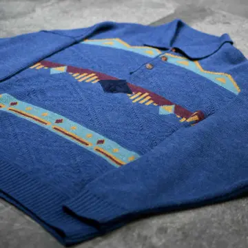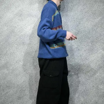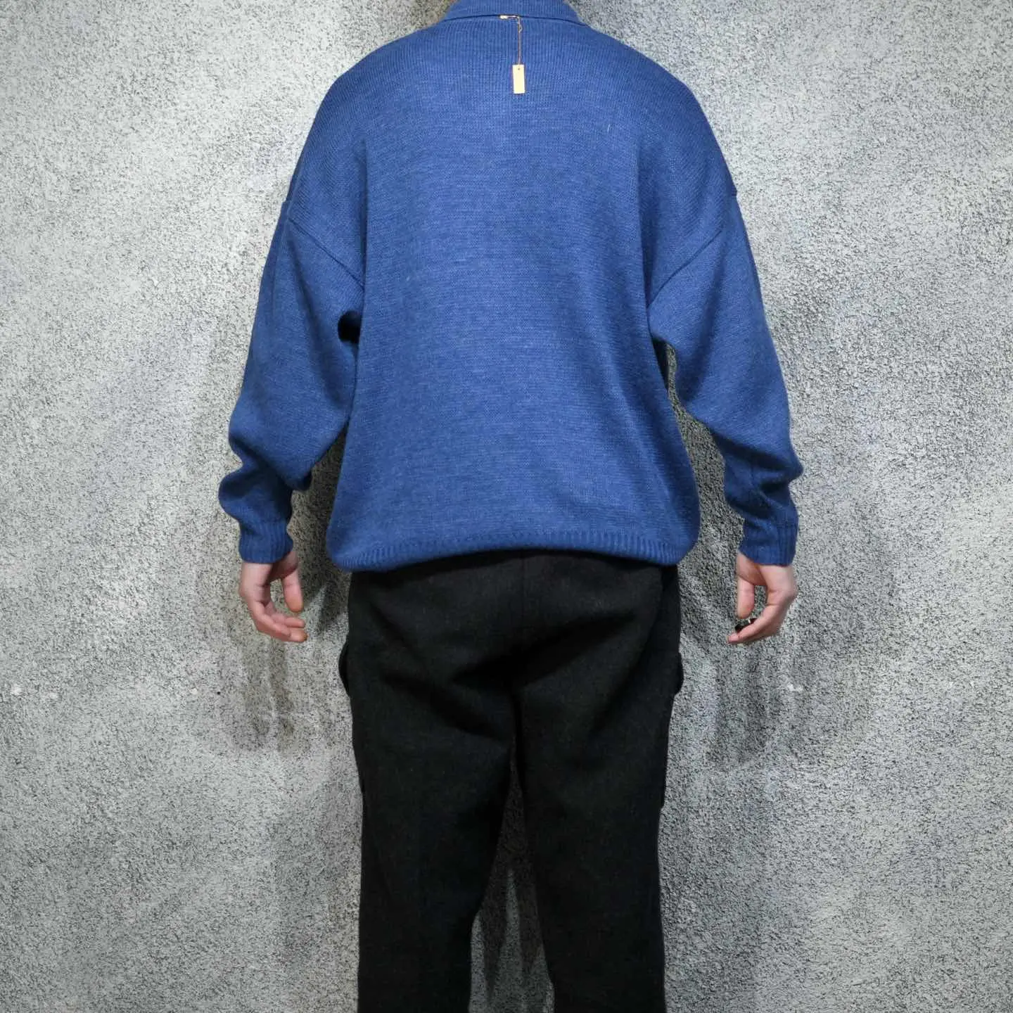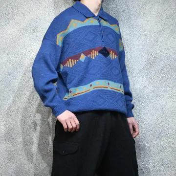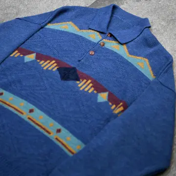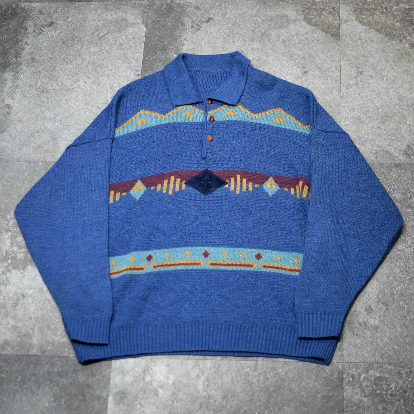 古着 デザインニット ニットポロ ブルー アクリルニット ウールニット 青