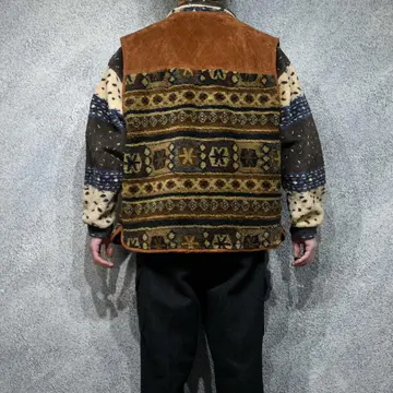 着丈72cm 肩幅49cm 身幅65cm fabric/poly made in italy 着用画像 177cm/64kg ネイティブ柄のフリース生地と、 フェイクスウェード生地の切り替え。 この手のフリースベストを、街ゆく方が 着ているところを見ないなと。 こんな可愛いやつもあるので、ぜひフリースや スウェット、アウターの上から羽織ってみては どうでしょう。 ※撮影状況により、実物と多少色が異なる場合が ございます。 ※古着を取り扱っているため、気づかない汚れや ほつれ等がある場合がございます。 予めご了承ください。 古着 オーバーサイズ old vintage ヴィンテージ used 80's 90's アメリカ古着 ユーロ古着 POLO RALPH LAUREN Eddie Bauer OLD GAP LANDS' END ランズエンド LLBean エルエルビーン オールドギャップ エディーバウアー ラルフローレン ブルックスブラザーズ Brooks Brothers 茶色 ネイティブ柄 ボアベスト などがお好きな方 #vintage #オーバーサイズ #old #used #90s #80s #古着 #ヴィンテージ #アメリカ古着 #ユーロ古着 #LLBean #エルエルビーン #EddieBauer #エディーバウアー #oldgap #オールドギャップ #LANDSEND #ランズエンド #NAUTICA #ノーティカ #ラルフローレン #POLORALPHLAUREN #ブルックスブラザーズ #BrooksBrothers #ベスト #デザインベスト #ネイティブ柄 #エスニック #フリースベスト #フリース #ボアベスト