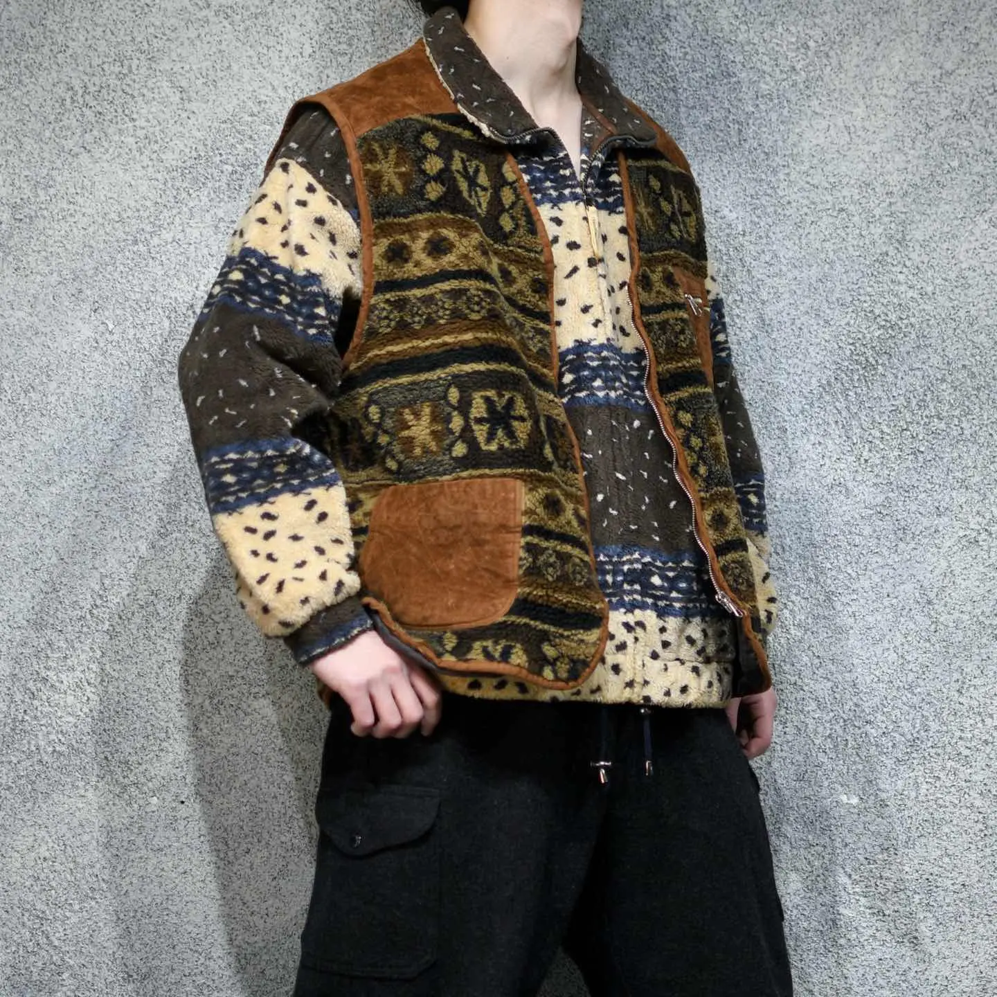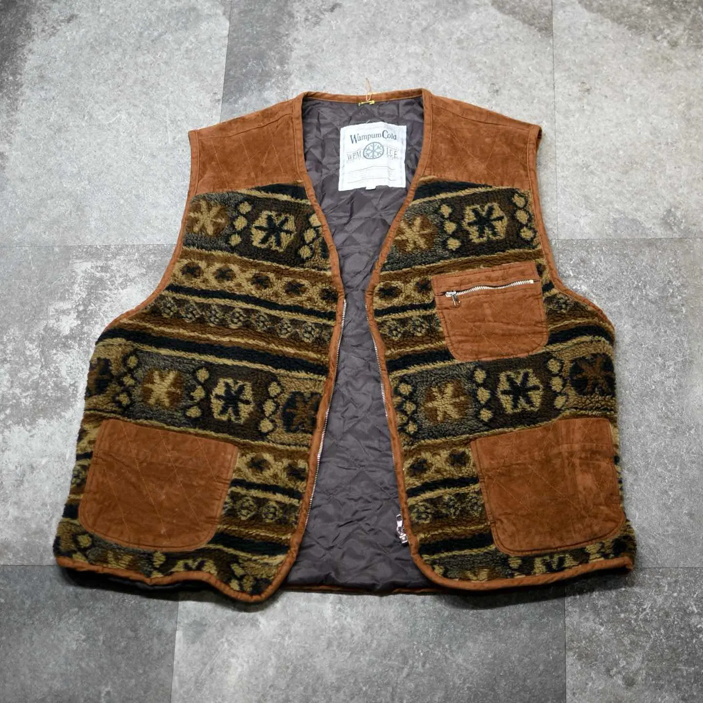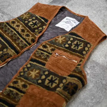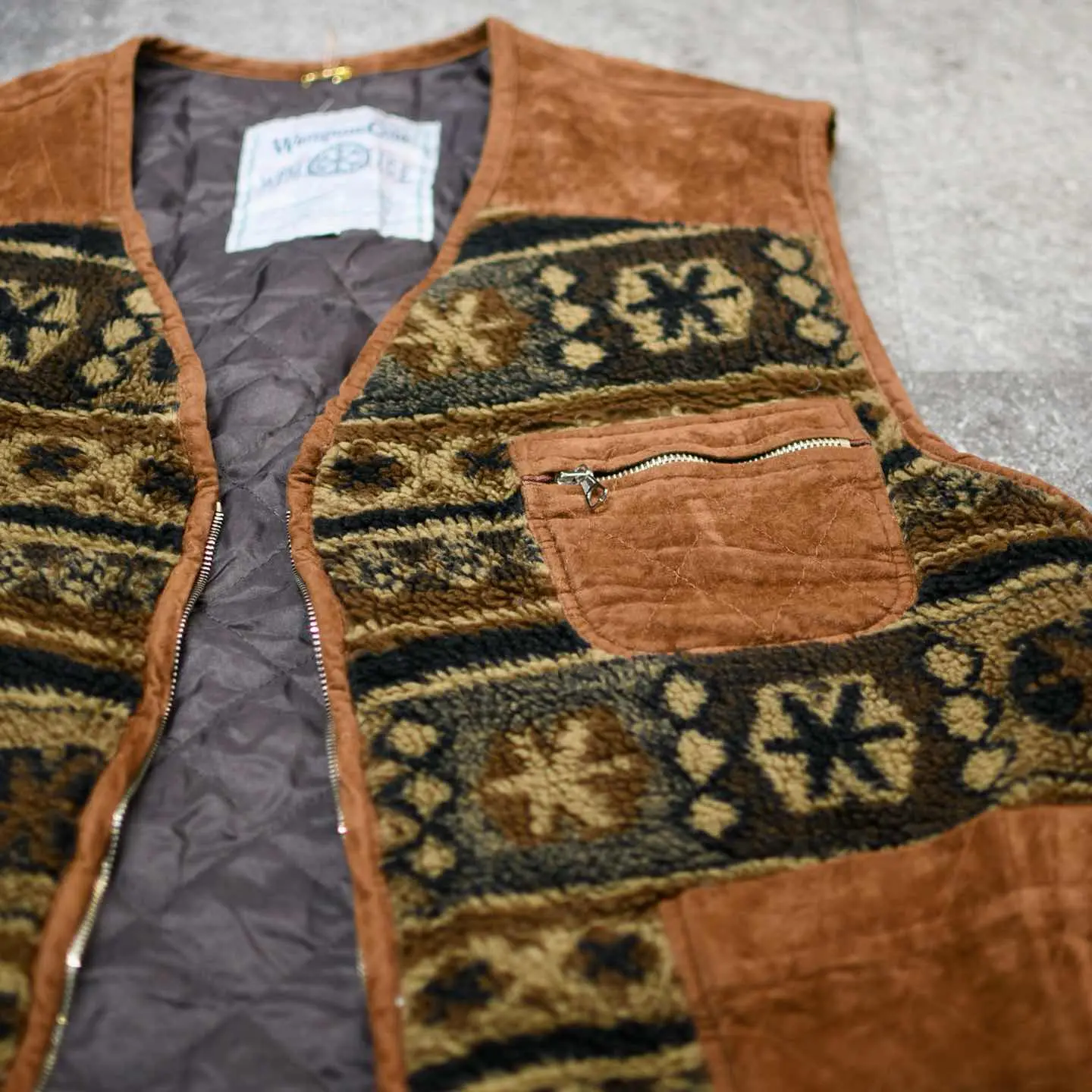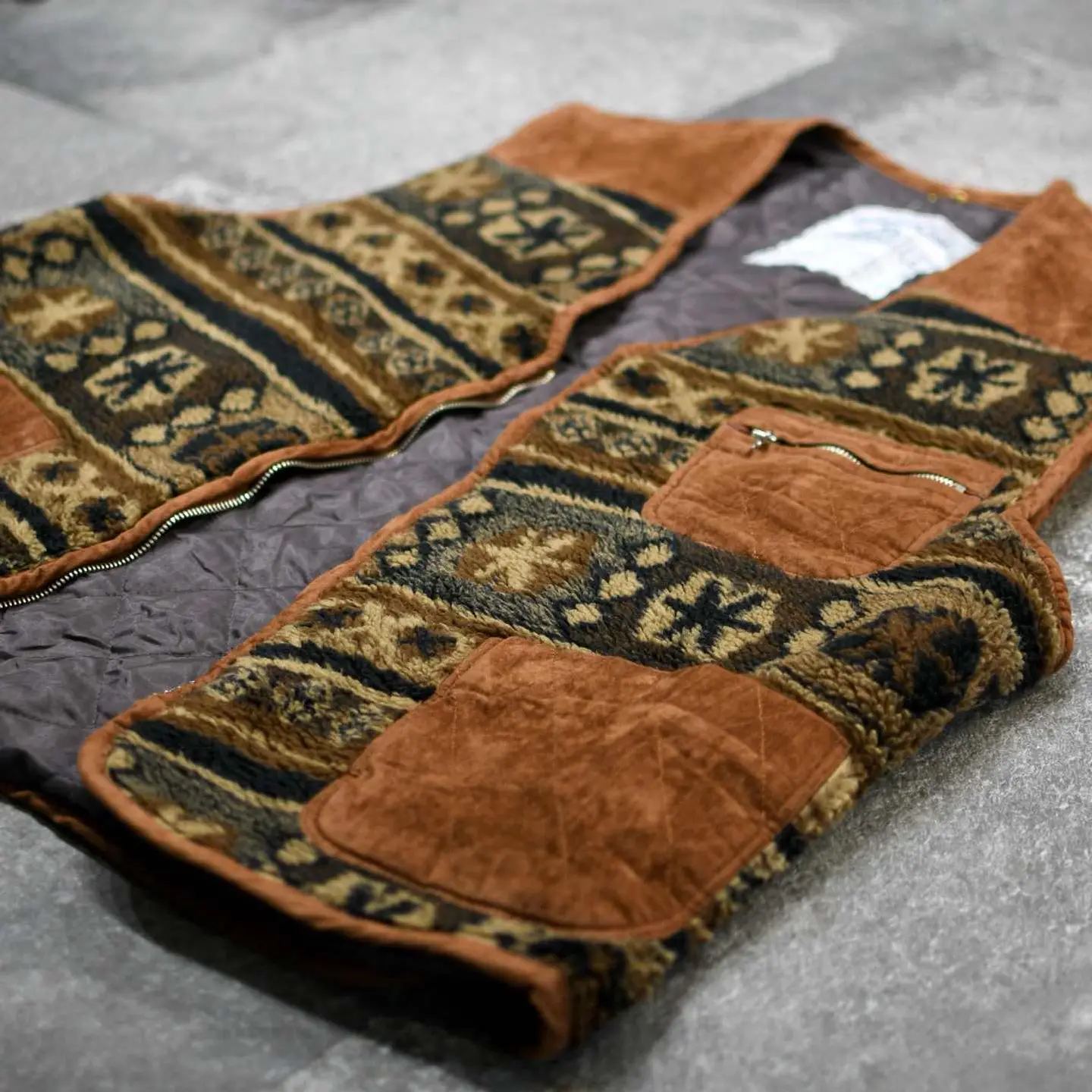 古着 切り替え デザインベスト フリースベスト エスニック ベスト ブラウン