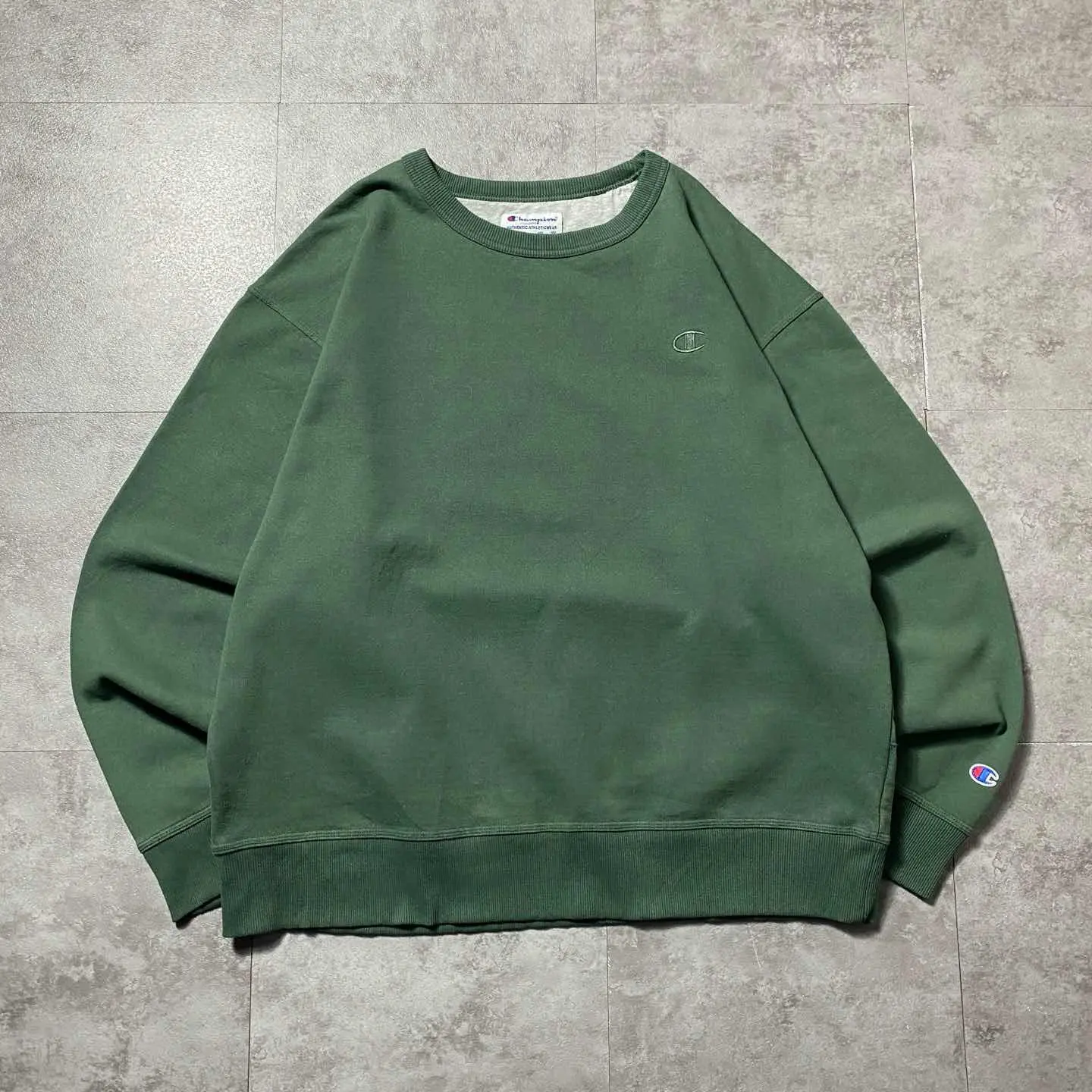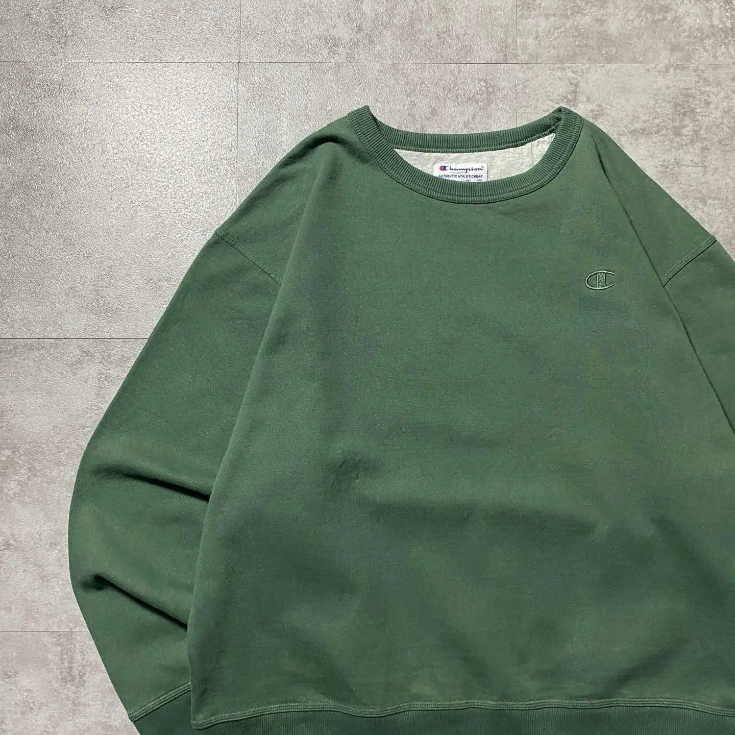 チャンピオン 刺繍ワンポイント グリーン スウェット トレーナー