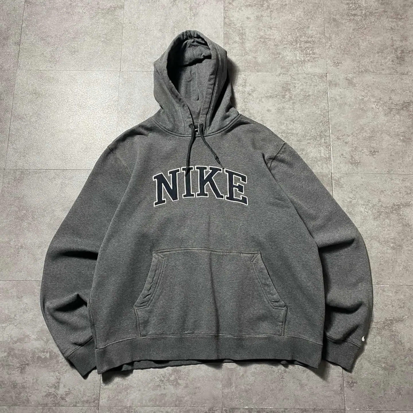 【XL】00s NIKE ナイキ 文字刺繍ロゴ グレー スウェット パーカー