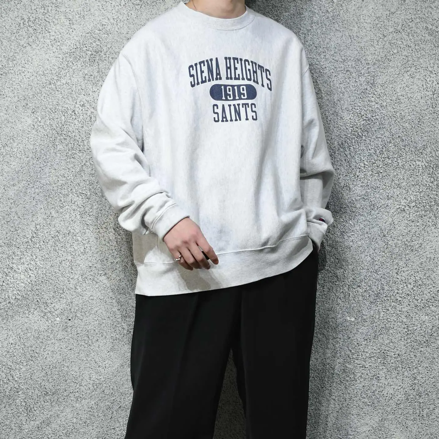 SIZE:XL 着丈73cm 肩幅59cm 身幅71cm 袖丈70cm fabric/cotton・poly 着用画像 177cm/64kg くたくたに着倒された個体ほど感じる、 あのリバースウィーブ特有の縦横比。 良くも悪くもそれがリバースウィーブらしいですが、年代が若いからこそ、この縦横比には 新鮮味を感じました。 身幅がしっかりとあり、ゆるく着れるのはもちろん、インナーにシャツを着たり、着込むことも難なく出来るのが◎ これから育てるスウェットとして、 雑に着るスウェットとして、カジュアルに 野暮ったく落とし込みたいなと。 ※撮影状況により、実物と多少色が異なる場合が ございます。 ※古着を取り扱っているため、気づかない汚れや ほつれ等がある場合がございます。 古着 オーバーサイズ old vintage ヴィンテージ used 80's 90's アメリカ古着 ユーロ古着 POLO RALPH LAUREN Eddie Bauer OLD GAP LANDS' END ランズエンド LLBean エルエルビーン オールドギャップ エディーバウアー ラルフローレン ブルックスブラザーズ Brooks Brothers 灰色 プリントスウェット トレーナー リバースウィーブ などがお好きな方 #vintage #オーバーサイズ #old #used #90s #80s #古着 #ヴィンテージ #アメリカ古着 #ユーロ古着 #LLBean #エルエルビーン #EddieBauer #エディーバウアー #oldgap #オールドギャップ #LANDSEND #ランズエンド #NAUTICA #ラルフローレン #POLORALPHLAUREN #ブルックスブラザーズ #BrooksBrothers #スウェット #トレーナー #カレッジスウェット #プリントスウェット #reverseweave #リバースウィーブ #Champion
