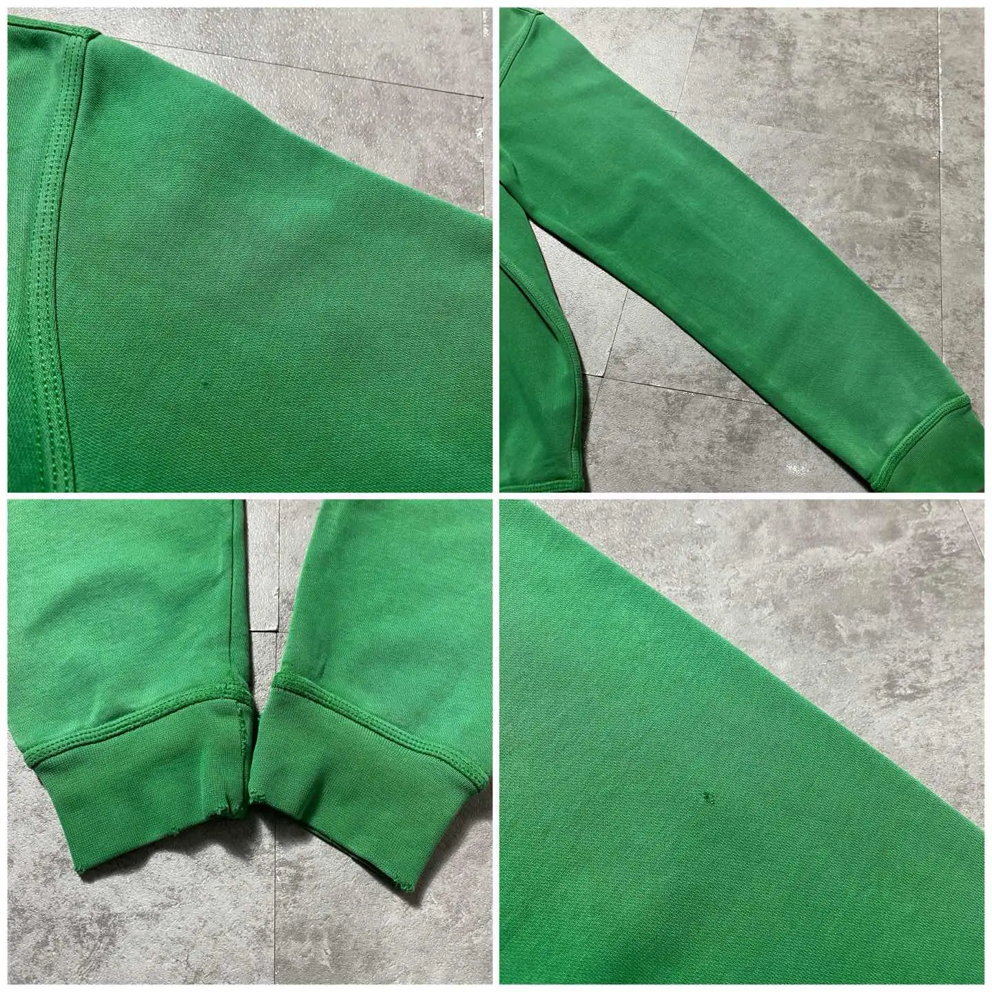 ○Size○ 表記→M ・着丈65 ・身幅57 ・肩幅44 ・袖丈67 (cm) ○Color○ ・グリーン ○Material○ ・80%コットン 20%ポリエステル ○Condition○ ・首元、袖先、裾先にダメージ箇所あり ・右袖一部小さなほつれ箇所あり ・左袖にフェード感あり ○Caution○ 当店で取り扱っている商材は全て『古着』となっております。 そのため、多少の状態難(ほつれ、傷、汚れ、リブの伸び、使用感、擦れ、色あせ、etc)がある場合がございます。 新品同様の完璧なお品物をお求めの方は当店でのお買い物を控えて頂きますよう宜しくお願いします。 また、購入された商品に関しましては、購入日時から起算して『72時間以内に』発送手続きの方を取らせて頂きます。 お急ぎの場合は購入前に当店オンラインストアの方にお問い合わせ頂きますよう宜しくお願いします。 25/1967