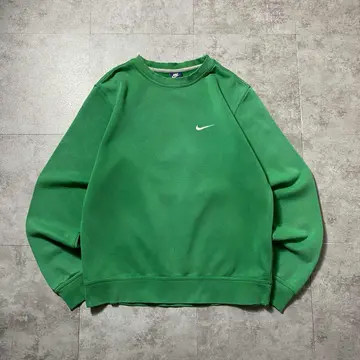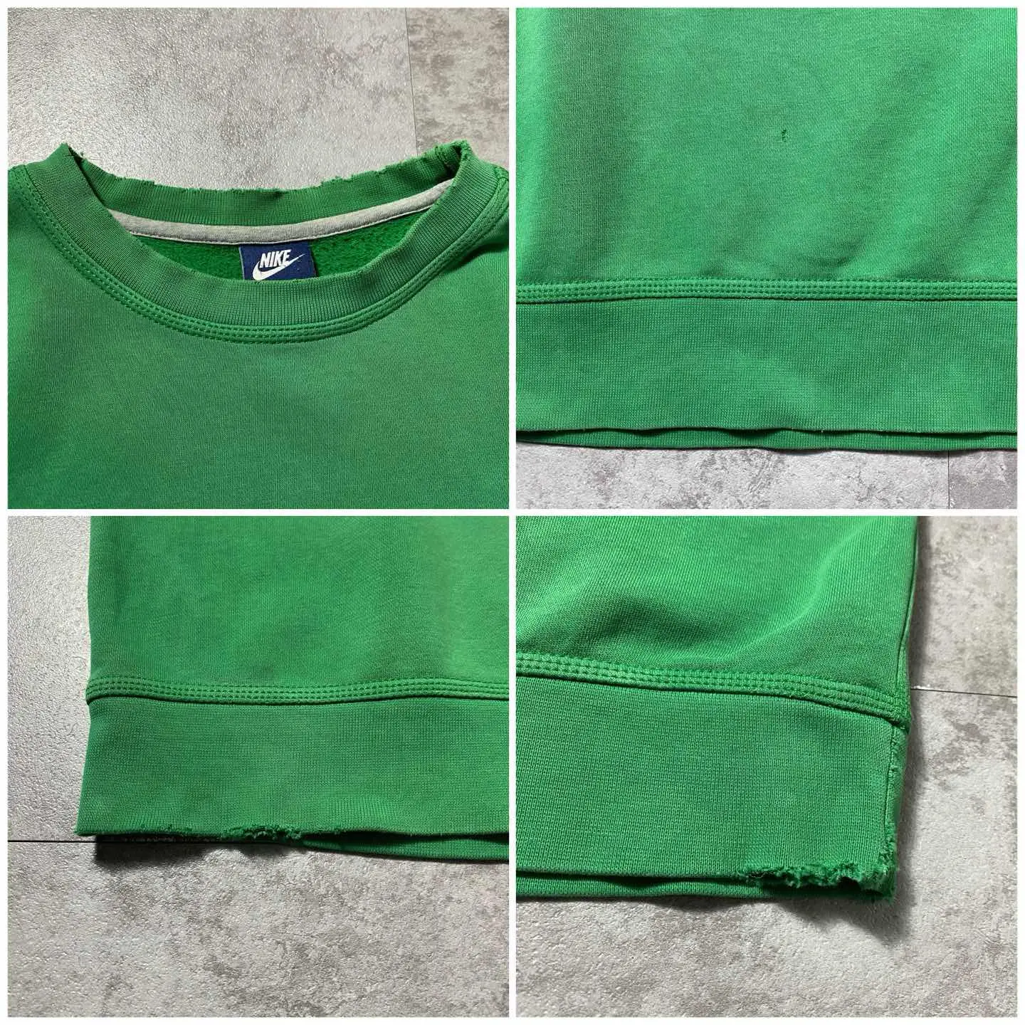 【XL】ナイキ スウォッシュ 刺繍ワンポイント グリーン ダメージ スウェット