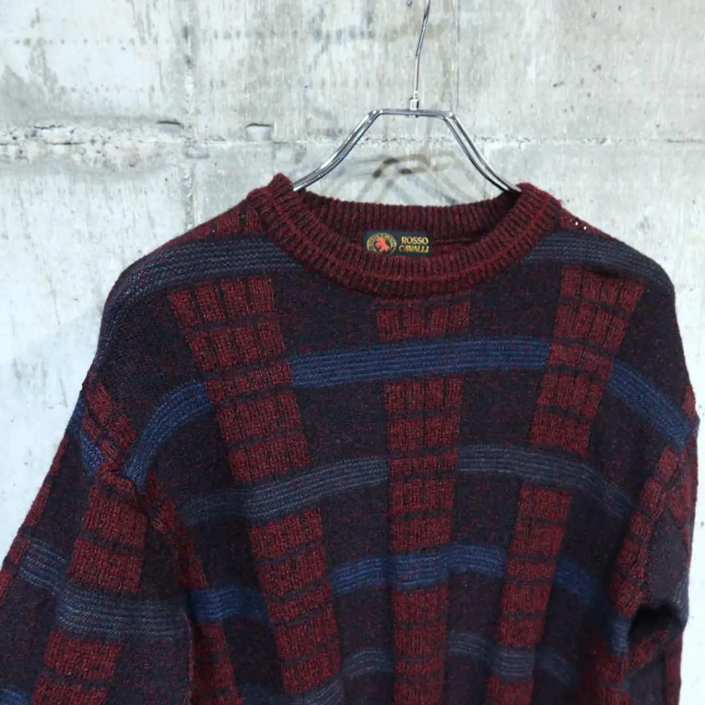 【サイズ】 肩幅 : 54 着丈 : 66 袖丈 : 62 身幅 : 53 【素材】 ウール80 ナイロン20 【コンディション】 傷や汚れはございません。 一般的な古着の状態です。 #柄ニット #赤 #青 #ネイビー
