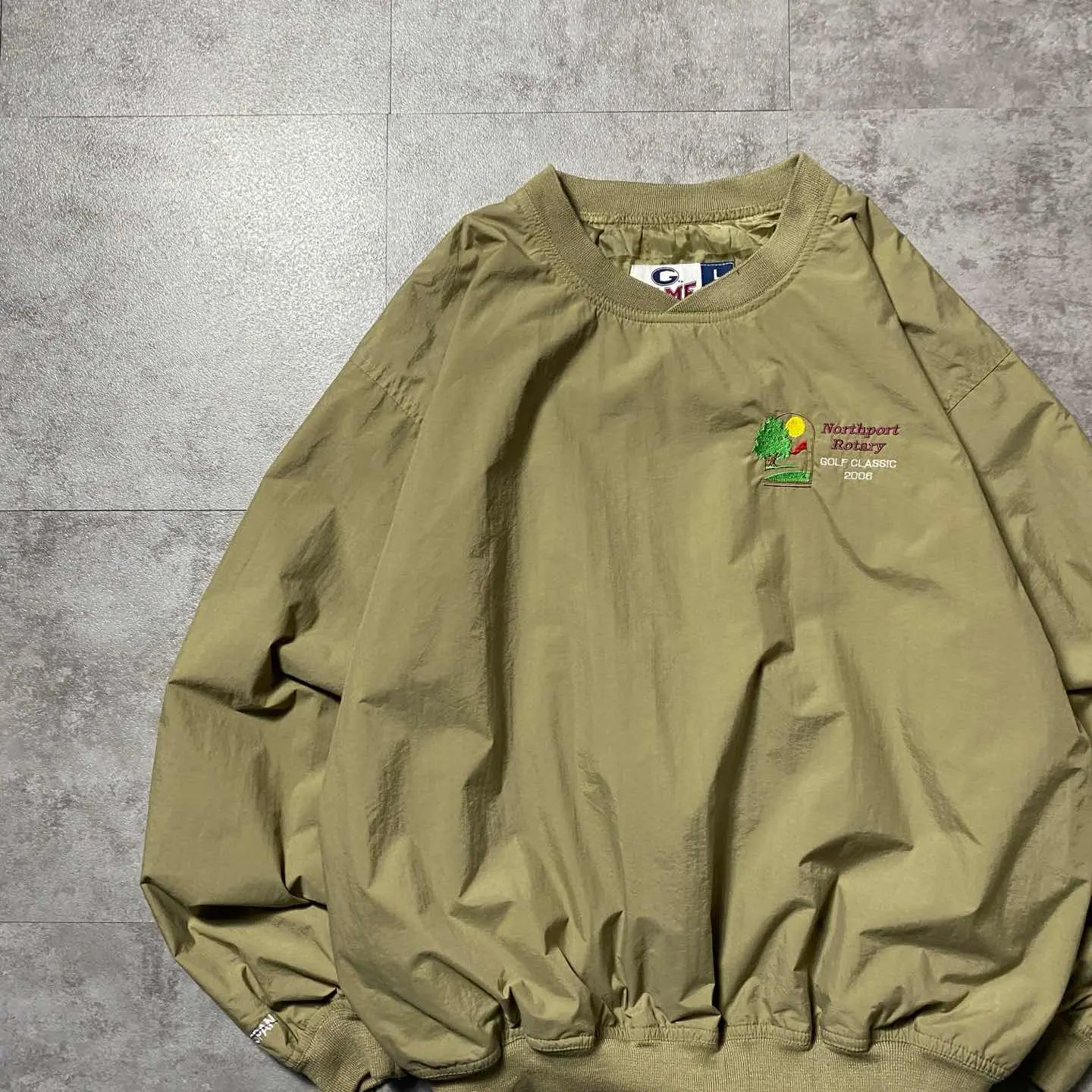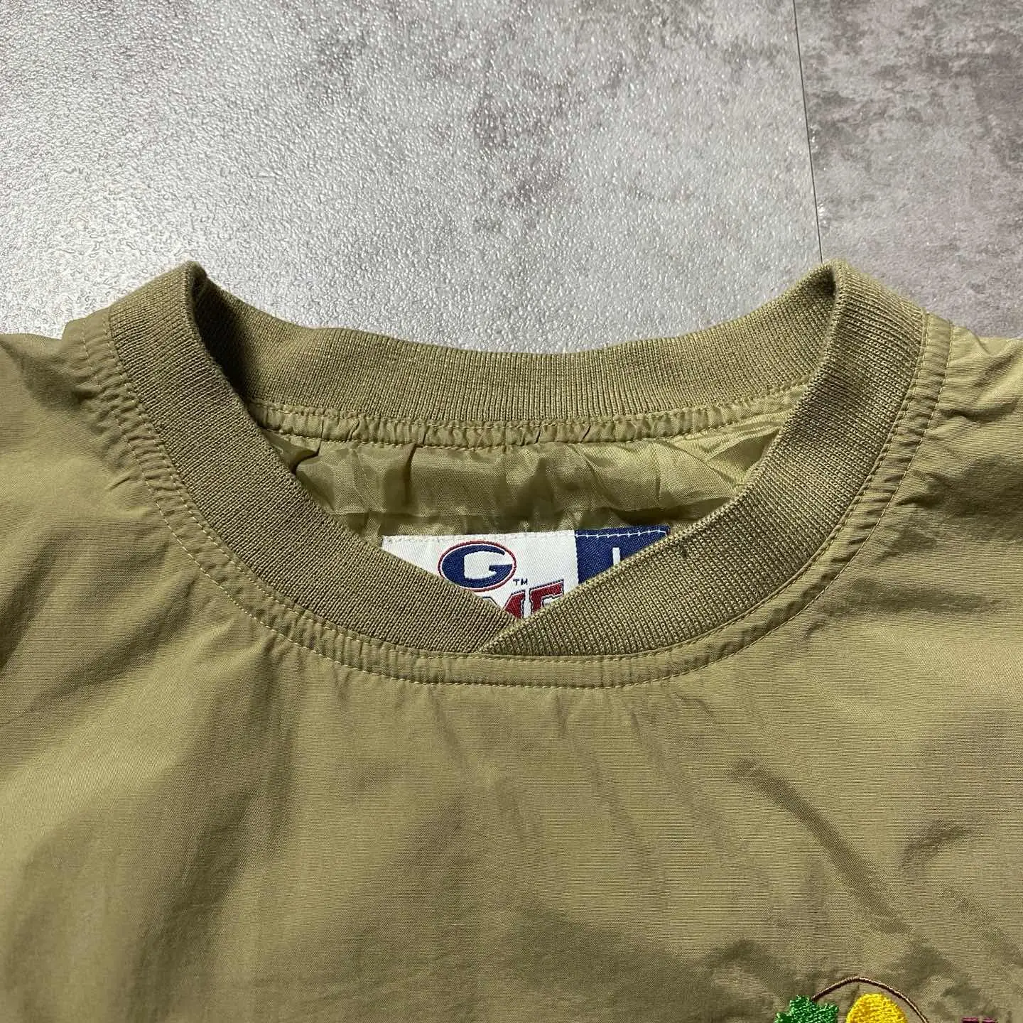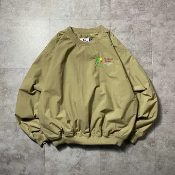90s GAME 刺繍ワンポイント 企業ロゴ ベージュ ナイロンプルオーバー