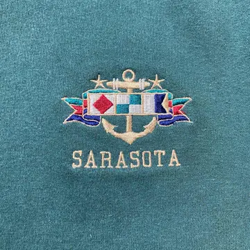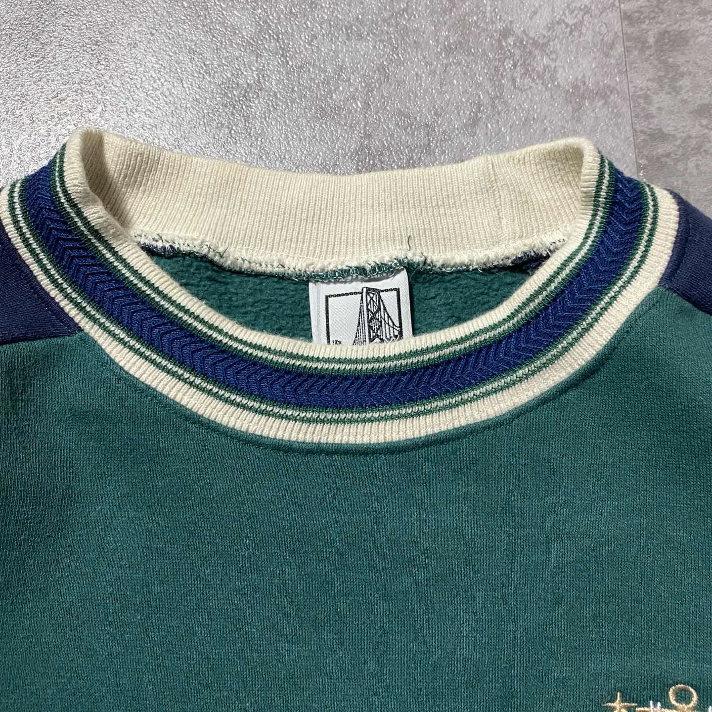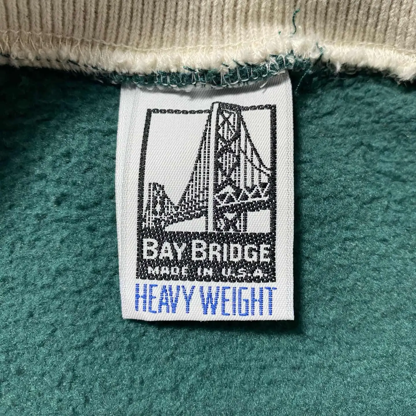 【USA製】90s BAYBRIDGE 刺繍ワンポイント ラインリブ グリーン スウェット