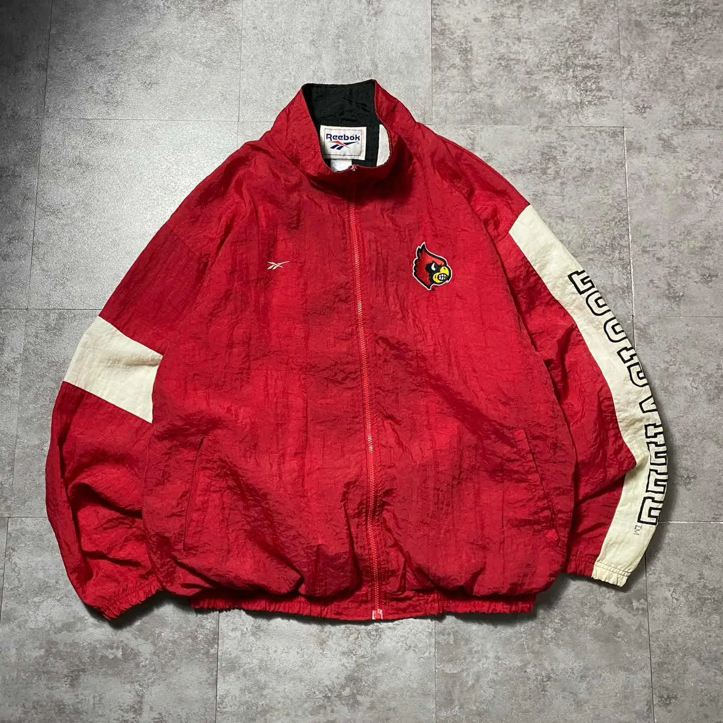 【XL】90s リーボック NCAAルイビル・カーディナルズ 刺繍ロゴ ナイロンジャケット