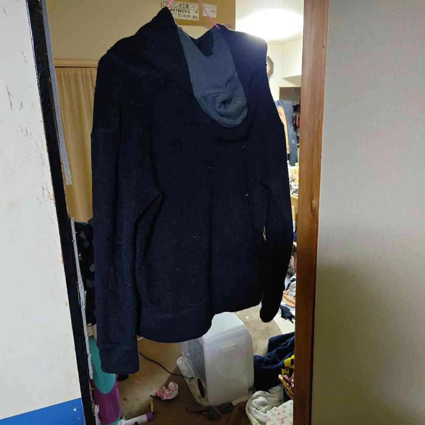 SABLE CLUTCH(サーブルクラッチ)のフーデッドコート。 ボア/フリース系の温かい素材感で、サッと羽織るだけで雰囲気が出る一着です。 ブラックなので合わせやすく、デニムにもスラックスにも◎。 ボタン留めで首元までしっかり防寒できます。