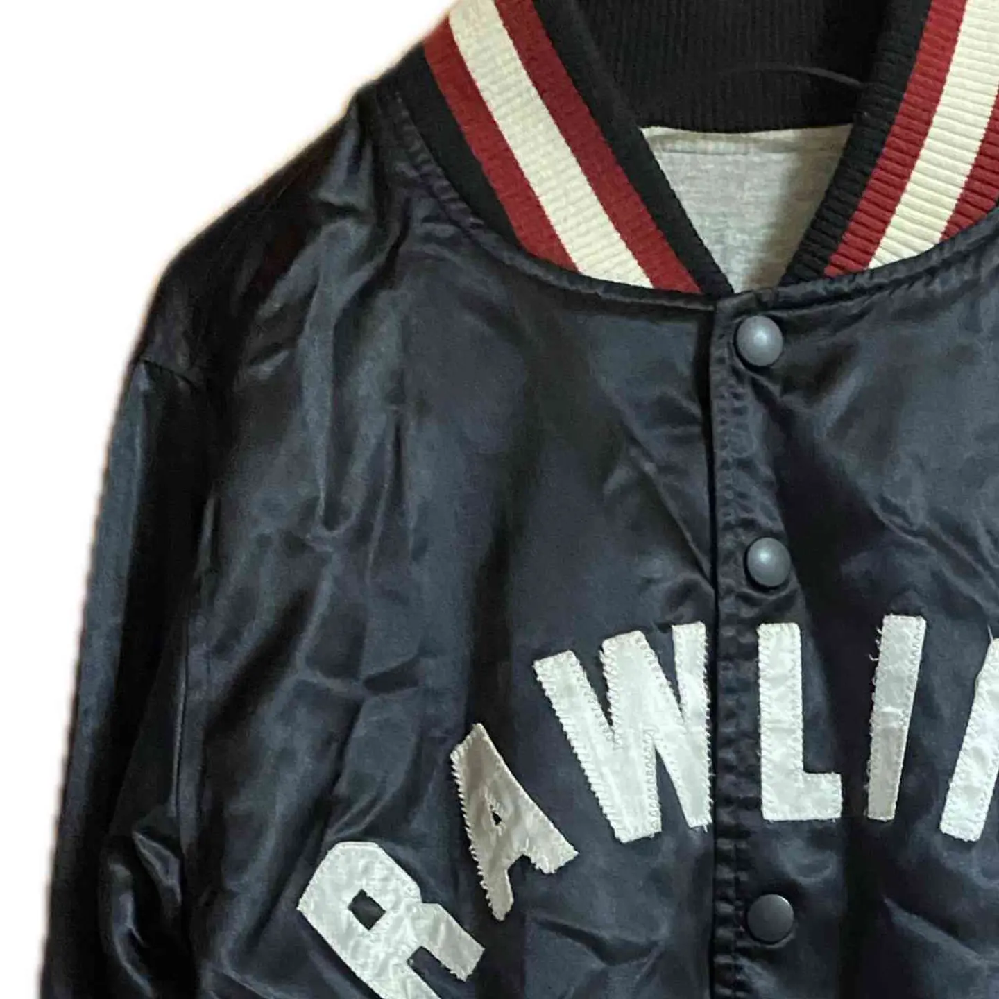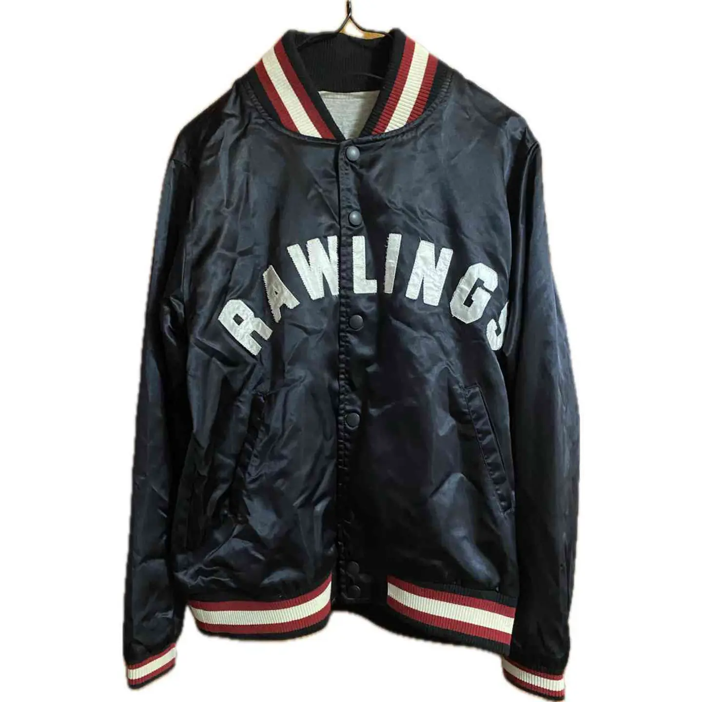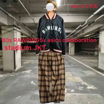 まずコーデから説明 大きすぎず小さすぎない 最高なサイズだから きれいめなはずのボトム トもカチッと決まるアイテムだったら 古着好きには、たまらない! •Brand: Rawlings MLB ユニフォームとか、グローブなどの、officialbrandと asicsダブルネーム !!激レアスタジャン、 豆知識 Rawlingsは、87年に、ブランド化した、 そもそも、その前からMLB のグローブとか、ユニフォームを手掛ける化け物企業 だがスタートアップのブランドは、認知度がない よってASICSがオファーでダブルネームスタートアップタイプ因みにだから88−89年確定、 で、その後コラボは一切ないだから、激レア •data: 80s vinvage •point:アシックスの角張ったフォントの品質タグ 「157–163 / M」などの 旧JIS規格のサイズ表記 ナイロン特有の光沢感の強い素材(80s〜90sの特徴)刺繍ではなくフェルトワッペン貼りのRAWLINGSロゴ(80s〜90sらしいつくり) 【希少価値が、止まらない 特筆point】 Rawlings は米国ブランドだが、日本企画のASICS製が現存数少なめ 80s〜リモンタ素材スタジャンは近年の古着市場で人気上昇中 首・裾・袖の**2色リブ(赤×白×黒)**が人気ディテール 特に 前面アーチロゴのRAWLINGS は球団物より球モノ好きに刺さりやすく、希少価値は、高くなる一方、買うなら今!です。 ▷color◁ ブラック ※ブラウザで異なる場合ありますがかなり実物には、近づけてます、 ▷size◁ 平置き片面採寸【㎝表記】 表記size Lくらい 着丈/63 身幅/55 肩幅/46 袖丈 /64 DSは袖はハンガー採寸 ※多少の誤差は理解下さい 170/Mジャスト体型の私が着て、✔️参考に ジャスト オーバーサイズ✔︎ ビックサイズ 【素材】 リモンタ 【状態】 美品