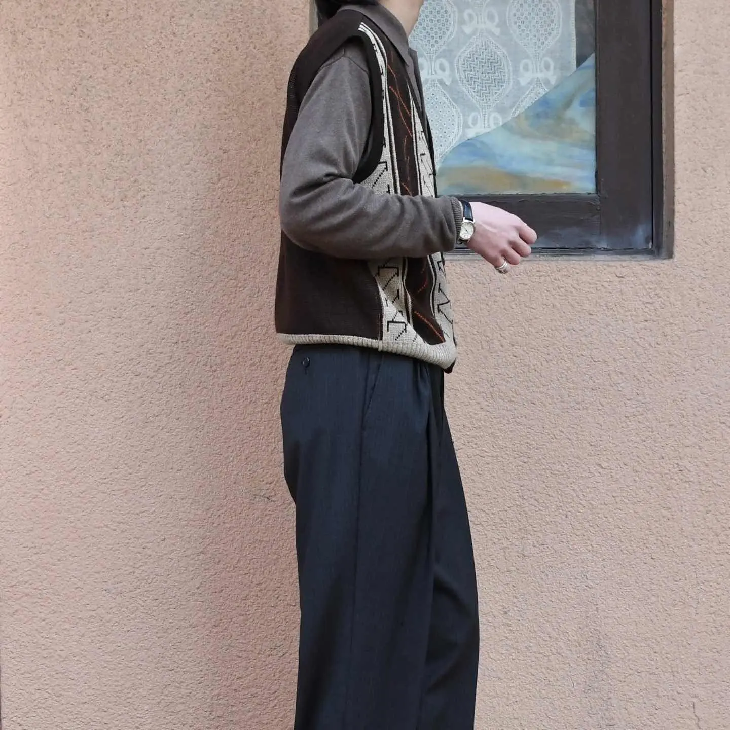SIZE:- 着丈60cm 肩幅45cm 身幅56cm fabric/acrylic 着用画像 173cm/56kg どうやら、いや、やっぱり自分はアースカラーが 好きなようです。 纏まりのある色使いに惹かれ、”やっぱり良いな” なんて思いながら撮影してました。 ブランドタグは無いので、 こちらは背景無しでの提案ですが、このアイテムは それが合っていると感じたので、そのままで。 個人的には同じ色味のニットポロの上から 合わせたいなと。 ※撮影状況により、実物と多少色が異なる場合が ございます。 ※古着を取り扱っているため、気づかない汚れや ほつれ等がある場合がございます。 予めご了承ください。 ※サイズは着用感で選んでおり、 表記サイズではございません。 表記サイズは説明欄の最初に記載しております。 古着 オーバーサイズ old vintage ヴィンテージ used 80's 90's アメリカ古着 ユーロ古着 POLO RALPH LAUREN Eddie Bauer OLD GAP LANDS' END ランズエンド LLBean エルエルビーン オールドギャップ エディーバウアー ラルフローレン ブルックスブラザーズ Brooks Brothers アースカラー 茶色 ベージュ などがお好きな方 #vintage #オーバーサイズ #old #used #90s #80s #古着 #ヴィンテージ #アメリカ古着 #ユーロ古着 #LLBean #エルエルビーン #EddieBauer #エディーバウアー #oldgap #オールドギャップ #LANDSEND #ランズエンド #NAUTICA #ノーティカ #ラルフローレン #POLORALPHLAUREN #ブルックスブラザーズ #BrooksBrothers #ニットベスト #ベスト #セーター #アクリルニット #デザインニット