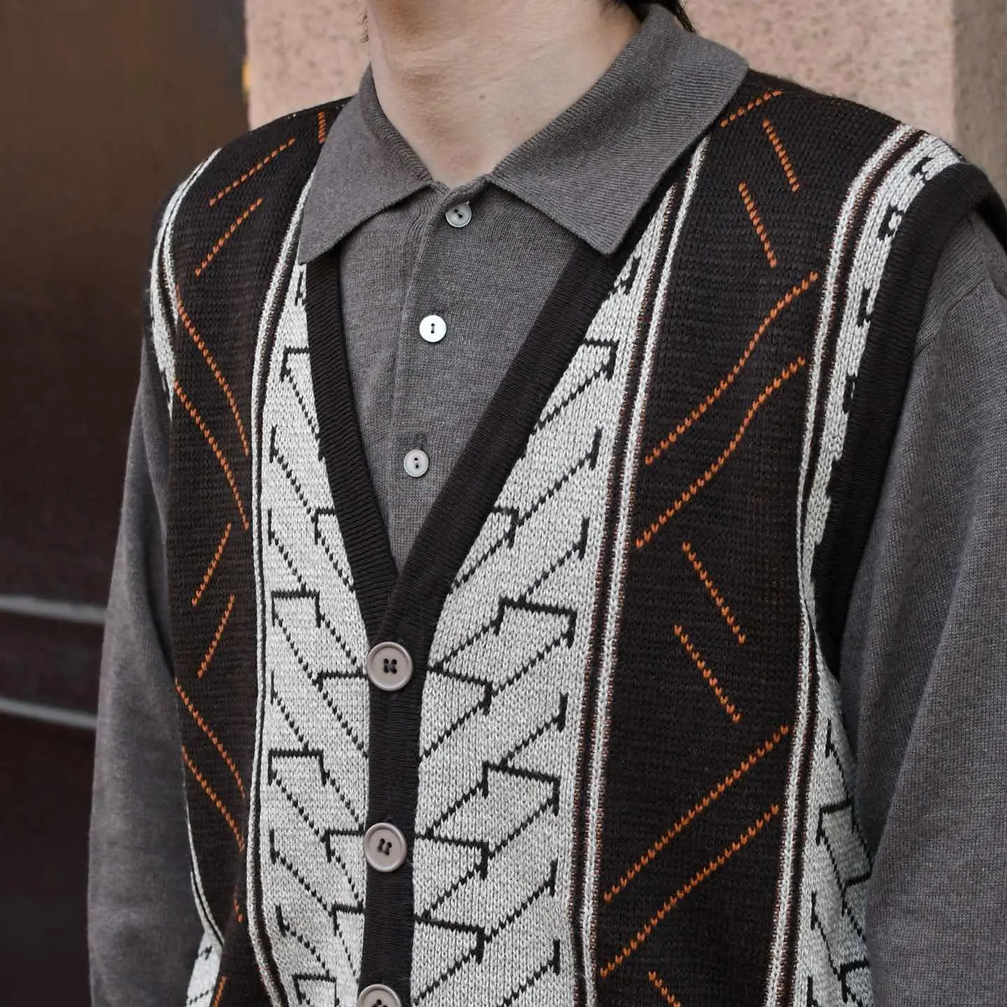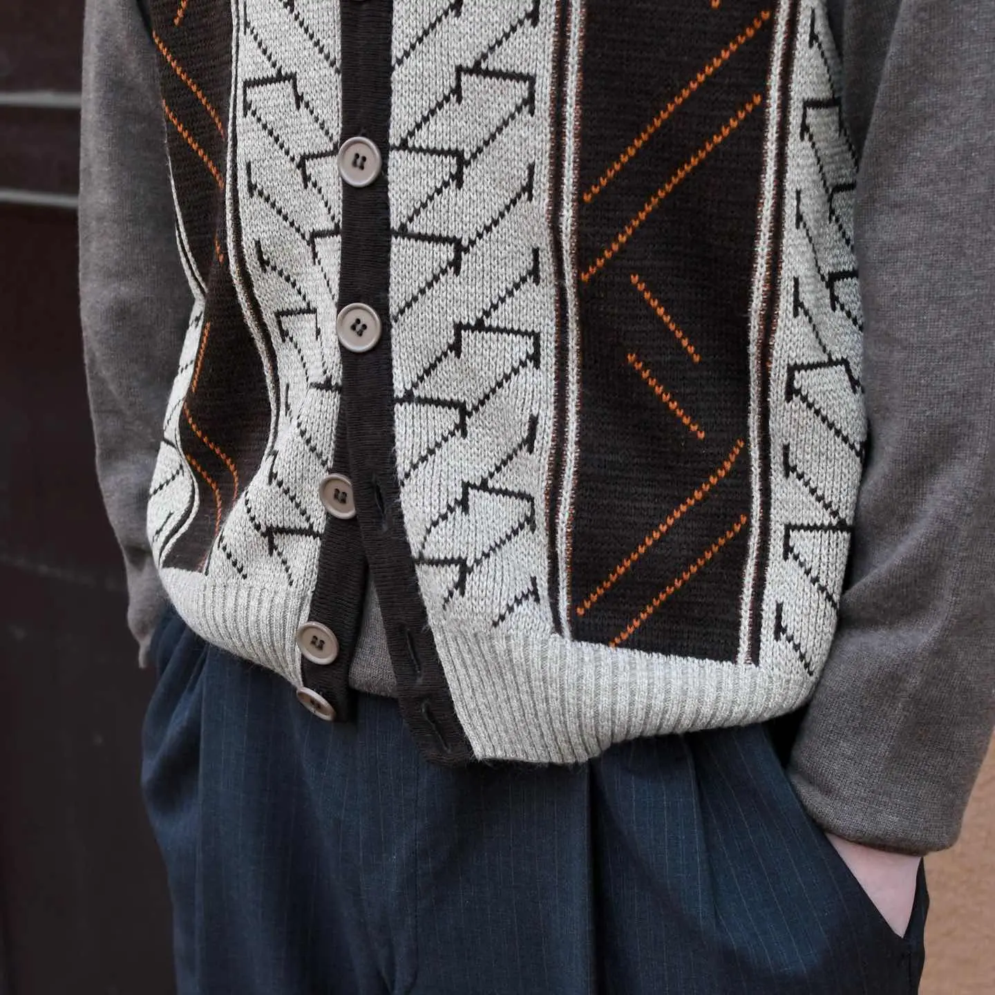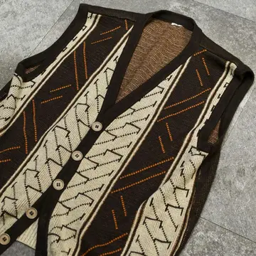 古着 デザイン ニットベスト ベスト セーター アクリルニット ブラウン