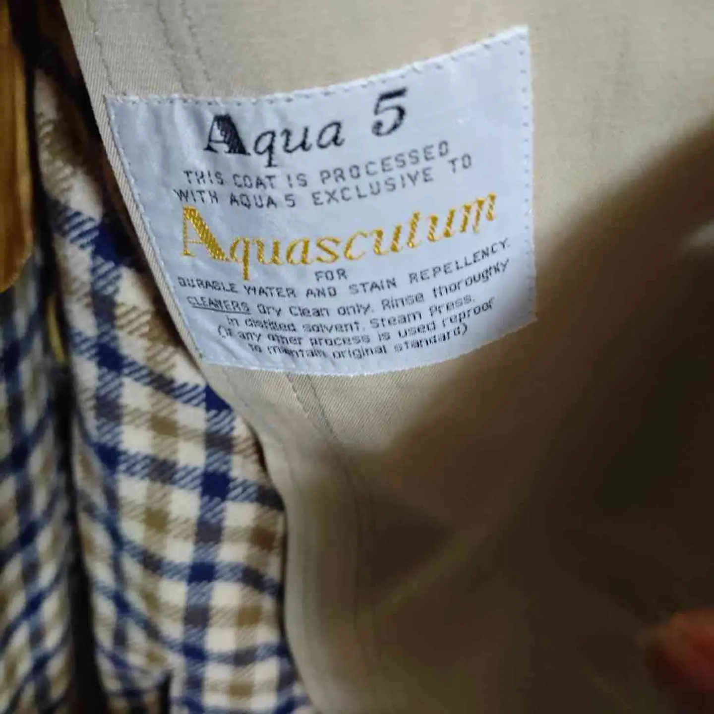 Aquascutum(アクアスキュータム)の英国製ステンカラーコート。 “Aqua5”加工により耐水性・防汚性を意識した実用モデルで、裏地のチェック柄も雰囲気抜群。 ビジネスにも私服にも合わせやすい万能ベージュです。 ※状態は写真をご確認ください。実寸も記載します。