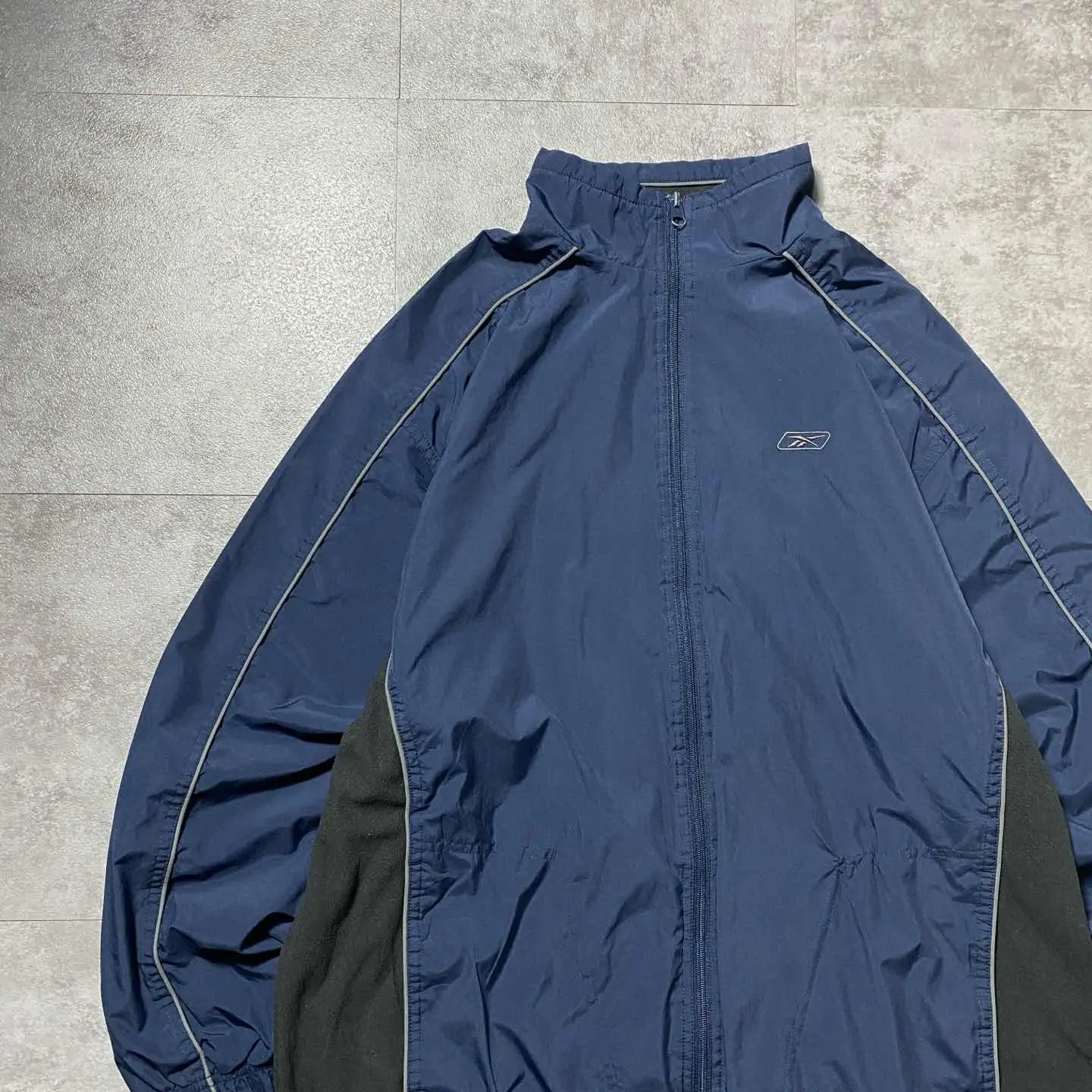 00sリーボック 刺繍ワンポイントベクターロゴ フリース切替 ナイロンジャケット
