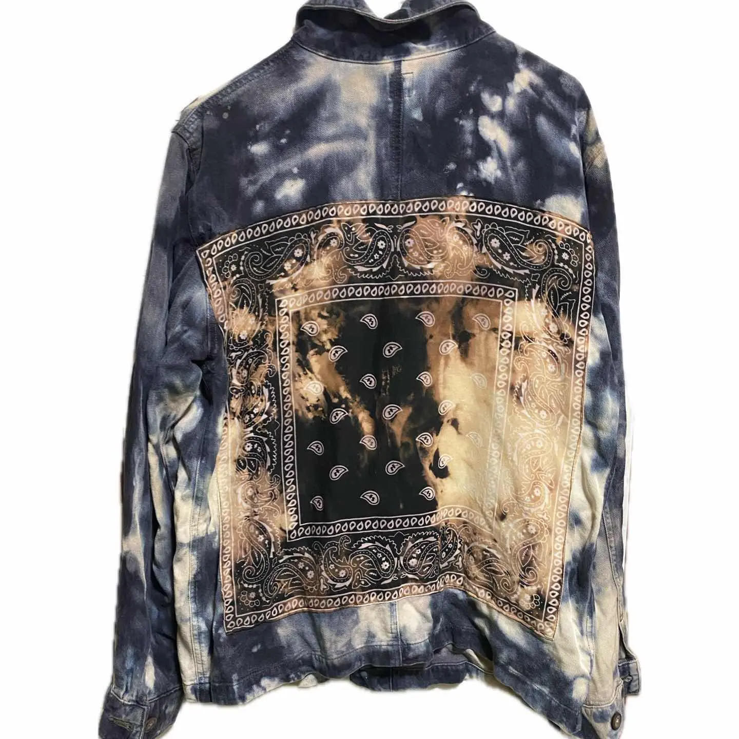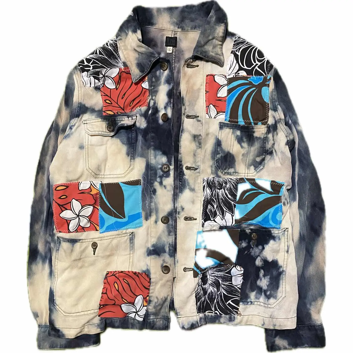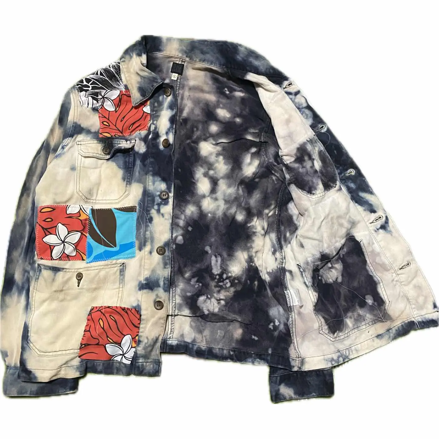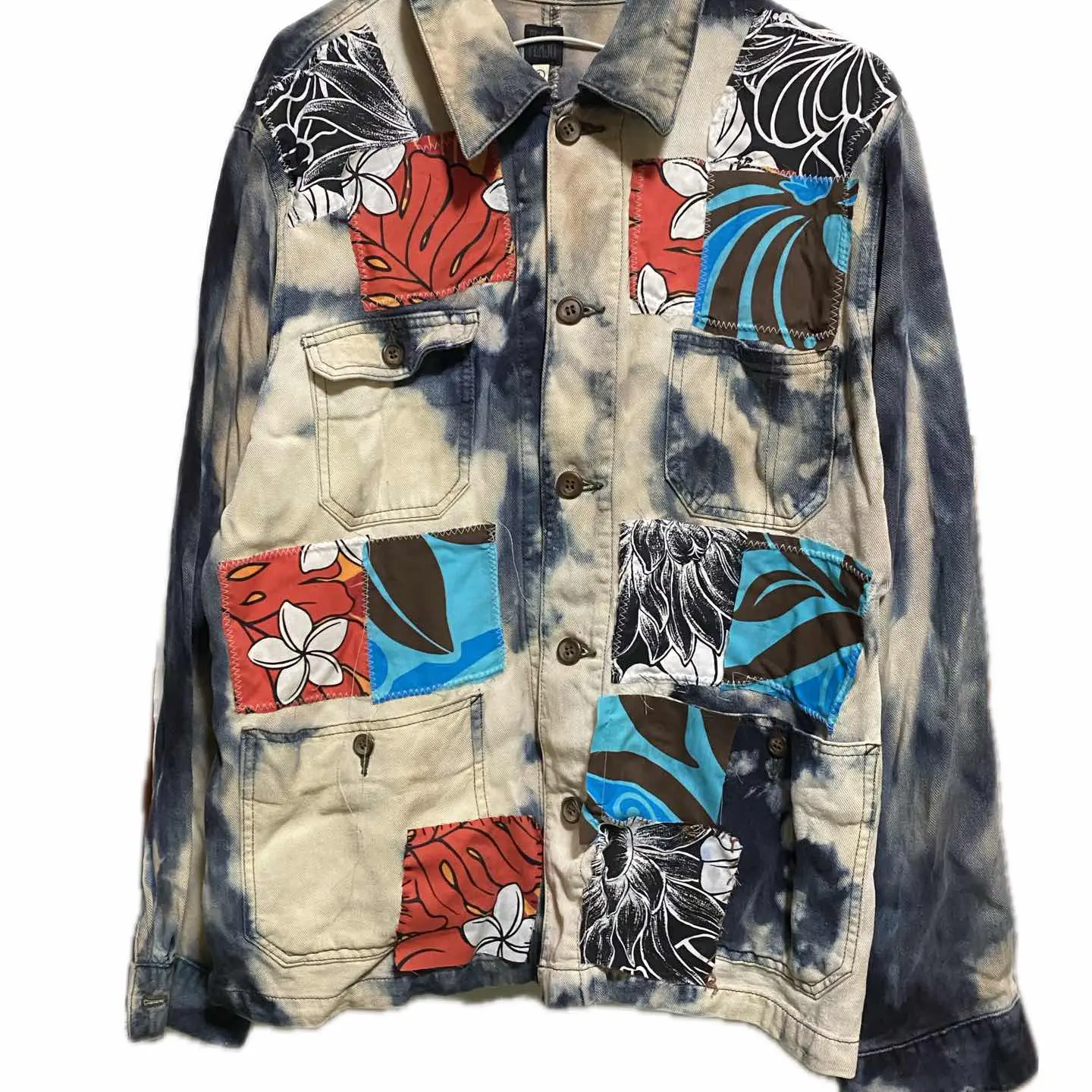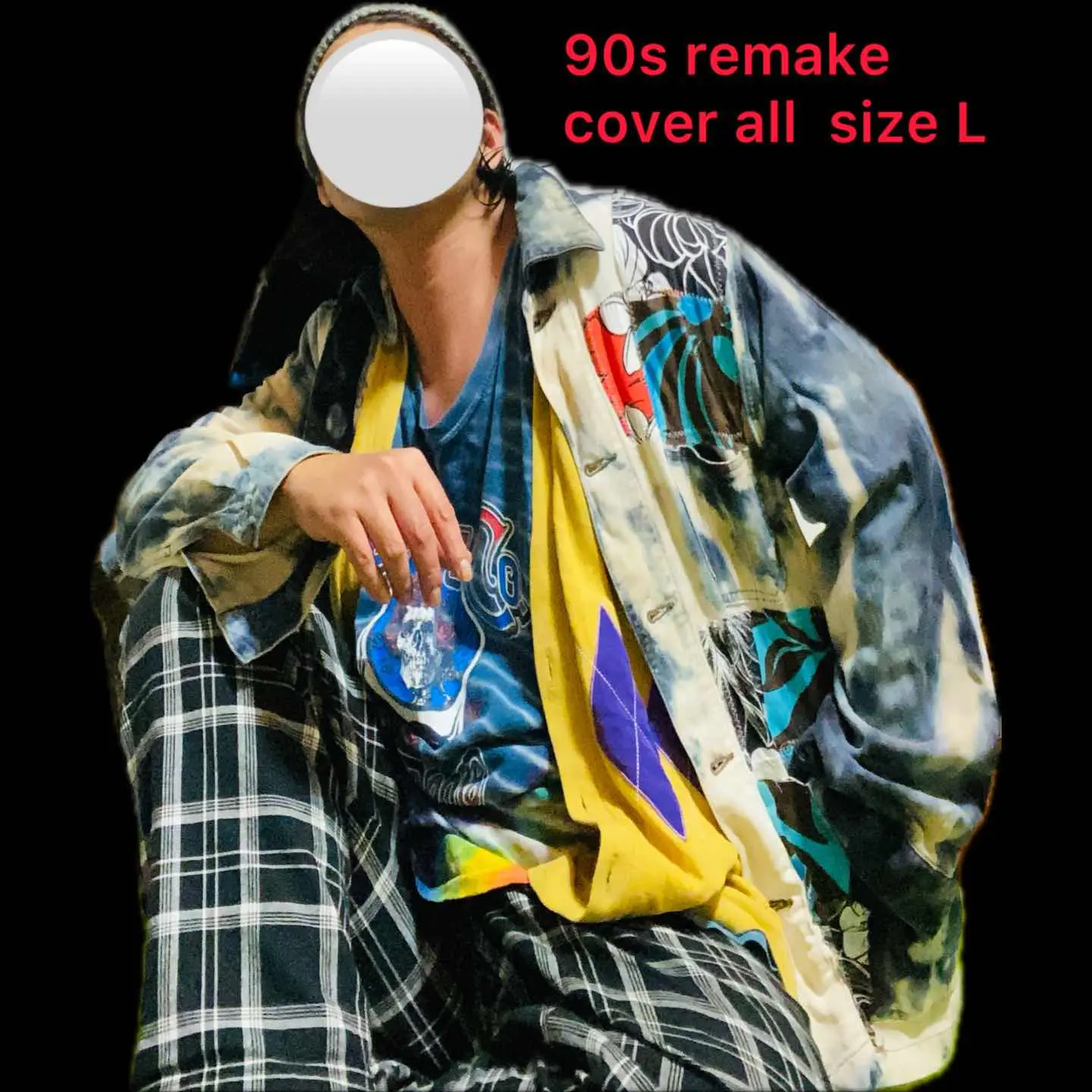 •Brand: flash5 申し訳ないですが、これ、coverall 2万近いブランドの ↓ •data:デッドストック、90sを使用、 •point:リメイクは世界に1つなので、個性派とかアメカジとか古着に目がない方には確実にヒットするボディーを使っていますので、コーディネートは参考程度にしてください。 インナーにグレートフルテッドのヴィンテージTシャツにさらにヴィンテージのカーディガンを羽織り、チェック。パンツでヨーロピアンとアメカジをミックスしたスタイルにしております。 ちなみにこちらのリメイクポイントとしてはまず色を全て抜きます。さらに染めあげます。これで3つの色が、のります、 バックにヴィンテージバンダナを縫い付け、さらに色抜きします。 フロントには様々なマテリアルをパッチアートで丁寧に丁寧にジグザグミシンで縫い付けてポケットは殺さないようにすべての機能を残したパーフェクトリメイクです。 デッドストックだったっていうのもあるので、一気にフルカスタムしましたのではっきり言いますね。ボディー代すらとってない優しさの塊のリメイクです。迷わずどうぞ!! ▷color◁ 写真通り ※ブラウザで異なる場合ありますがかなり実物には、近づけてます、 ▷size◁ 平置き片面採寸【㎝表記】 表記size L表記 XL、大好きな私がインナー2XL 仕込んでます、前締めしなきゃ、XLのかたも対応です 着丈/76 身幅/55 肩幅/52 袖丈 /54 DSは袖はハンガー採寸 ※多少の誤差は理解下さい 170/Mジャスト体型の私が着て、✔️参考に ジャスト オーバーサイズ✔︎ ビックサイズ 【素材】 コットン 斜織タイプ 高級コットン 【状態】 ブリーチ加工とかヴィンテージ加工を使用感と思う方は、、、、ウケます笑 新品をフルカスタムしてます。美品です、 検品、洗濯、検品で、3回チェックして発送しますので、ご安心して、お買い求め下さい!!