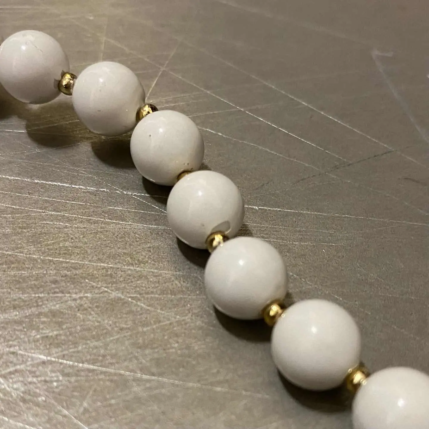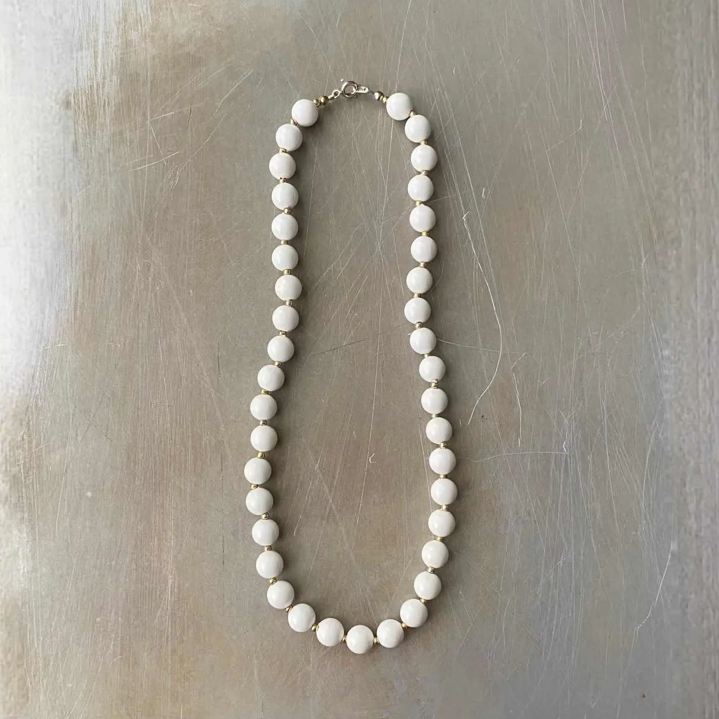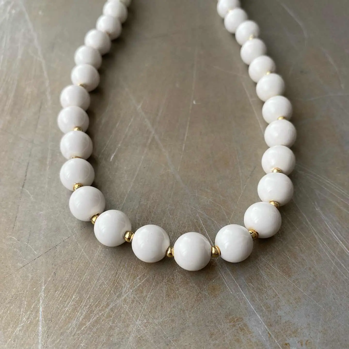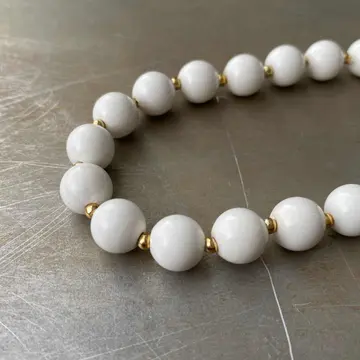 Vintage 80s USA retro white enamel beads necklace