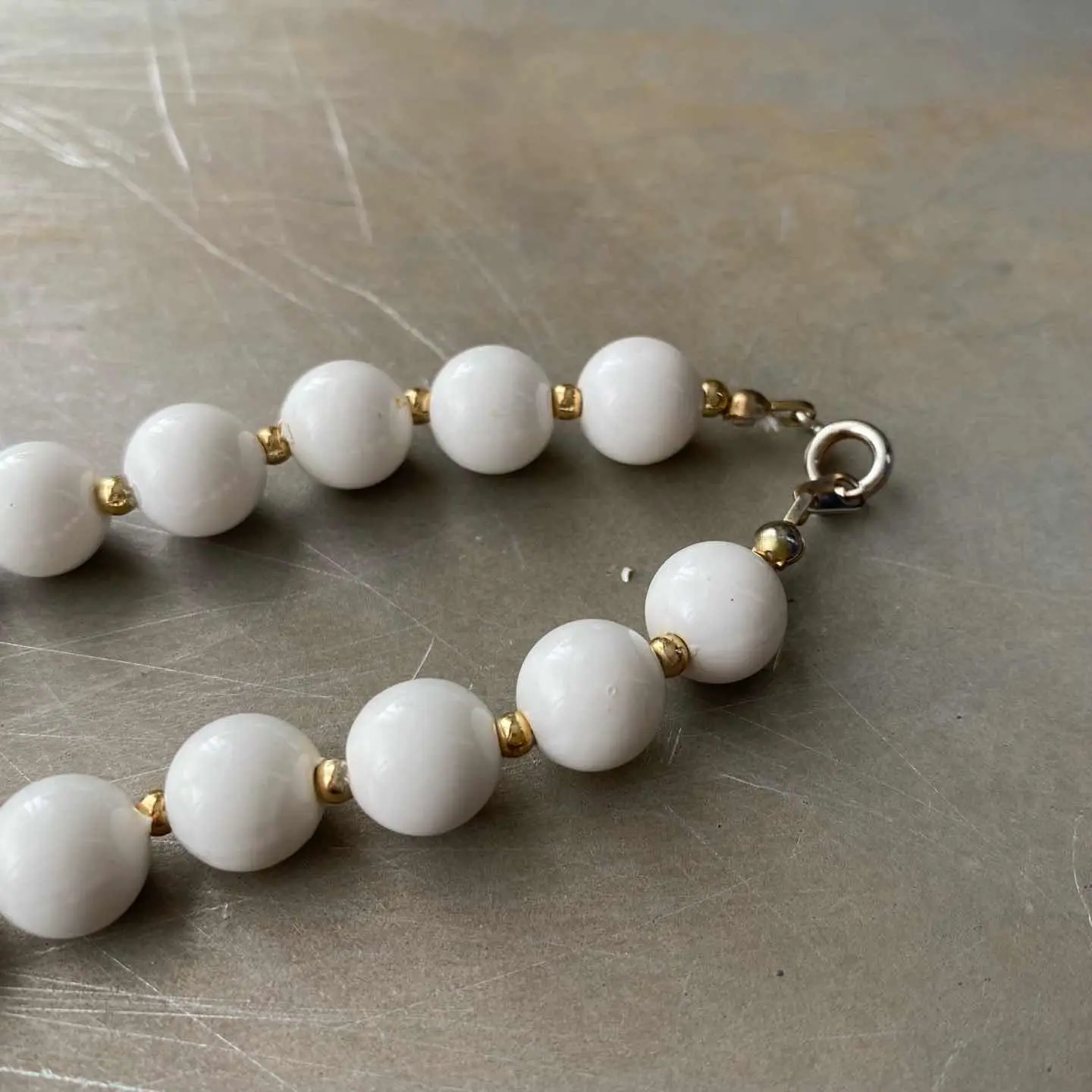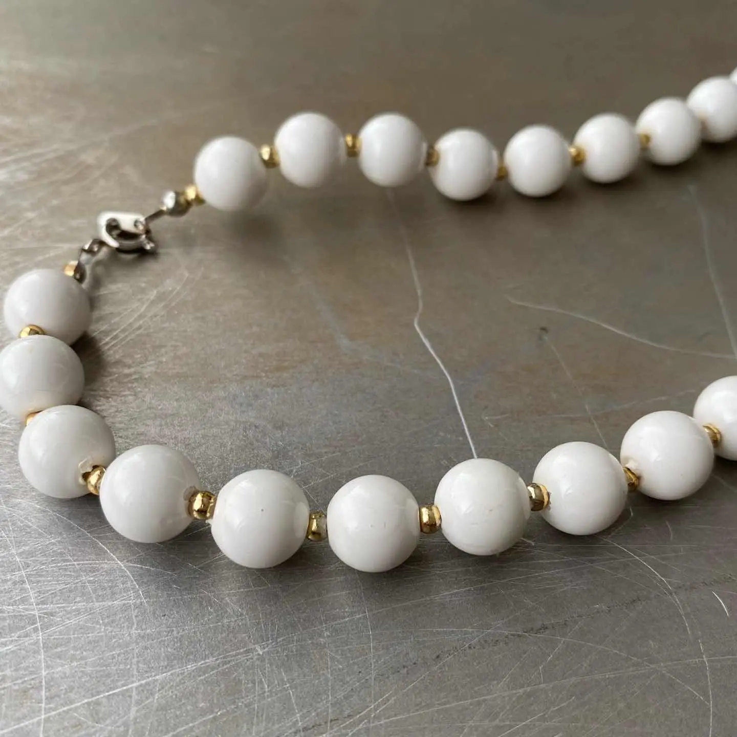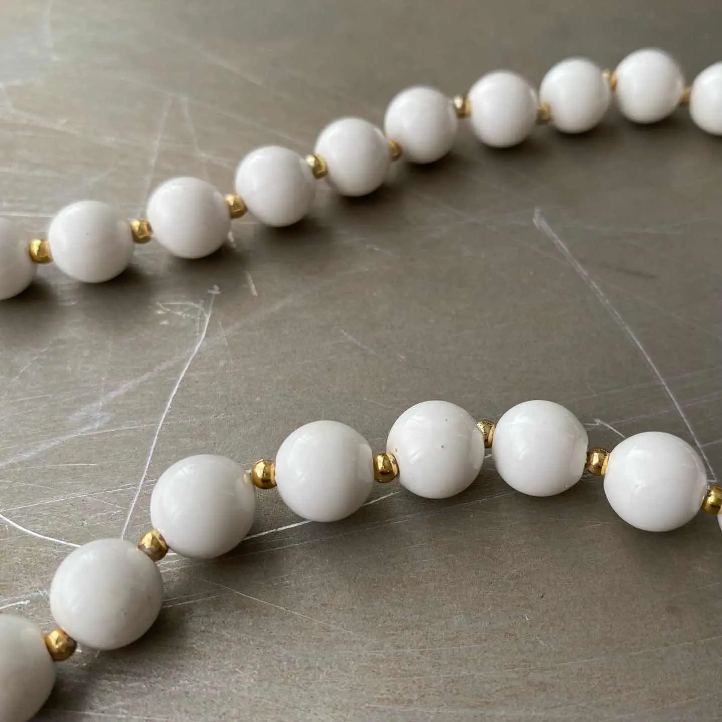 Vintage 80s USA retro white enamel beads necklace