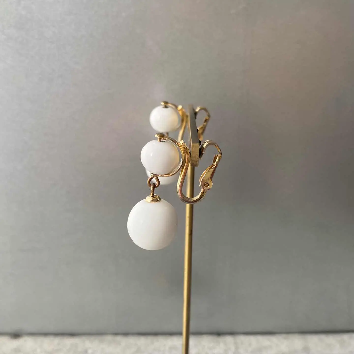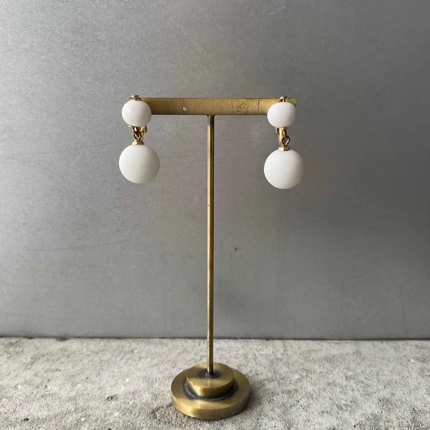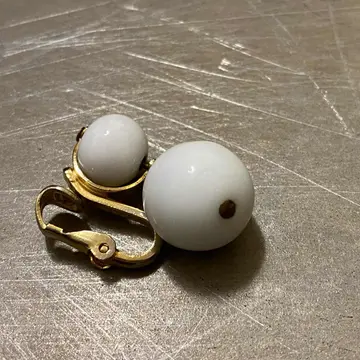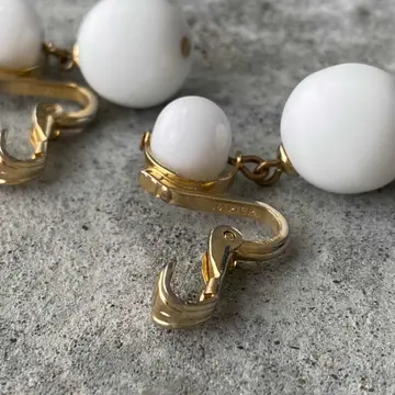 1878年にマサチューセッツ州で創立されたジュエリーブランド「NAPIER」のUSAヴィンテージイヤリング。レトロなガラスビーズが揺れ動く魅力的なデザインです。上品なホワイトカラーがお顔まわりを明るく彩ってくれます。 □Materials メタル(ゴールドメッキ)、ガラスビーズ □Size 約H3.2×W1.4㎝ 13g □Brand NAPIER (刻印入り) □Condition【C】 メタル部分に変色やガラスビーズには多少の色ムラや凹み傷がみられます。中古品であることをご理解のうえお買い求めください。ご購入前に必ずショッピングガイドのご確認をお願いいたします。 【S】未使用 【A】未使用に近い 【B】やや使用感あり 【C】使用感あり Item No.3584