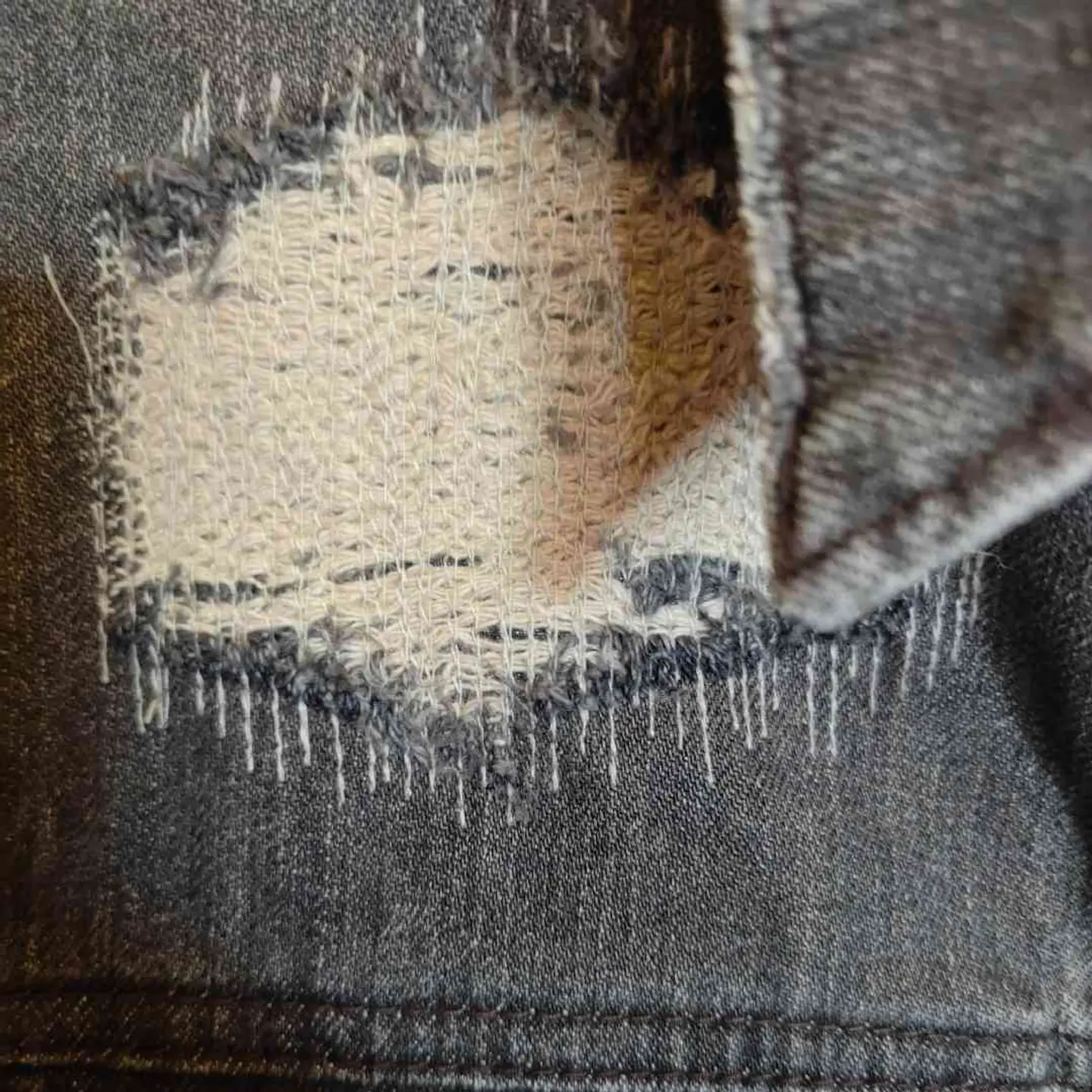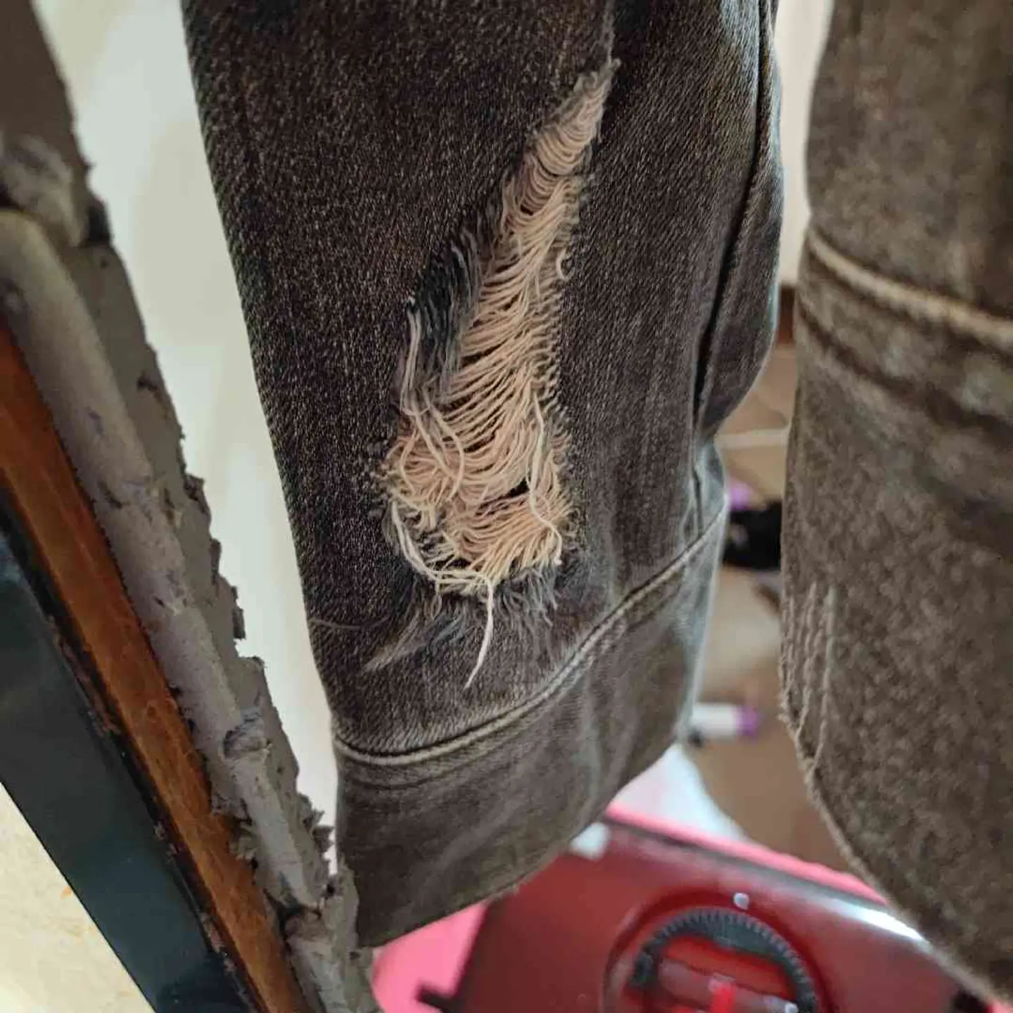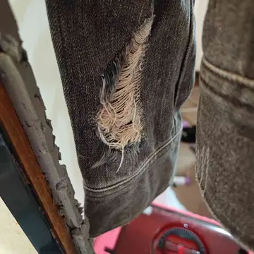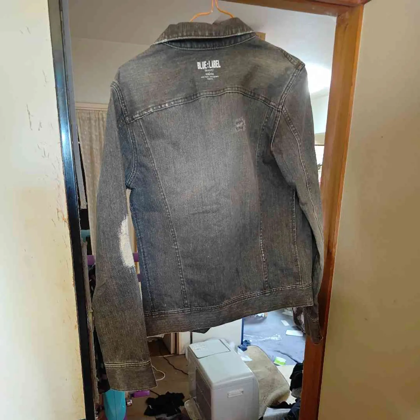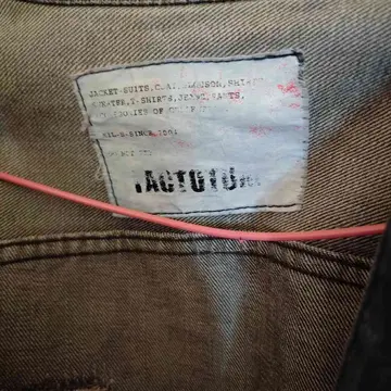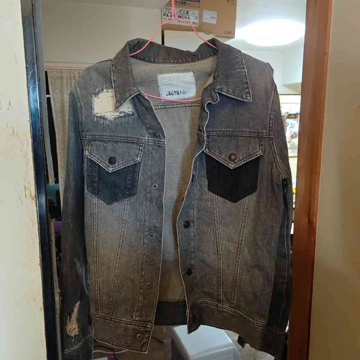 「FACTOTUMのデニムジャケット。グレー〜ブラックのフェード感が抜群で、左右のポケット切替デザインもアクセントになります。ペンキ/加工のような表情があり、1枚で雰囲気が出るタイプ。 ※袖口にダメージあり(写真参照)。着用に支障はありませんが、古着に理解ある方におすすめです。」