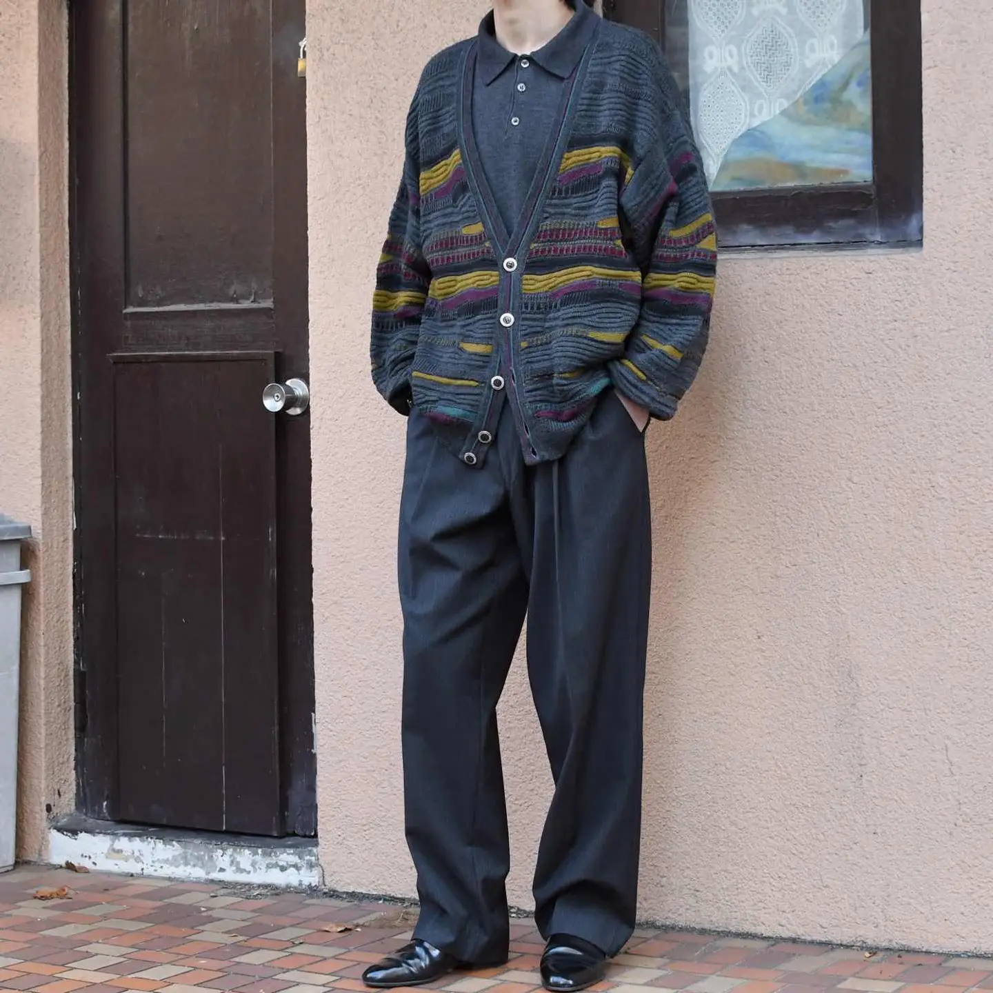 古着 チャコールグレー 2タック ウールスラックス タックパンツ ウールパンツ