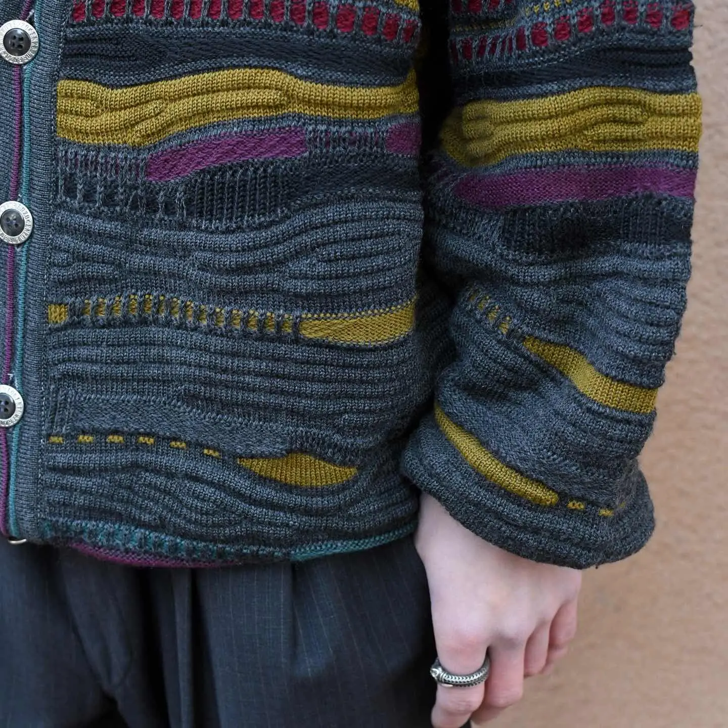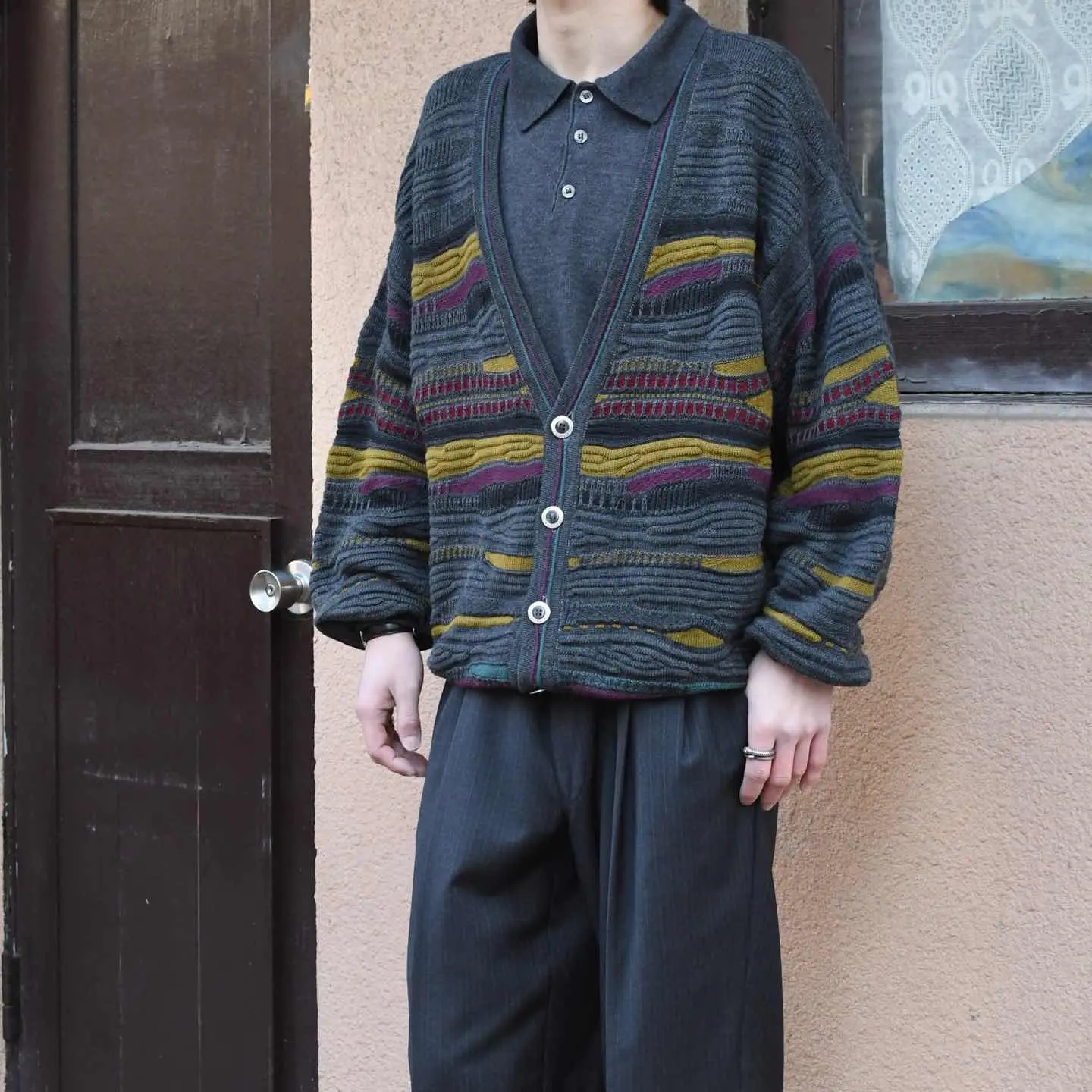 古着 3D カーディガン デザインカーディガン ニット セーター グレー