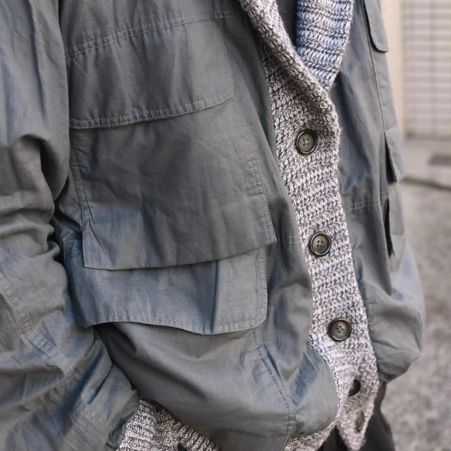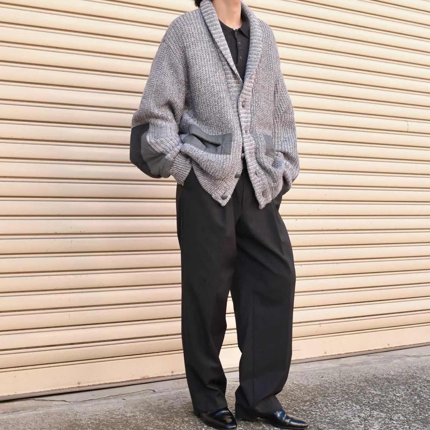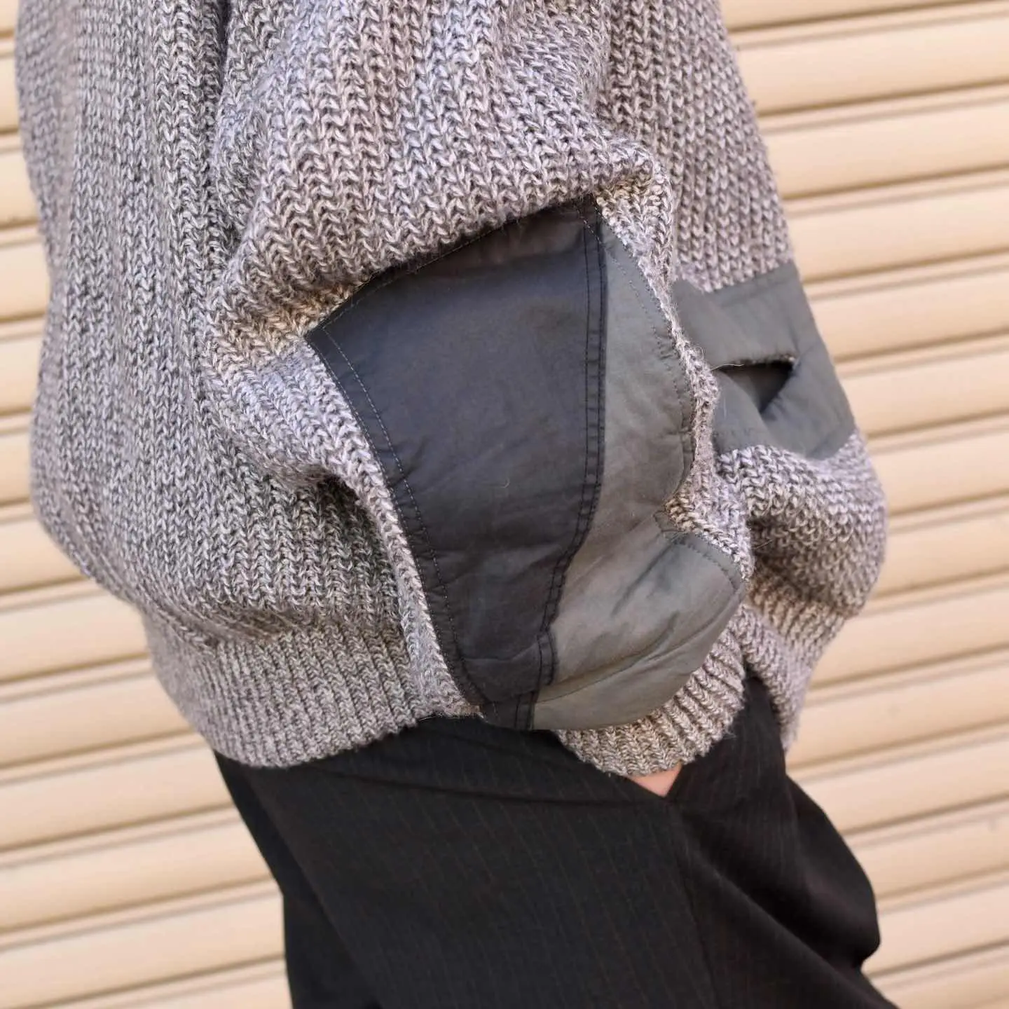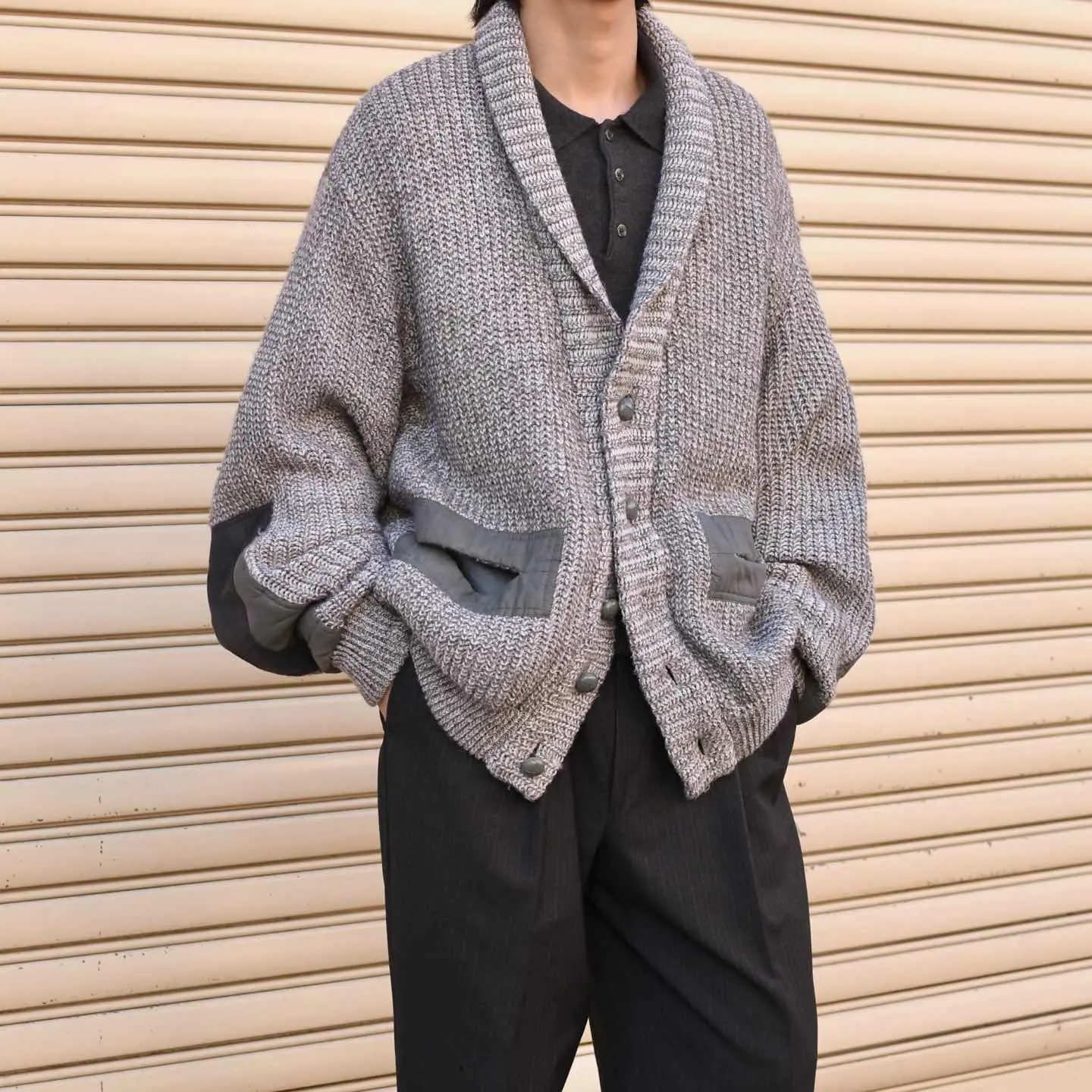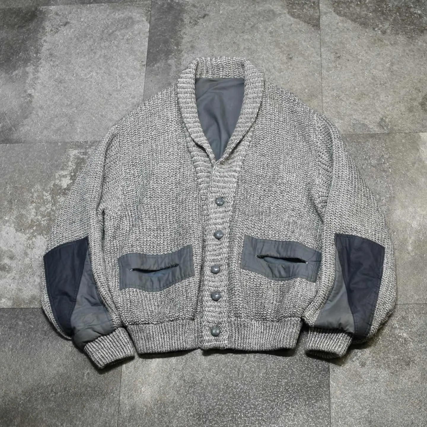 古着 リバーシブル アルパカ混 ニット ブルゾン グレー カーディガン