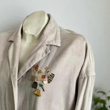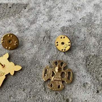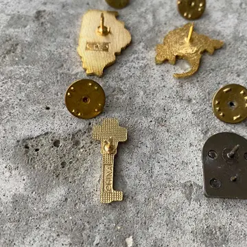 【こちらの商品は1個単位の販売です。ご購入希望のタイプを「A〜F」よりお知らせください。】 70s〜90s頃のUSAヴィンテージピンブローチです。身につけやすいサイズ感とレトロなデザインが魅力的。沢山つけるとお洒落な雰囲気になりオススメです。 □Materials メタル(ゴールドメッキ) □Size (A)約H3.3×W1.9㎝/6g (B)約H2.4×W2.7㎝/4g (C)約H2×W2㎝/3g (D)約H1×W2.5㎝/2g (E)約H2×W1.6㎝/4g (F)約H2.2×W2.5㎝/3g □Condition【C】 画像の通り経年による変色やメッキ剥がれ、スレがみられます。中古品であることをご理解のうえお買い求めください。ご購入前にショッピングガイドのご確認をお願いいたします。 【S】未使用 【A】未使用に近い 【B】やや使用感あり 【C】使用感あり Item No.3588