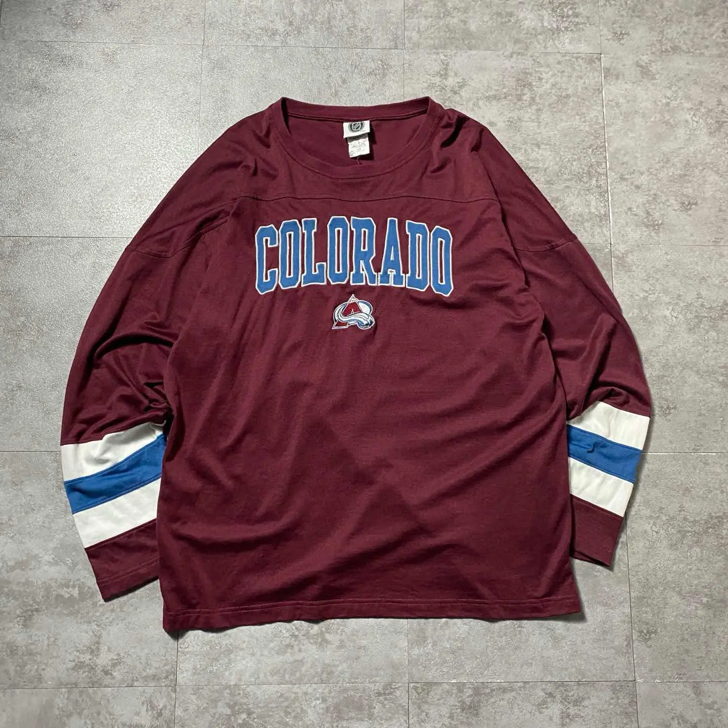 NHL コロラド・アヴァランチ 刺繍チームロゴ ワインレッド Tシャツ ロンT