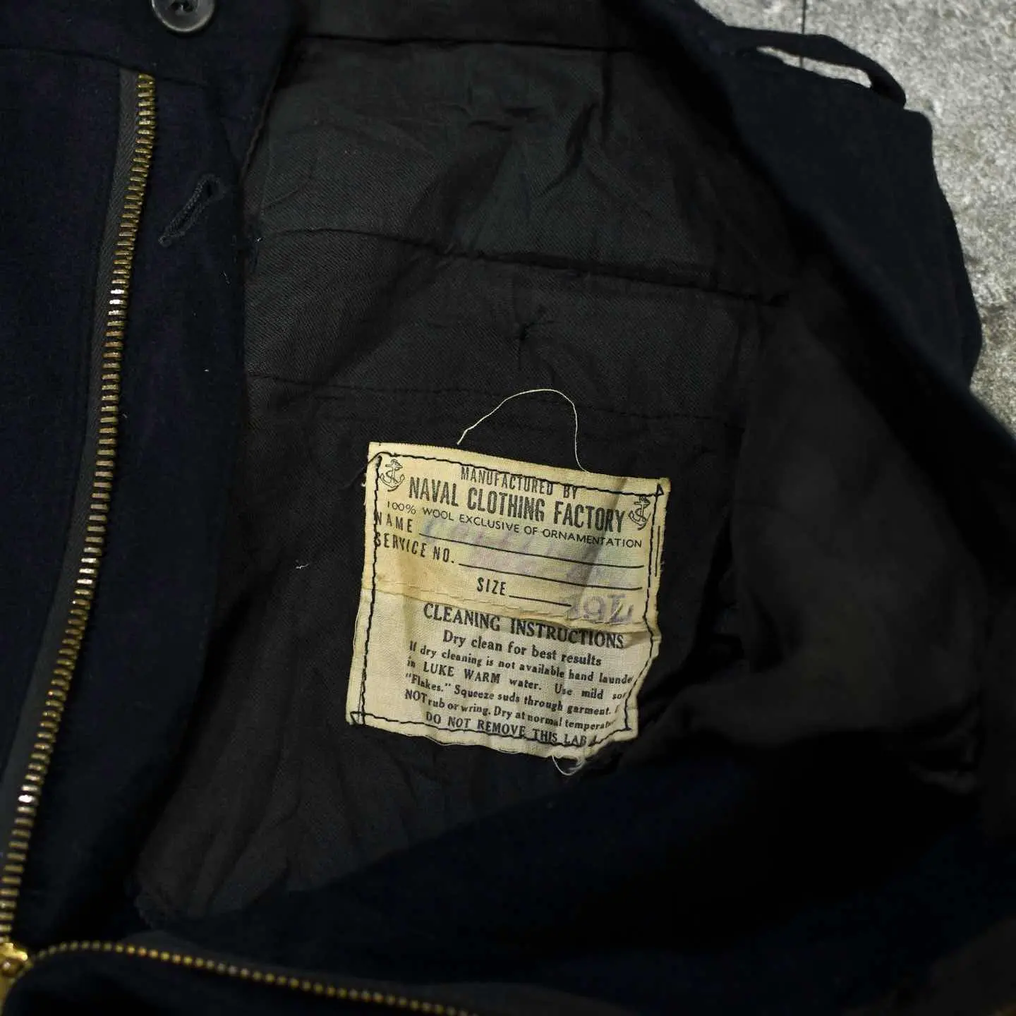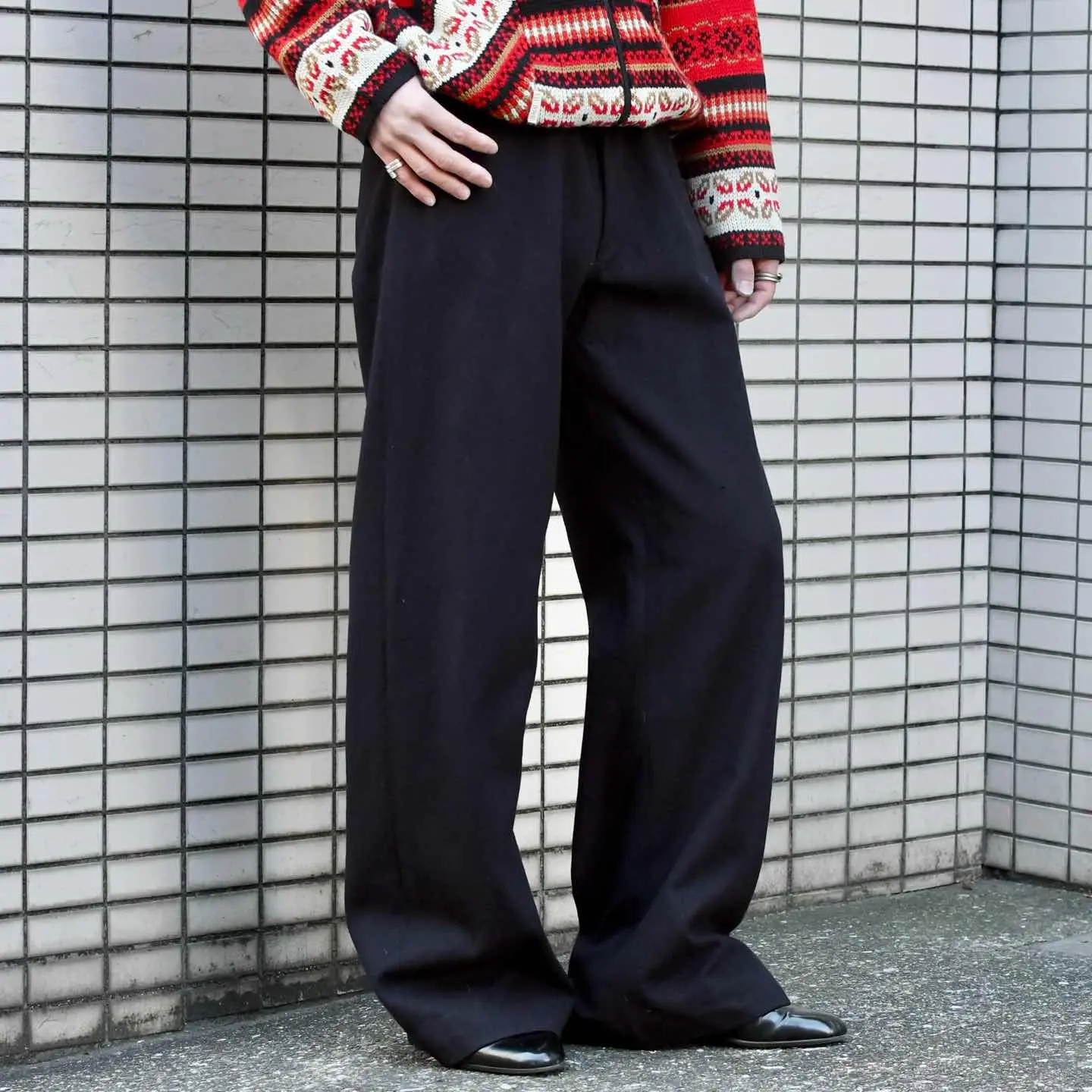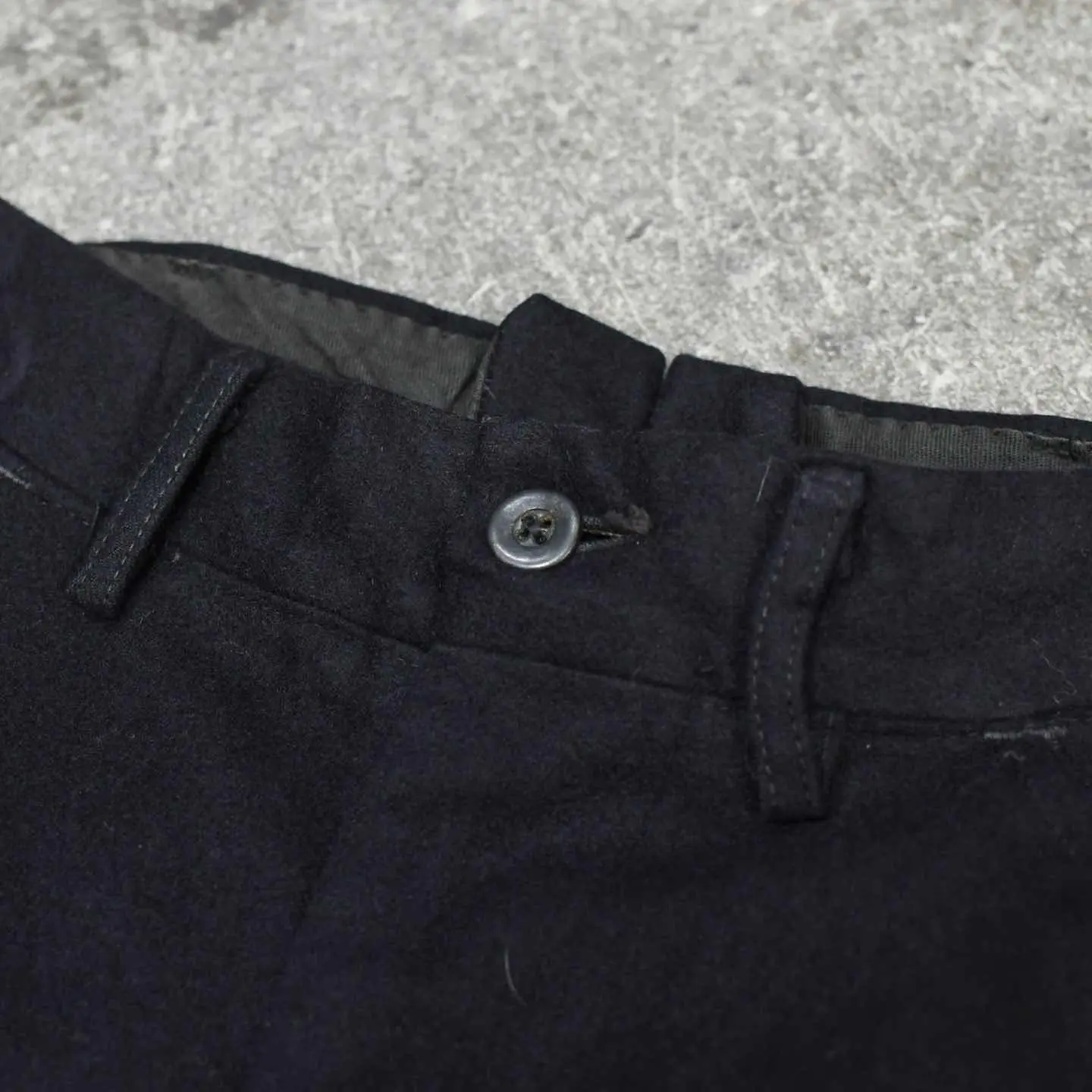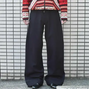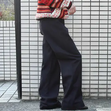 SIZE:- ウエスト74cm 総丈116cm 股下83cm わたり35cm 裾幅31cm fabric/wool 着用画像 173cm/56kg アメリカ軍のセーラーパンツといえば、 フロントに付く”あの前立て”ですが、 こちらは個人的にもずっと探していた ジップフライタイプ。 前立てが付くタイプと比べると、ポケットの浅さや 利便性から、こちらのタイプの方が気軽に穿けるのは言わずもがな。 そしてセーラーパンツ特有の、ズドンとワイドな シルエット。 ミリタリーアイテムだけでなく、古着で見掛ける パンツの中でも群を抜くシルエットの良さ... すこぶる推しです。 ※左太腿付近に2箇所ピンホールあり。 ※裾上げ等のレングス直しにつきましては、 購入前に、必ずご連絡お願い致します。 ※撮影状況により、実物と多少色が異なる 場合がございます。 ※古着を取り扱っているため、気づかない汚れや ほつれがある場合がございます。 ※サイズは着用感で選んでおり、 表記サイズではございません。 表記サイズは説明欄の最初に記載しております。 オーバーサイズ old vintage ヴィンテージ used 80's 90's POLO RALPH LAUREN Eddie Bauer OLD GAP LANDS' END ランズエンド LLBean エルエルビーン オールドギャップ エディーバウアー ラルフローレン ブルックスブラザーズ Brooks Brothers アメリカ軍 ウールパンツ ワイドパンツ ミリタリー 50's usarmy フランス軍 イタリア軍 イギリス軍 スウェーデン軍 チェコ軍 などがお好きな方 #vintage #old #used #90s #80s #古着 #ヴィンテージ #ラルフローレン #POLORALPHLAUREN #セーラーパンツ #40s #usnavy