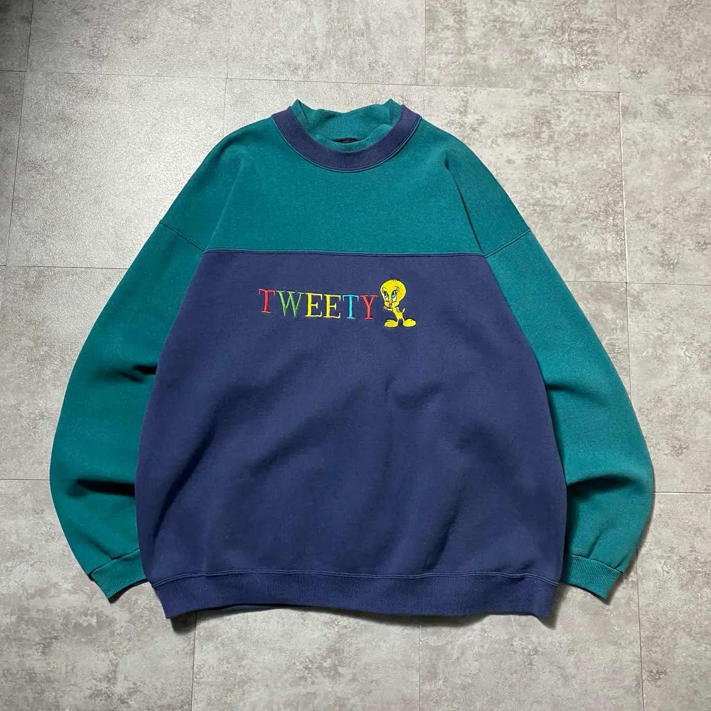 90s Hanes ルーニーテューンズ トゥイーティー 刺繍ロゴ スウェット