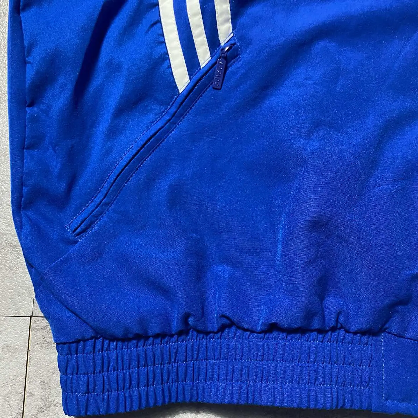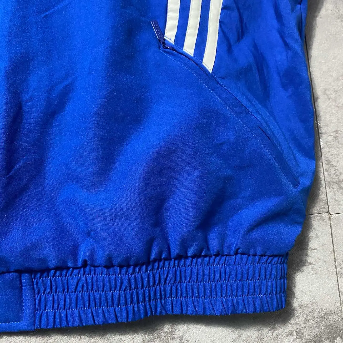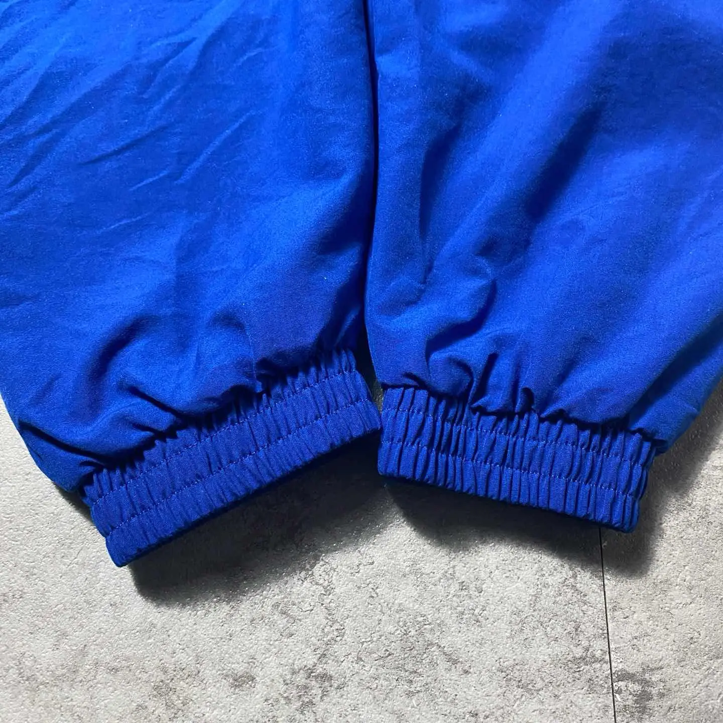 90s アディダス 刺繍ロゴ ジップ付ポケット ブルー ナイロン トラックパンツ