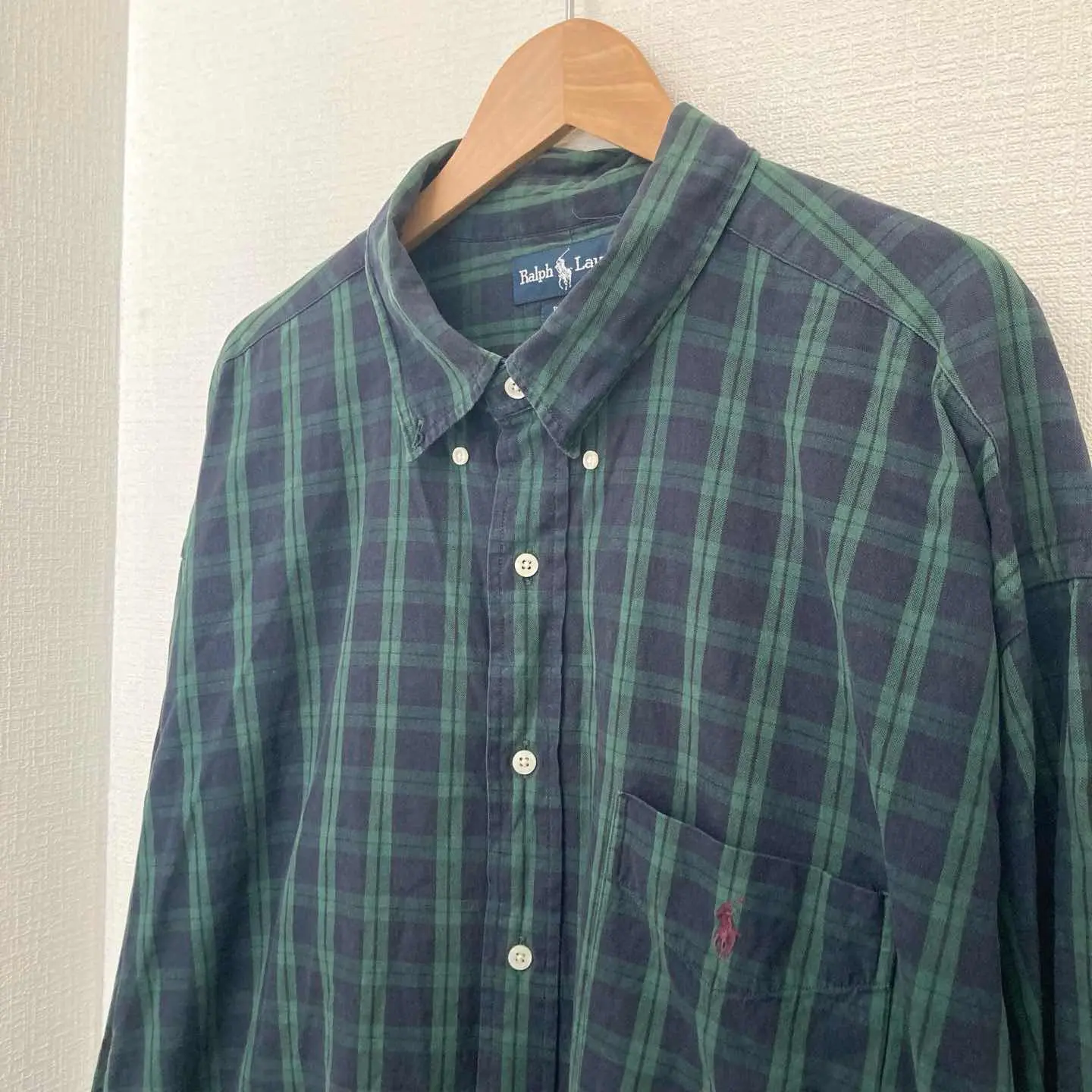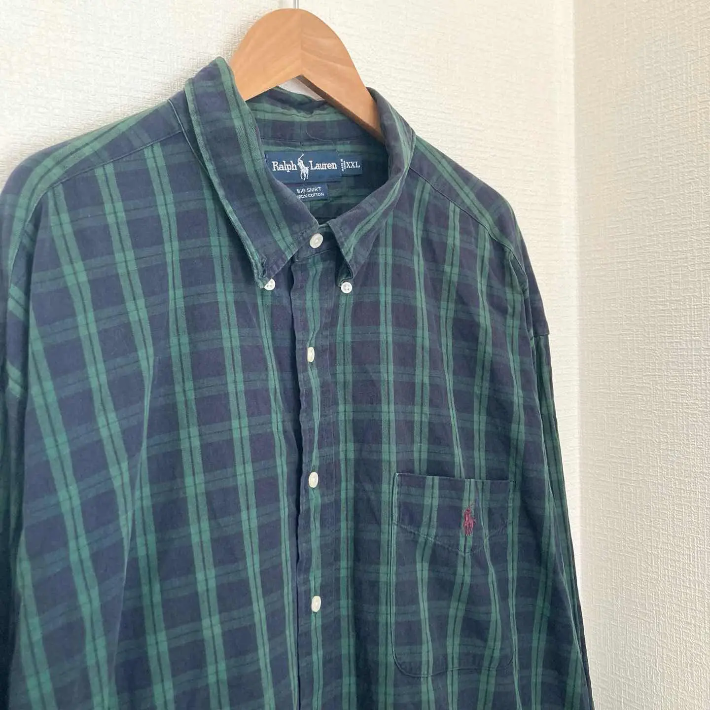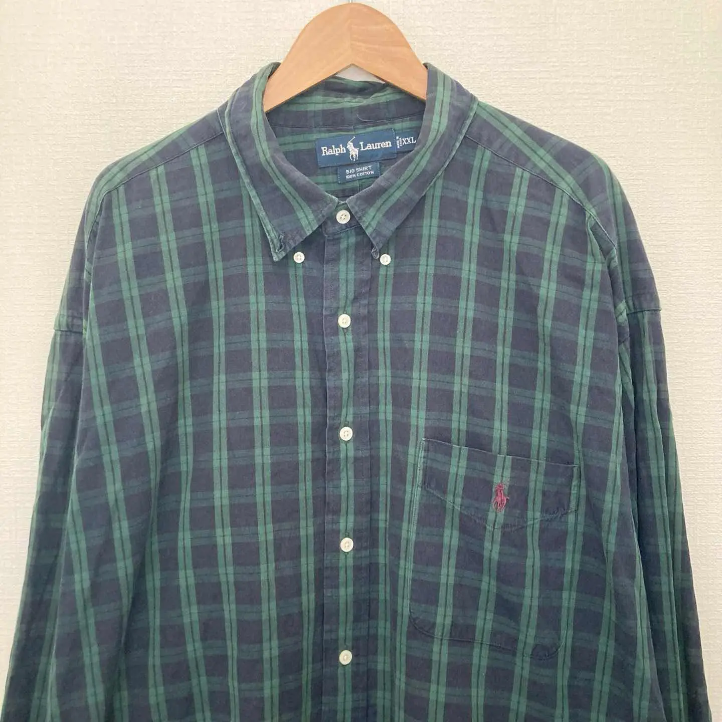 ラルフローレン big shirt 90s チェック 長袖 グリーン 綿 2XL